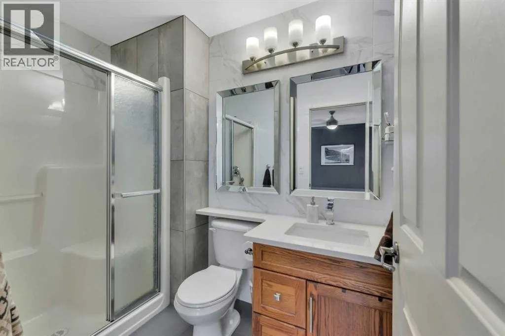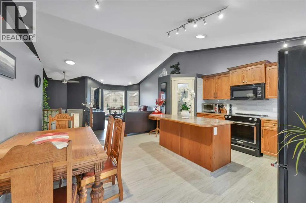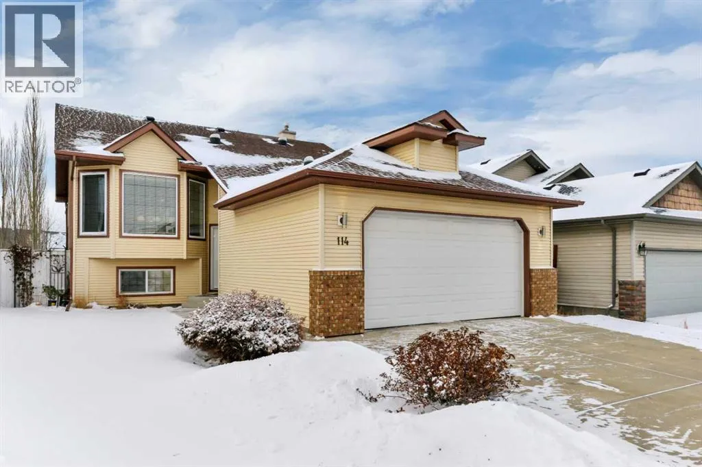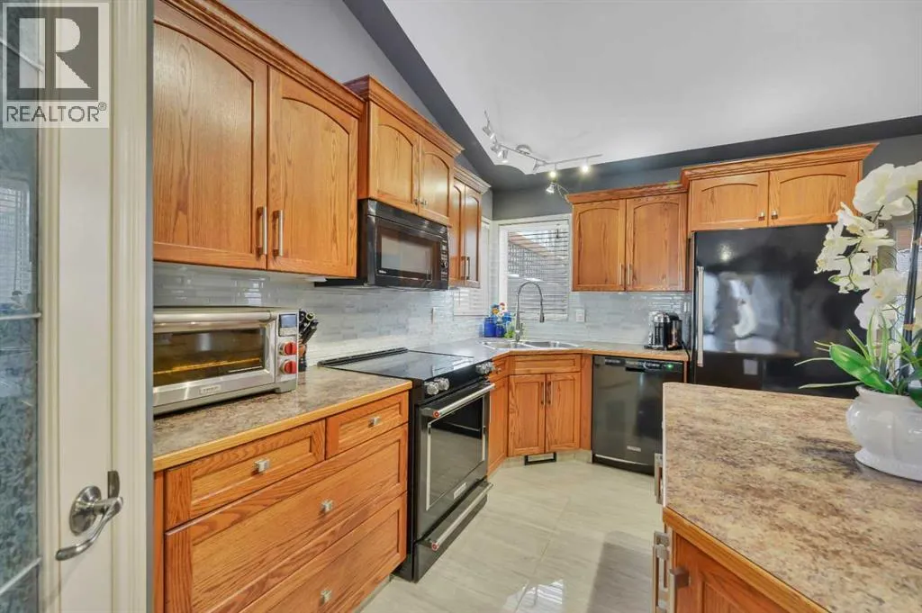 This walkout bi-level offers with attached 24 x 22 garage, features a blend of thoughtful upgrades, natural light, and a beautifully maintained west-facing yard in one of Sylvan Lakeâs established neighbourhoods. The exterior features vinyl siding with brick accents and strong curb appeal, complemented by 30-year shingles and mature landscaping. Six solar tubes throughout the home enhance the natural light on both levels.The main floor features vaulted ceilings and an open floor plan that creates an airy, welcoming atmosphere. The kitchen includes a functional pantry, premium KitchenAid appliances, and a matching fridge with ice maker. Premium tile flooring highlights the entry, transitioning into waterproof laminate throughout the main living areas, with newer long-pile carpet in select spaces. The main 4-piece bathroom is finished with tile surrounds. The primary bedroom features a 3-piece ensuite with full-height, slate-style shower tile and an expanded closet system that offers far more storage than a standard layout.The walkout lower level is designed for comfort, , cork-backed vinyl plank flooring, carpet with extra underlay, a thermal chrome pad to keep the floors warm . This level includes two additional bedrooms and a 3-piece bathroom with a stand-up shower. Mechanical features include a water softener with dechlorination system and a hot water tank approximately six years old. Outdoor spaces are private and fully landscaped, with a west-facing backyard that provides evening sun. A 12 Ã 18 concrete upper deckâpartially enclosedâand a lower patio offer multiple areas to enjoy the setting. Additional exterior features include a 10 Ã 10 shed, a perennial garden, an apple tree, and an RV gate with alley access.Situated within minutes of Sylvan Lakeâs schools, recreation options, and everyday amenities, this home benefits from close proximity to playgrounds, walking paths, and the lakefront district. The community is known for its vibrant four-season lif estyle, established neighbourhoods, and quick access to Highways 11 and 20 for commuting. (id:27476)