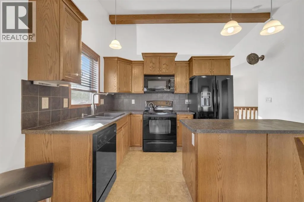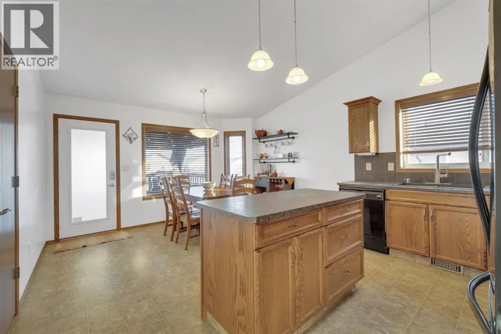Welcome to 10 Wilkinson Circle, a beautiful bi-level home perfectly situated in a family-friendly neighborhood just a short walk from the lake, local restaurants, shops, and nearby playgrounds. This spacious 4-bedroom, 3-bathroom property offers a thoughtful layout and a warm, inviting atmosphere thatâs ideal for families or anyone looking to enjoy lake-town living.The main floor features vaulted ceilings accented with a wood beam, creating an open and airy feel, complemented by updated vinyl plank flooring. The bright living room is filled with natural light thanks to its large windows, making it a welcoming space to relax or entertain. The kitchen is both stylish and functional with dark cabinetry, a granite sink, a central island with large pot drawers, and a pantry, flowing seamlessly into the spacious dining area with direct access to the back deck.The large primary bedroom is conveniently located on the main floor and includes a 3-piece ensuite, along with an additional bedroom and a full bathroom. Downstairs, the fully developed basement offers a generous family room, two well-sized bedrooms, and another bathroomâperfect for guests or a home office setup.Step outside to enjoy the back deck with a pergola, providing shade and privacy, overlooking a very large fenced backyard complete with raised garden beds, a storage shed, and saskatoon, raspberry, and rhubarb plants. Parking is a breeze with a heated attached double garage and a cobblestone RV parking pad at the back. This home combines comfort, functionality, and an unbeatable location. Itâs an excellent opportunity to enjoy everything Sylvan Lake has to offer. (id:27476)