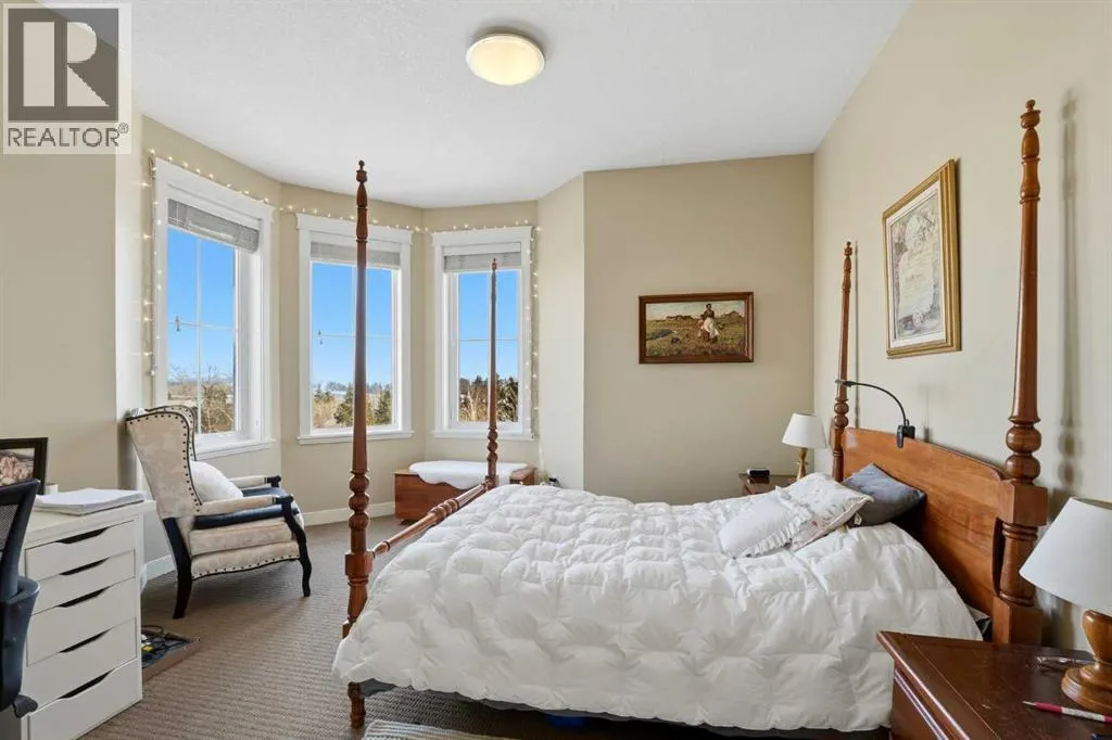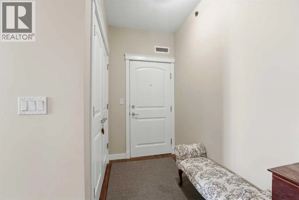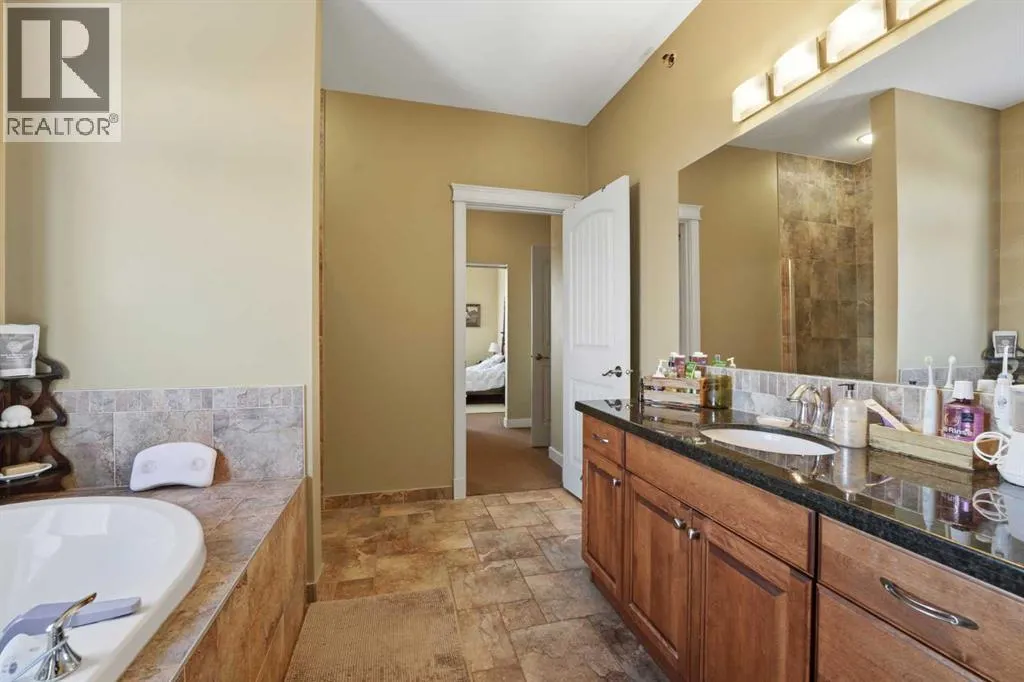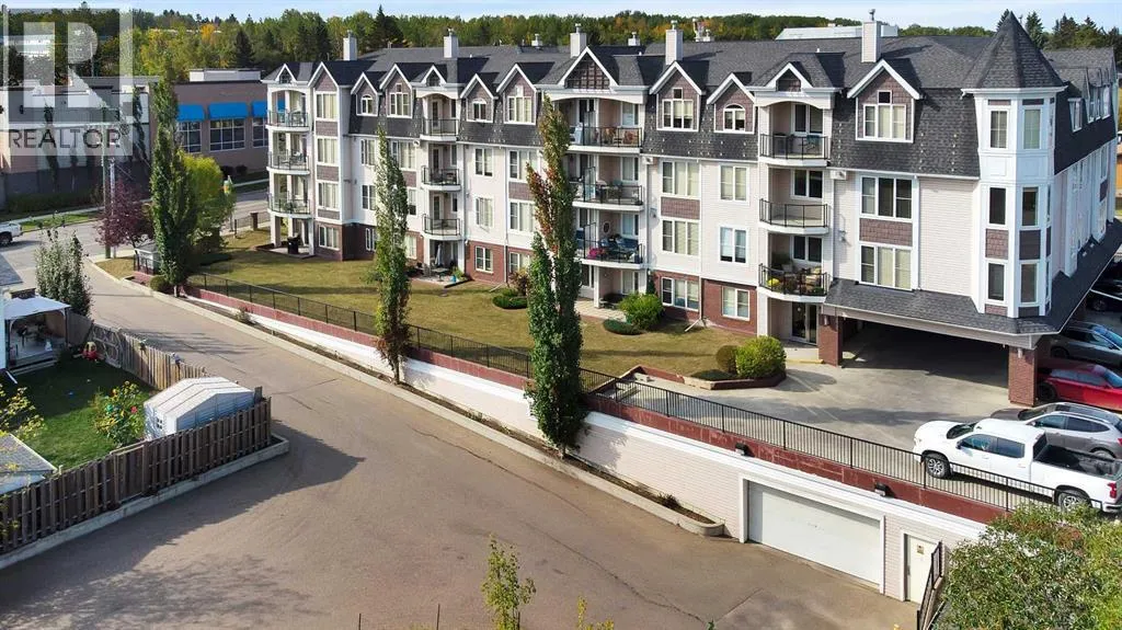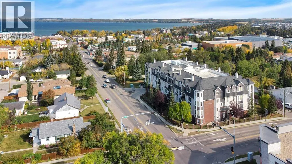 Experience the ultimate lakeside lifestyle in this sprawling 1,155 sq. ft. corner suite at The Watermark, one of the largest and most sought-after floor plans in the building. Perfectly positioned on the quiet northeast side of this upscale complex, this 2-bedroom, 2-bathroom residence offers a sophisticated blend of comfort and convenience in the heart of Sylvan Lake. The bright, open-concept interior is anchored by a gourmet kitchen featuring granite countertops, an eating bar, and newer stainless steel appliances, while the inviting living room boasts a cozy gas fireplace for chilly evenings. The primary retreat includes a spa-like ensuite with a large soaker tub, providing a private sanctuary after a day on the water. Functional perks abound, including in-suite laundry with extra space for a pantry or freezer, one titled heated parking stall, and condo fees that include heat. Located just blocks from the Lakeshore Drive Promenade, you are steps away from summer boating, swimming, and lakeside dining, as well as winter skating and ice fishing. Whether you are seeking a turnkey year-round residence or a high-end vacation getaway, this beautifully maintained condo delivers the very best of downtown living near the lake. (id:27476)