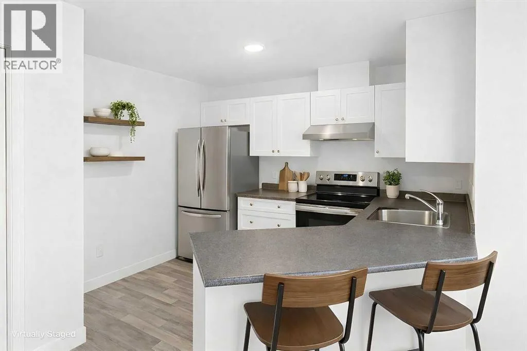 Welcome Home to Easy Living at the Lake! 40+ adult living apartment. This beautifully kept 1 bedroom, 1 bath main floor condo offers the perfect blend of comfort, convenience, and lifestyle. Enjoy a bright, modern space thatâs completely move-in ready. Open concept living with sun filled living/dining area complete with fireplace and access to outside deck. Kitchen boasts stainless appliances and plenty of working space and cabinets. Bathroom features jetted tub and walk in shower. This building has a workshop, elevator, security door, underground parking and extra storage for all your lake-life essentials. Step outside and youâre just moments from an 18-hole golf course, great dining, shopping, and a short walk to Sylvan Lakeâs beach and vibrant downtown. Whether youâre looking to downsize, invest, or simplify, this property offers it all â peaceful living, unbeatable location, and incredible value. (id:27476)