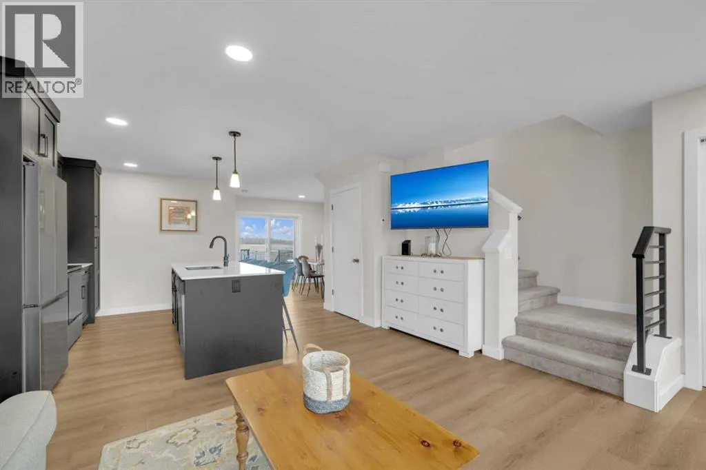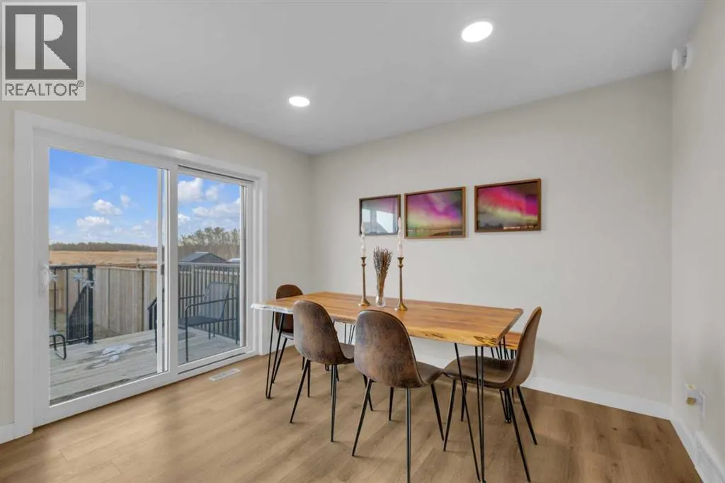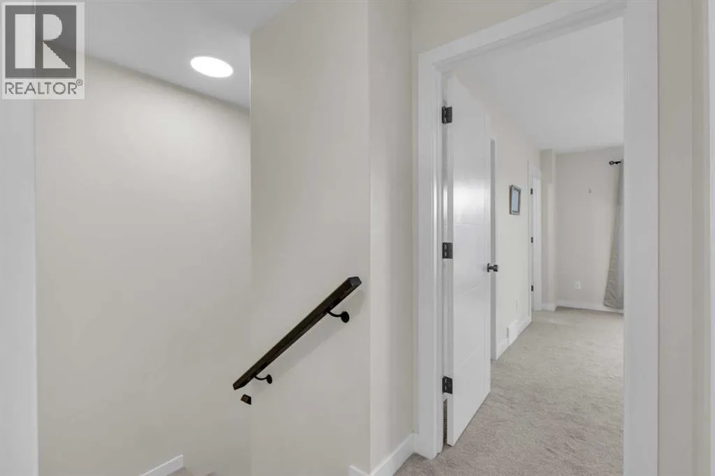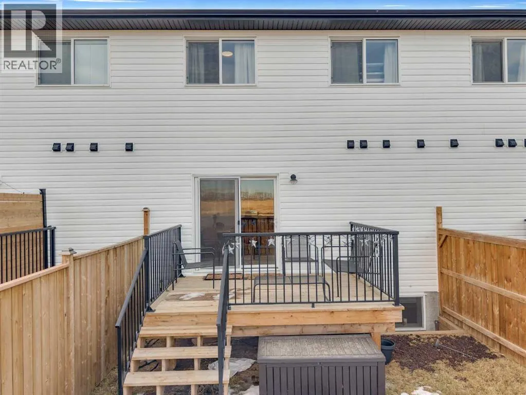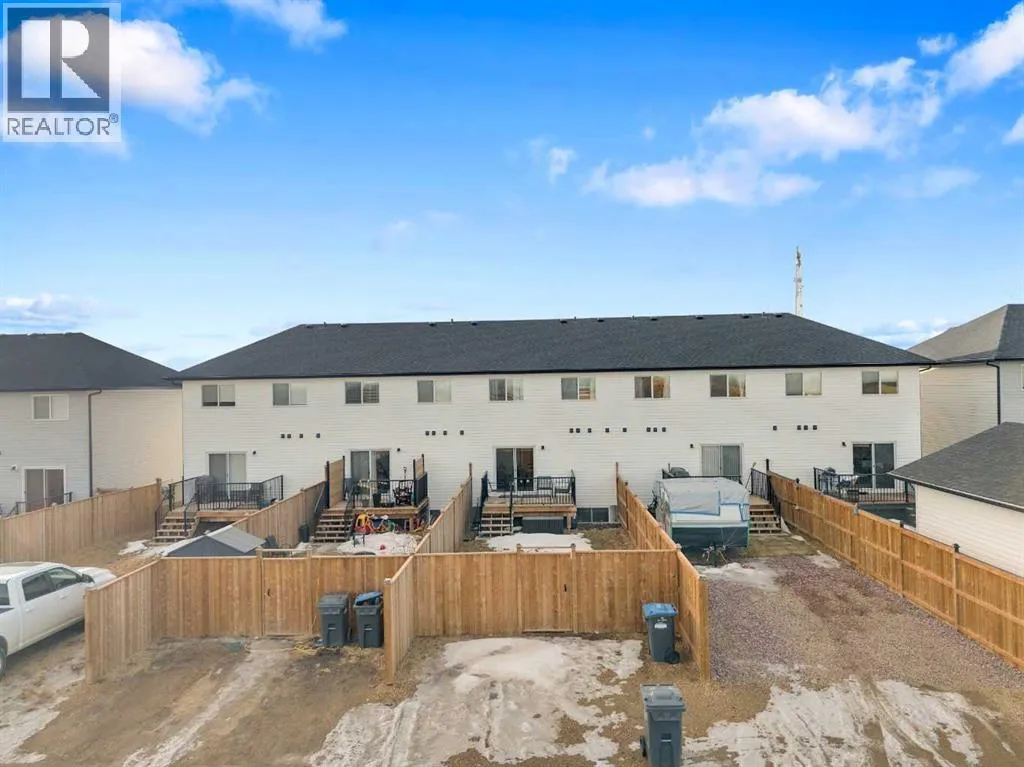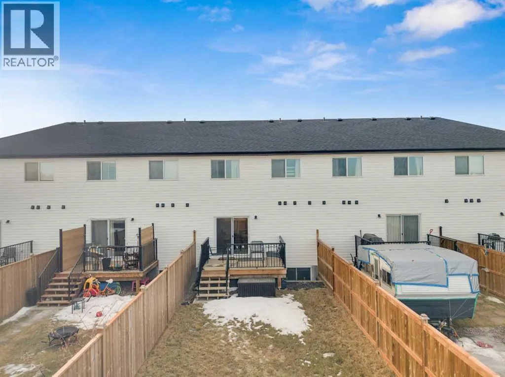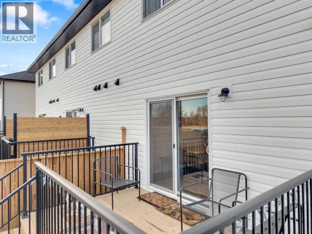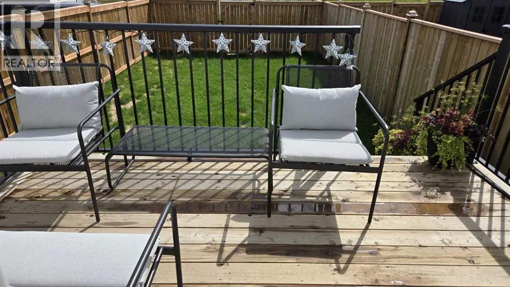 Welcome to this fully finished 2023 built townhouse offering modern design, functional space, and low maintenance living. This home features 4 bedrooms and 4 bathrooms, including 3 bedrooms above grade and a 3-piece ensuite off the primary bedroom. The upper level is finished with carpet, while the main floor showcases durable vinyl flooring throughout. The open-concept main floor is bright and welcoming, highlighted by a stylish kitchen with stainless steel appliances, a central island, and convenient main floor laundry. Step outside to enjoy the east-facing deck, perfect for morning sun, overlooking a fully fenced and fully landscaped yard. Additional features include a rear parking pad, ample storage, and a thoughtful layout ideal for families, professionals, or investors. Located close to parks and walking trails, this move-in-ready home combines comfort, style, and convenience in a fantastic setting. (id:27476)