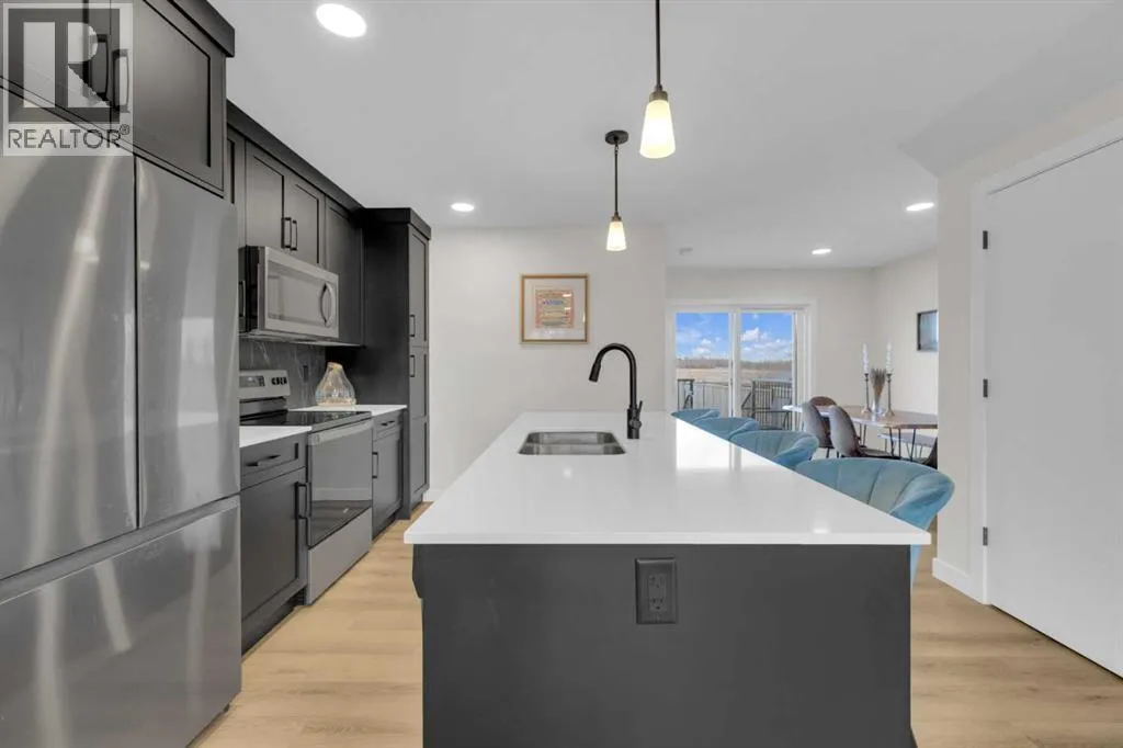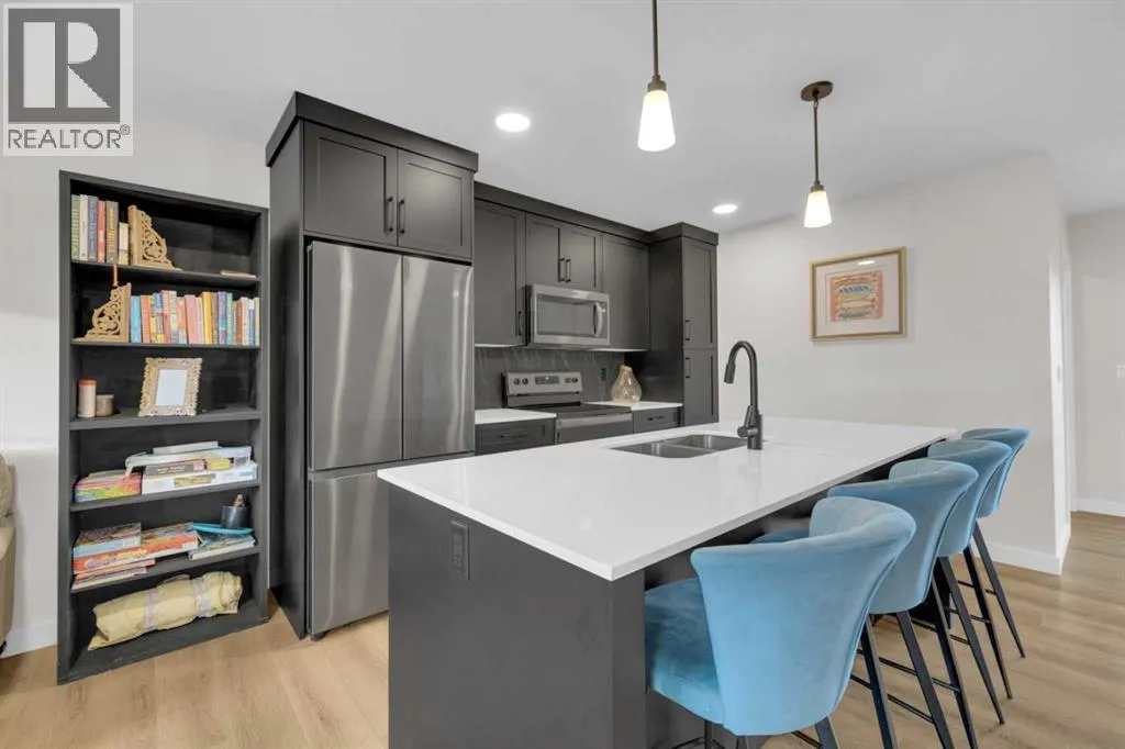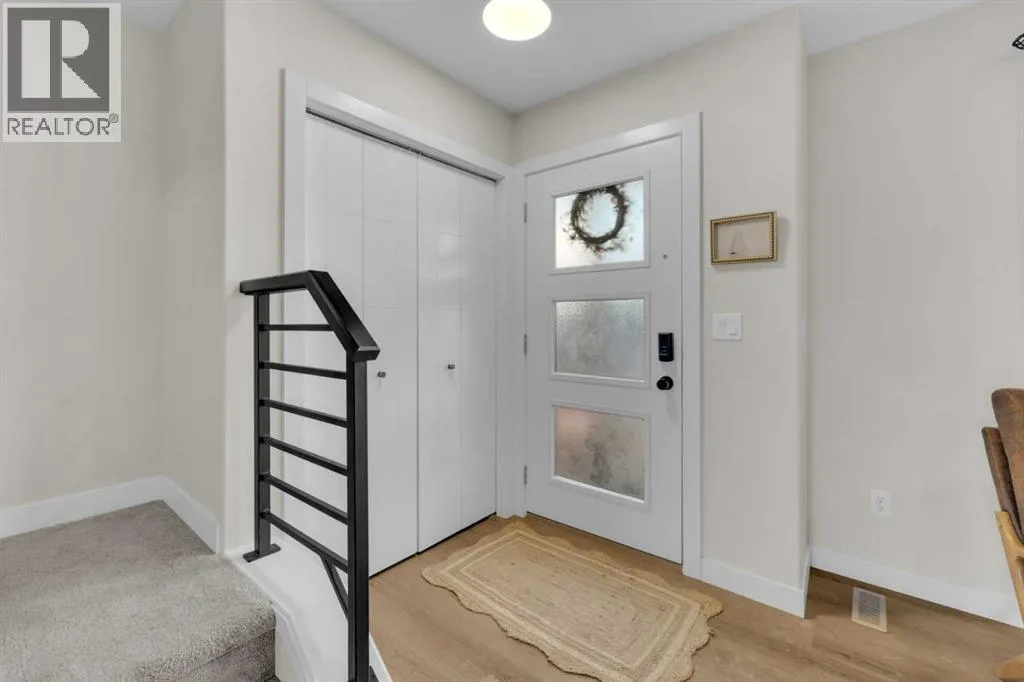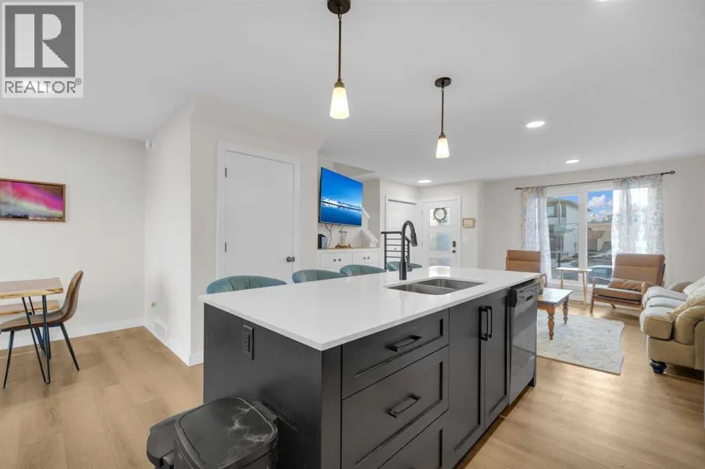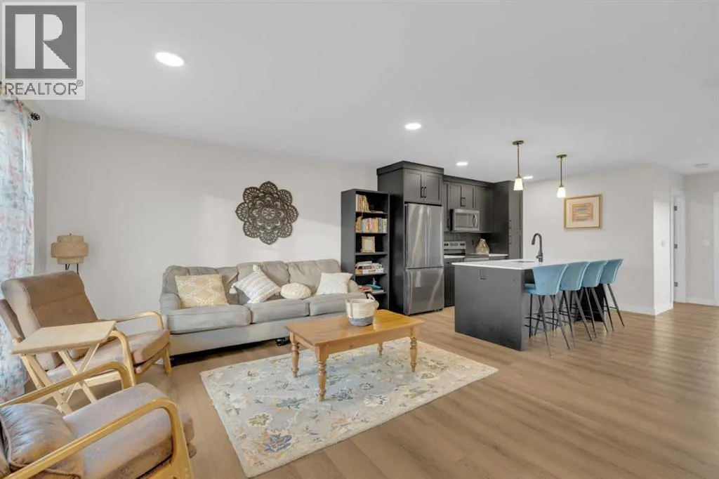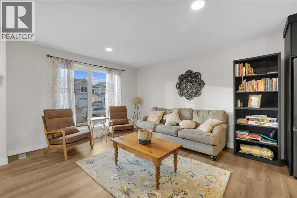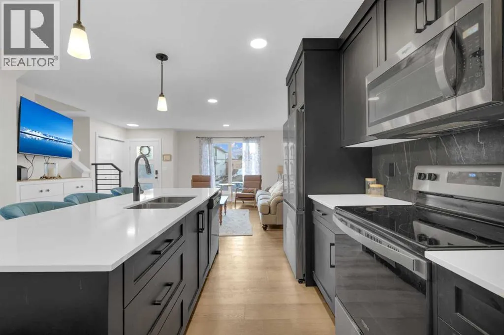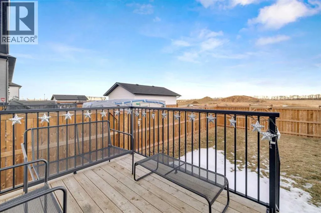 Welcome to this fully finished 2023 built townhouse offering modern design, functional space, and low maintenance living. This home features 4 bedrooms and 4 bathrooms, including 3 bedrooms above grade and a 3-piece ensuite off the primary bedroom. The upper level is finished with carpet, while the main floor showcases durable vinyl flooring throughout. The open-concept main floor is bright and welcoming, highlighted by a stylish kitchen with stainless steel appliances, a central island, and convenient main floor laundry. Step outside to enjoy the east-facing deck, perfect for morning sun, overlooking a fully fenced and fully landscaped yard. Additional features include a rear parking pad, ample storage, and a thoughtful layout ideal for families, professionals, or investors. Located close to parks and walking trails, this move-in-ready home combines comfort, style, and convenience in a fantastic setting. (id:27476)
