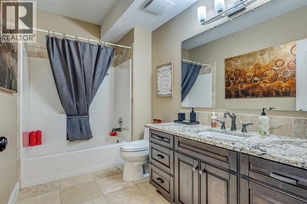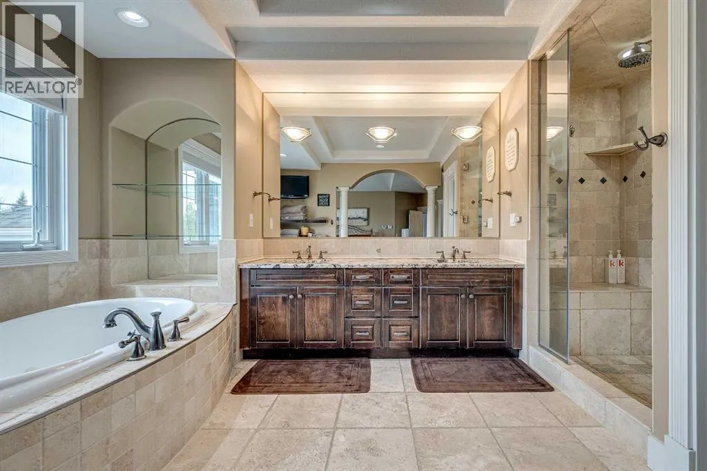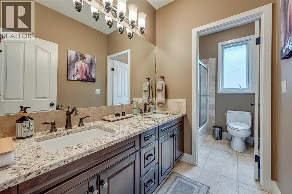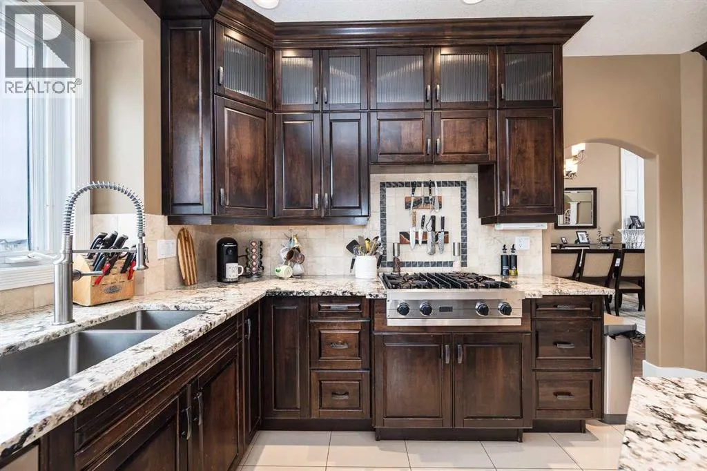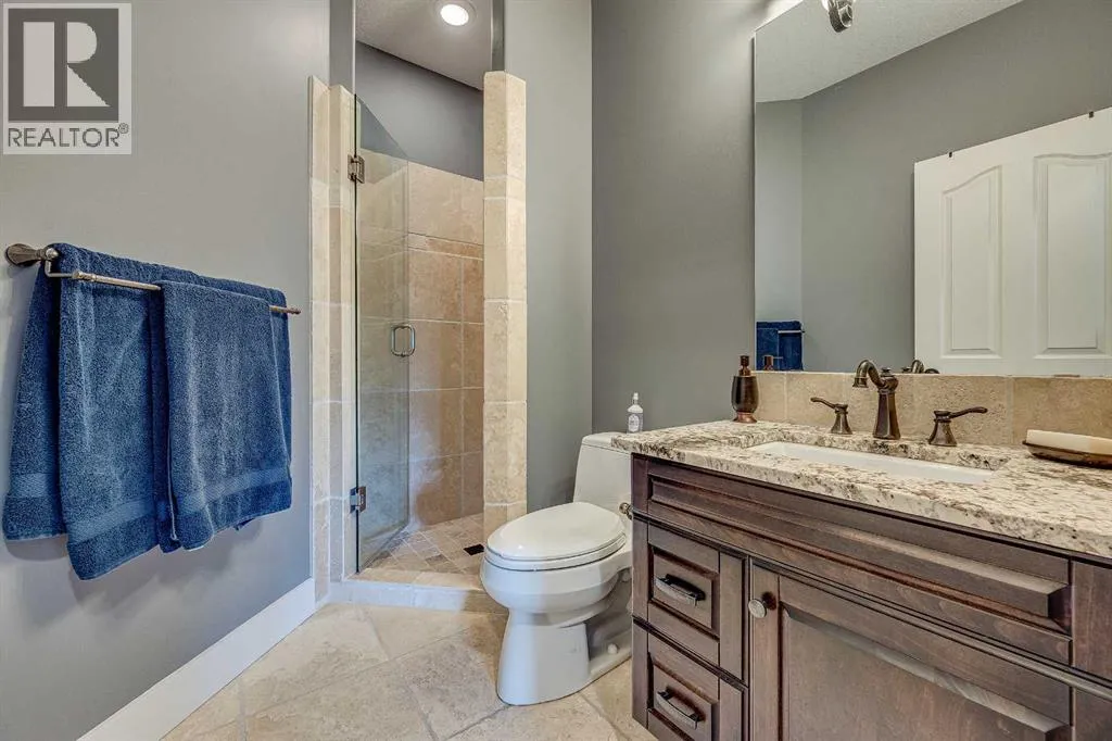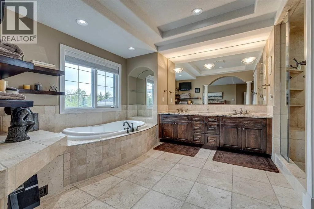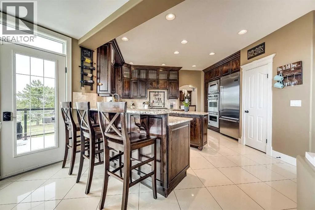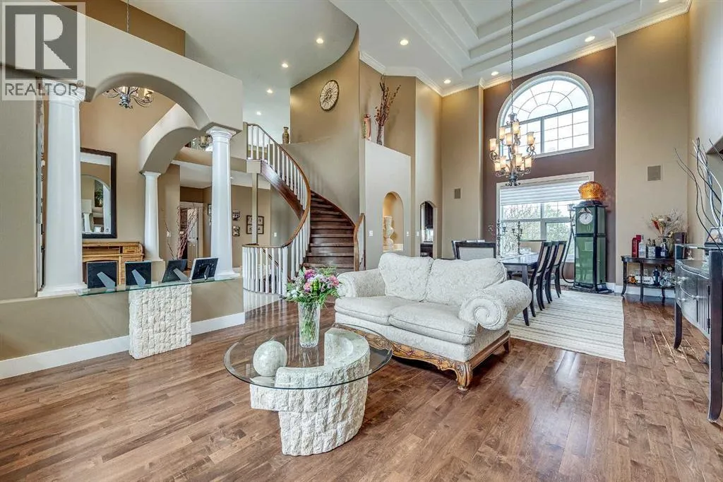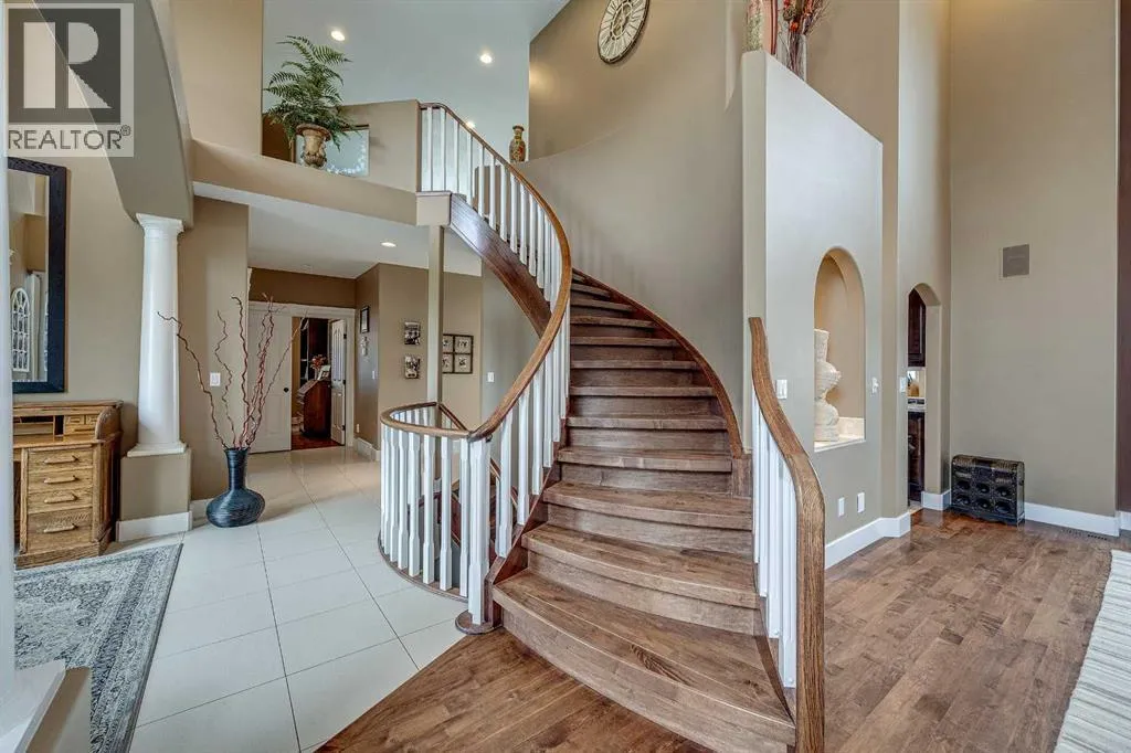 Perched high on the south hill overlooking the charming town of Sylvan Lake, this magnificent property offers unparalleled luxury, breathtaking views and development opportunities. With over 5,000 square feet of living space, this grand estate features dramatic 22-foot cathedral ceilings and a stunning spiral staircase that sets the tone for the opulence within.The main level is a haven for culinary enthusiasts, boasting a chef's kitchen equipped with top-of-the-line appliances. The formal dining and living rooms are ideal for entertaining guests in style, while the cozy family room offers a great space for everyday living. Additionally, there is a main floor office for work or managing the home. Practical amenities abound, with a large back entryway featuring a locker room, laundry room, and a convenient 2-piece bathroom.Upstairs, you'll find four spacious bedrooms, two of which have ensuite bathrooms for added privacy and comfort. The primary suite is your personal sanctuary, featuring a dream ensuite with a soaker tub, steam shower, and walk-in closet. A loft area provides a serene space to relax and enjoy the panoramic views, and a stylish 5-piece bathroom serves the other bedrooms.The walkout basement offers two large bedrooms, one with a walk-in closet, and a full 4-piece bathroom. A kitchenette makes this space perfect for empty-nester parents. The entertainment hub includes a games area and a theatre setting perfect for movie nights.Garages and additional spaces are plentiful. The triple attached garage offers ample space for everyday parking. The detached shop is a massive 46 x 36 structure accommodating vehicles, boats or all your toys, and includes a recently added shop hoist. The shop also features a bonus mezzanine with a full kitchen, 4-piece bath, and a balcony overlooking the lake. There are options to convert the upper part of the detached shop into additional living space with board-in bedrooms, providing even more versatility. An additional 2 -piece bathroom and a stackable laundry unit in the main garage area adds even more convenience.The property has had numerous upgrades, ensuring modern comfort and efficiency. The garage floor was upgraded with an epoxy finish. Both the house and shop exteriors were painted and weather-sealed. All interior tiles were sealed and 2.5 bathrooms were recently renovated. Updated custom cabinetry and crown moldings are just a few of the upgrades that have been done. 70 Foot RV parking on west side of the shop with 30 amp plug Beyond the main house, this property offers potential for development with 10 lots or 6 executive lots that can be subdivided, totaling 2.99 acres in lot size on the perimeter of the Vistas.. SUBDIVISION is an option if INVESTMENT is what you seek. This estate offers a perfect blend of luxury, comfort, and functionality, making it a dream home for discerning buyers. Donât miss the opportunity to own this extraordinary property with its unmatched views and top-of-the-line amenities. (id:27476)