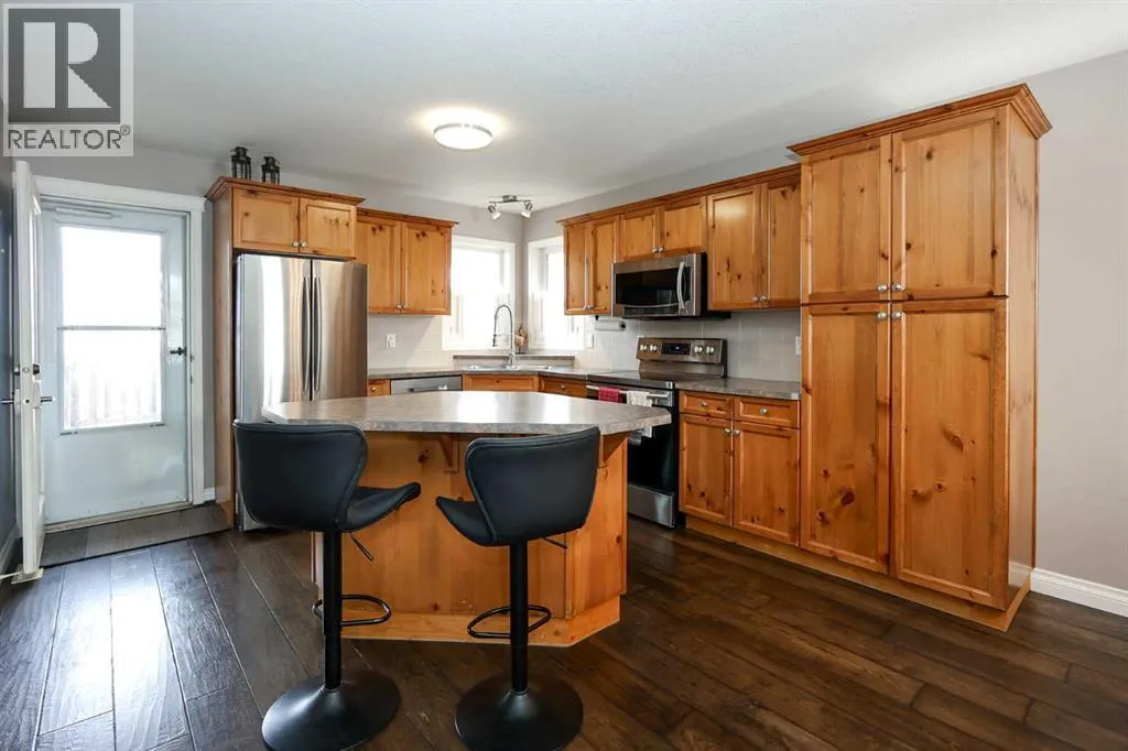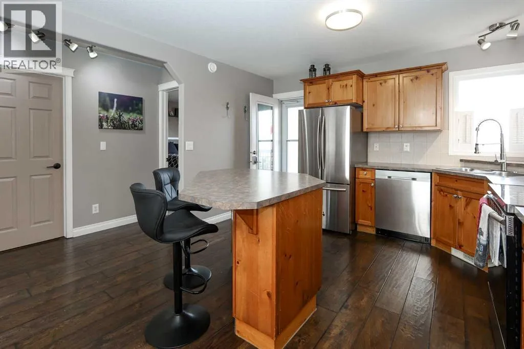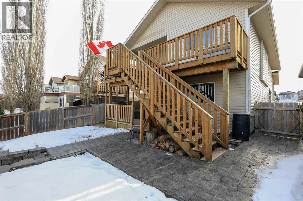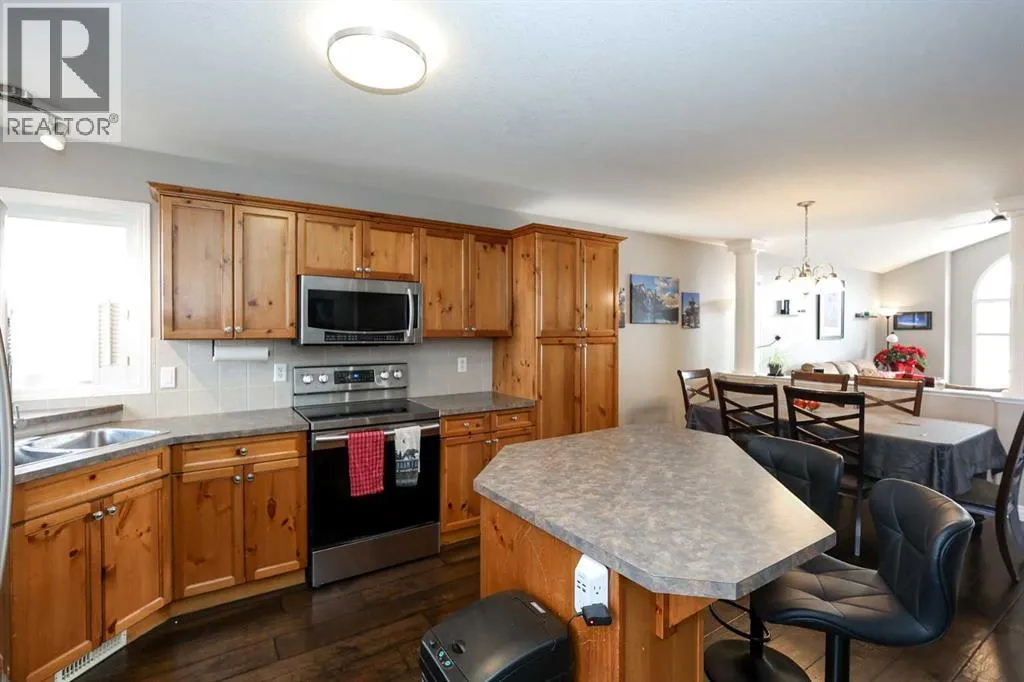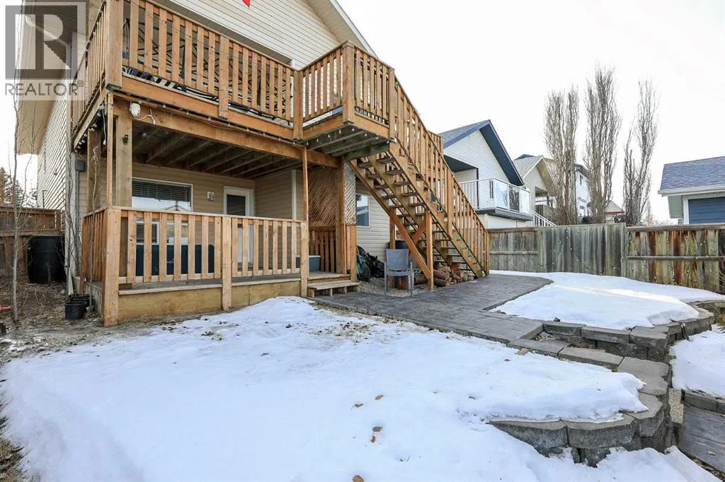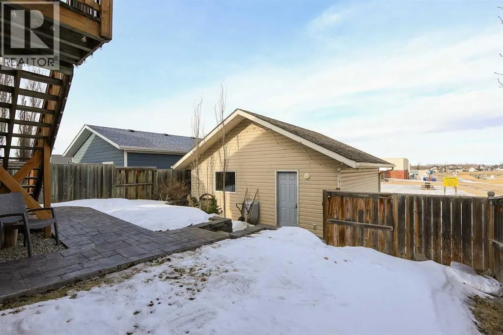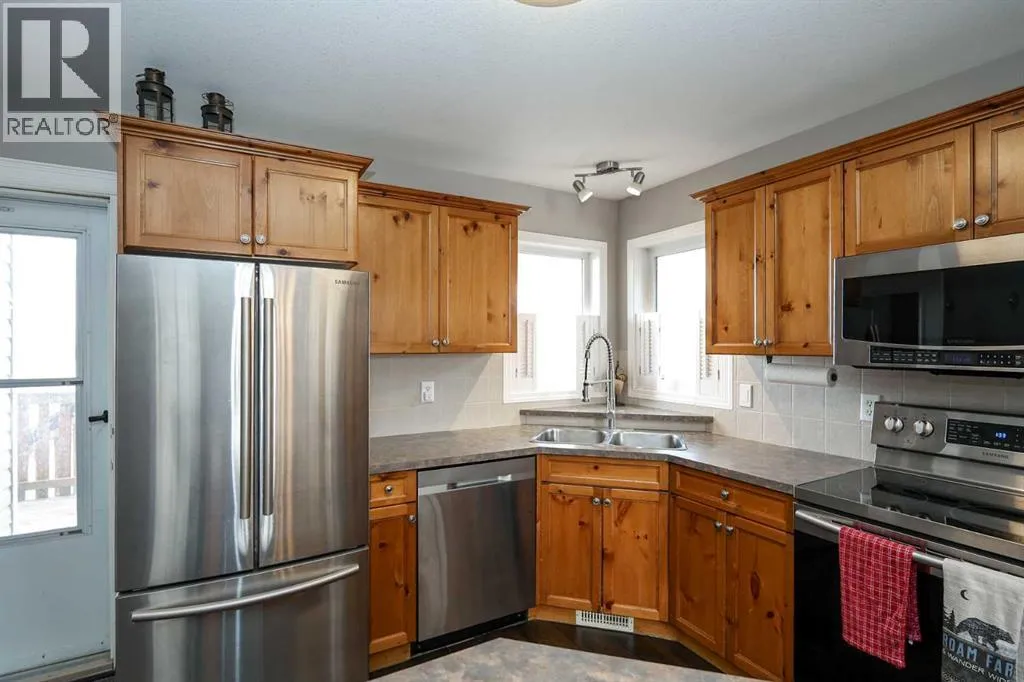 FULLY DEVELOPED 3 BEDROOM, 3 BATHROOM BI-LEVEL ~ WALKOUT BASEMENT ~ HEATED DOUBLE GARAGE & RV PARKING ~ FACING A GREEN SPACE & BACKING ONTO A PARK & SCHOOLS ~ Sunny south facing front yard with raised garden boxes with an irrigation system ~ Covered front veranda welcomes you and leads to a bright and spacious foyer with high ceilings ~ The living room features vaulted ceilings and a large south facing window that fills the space with natural light while offering beautiful park views ~ Architectural columns provide a visually appealing separation between the living and dining space while maintaining an open floor plan ~ The kitchen offers plenty of pine cabinets with crown moulding and built in wall pantry; ample counter space including an island with an eating bar; full tile backsplash; and a window above the sink that overlooks the deck and park ~ Garden door access to the partially covered upper deck that spans the entire width of the home, has a gas line, and offers park views ~ The primary bedroom can easily accommodate a king size bed, has ample closet space, and a 3 piece ensuite ~ Second main floor bedroom is also a generous size and is conveniently located next to the 4 piece main bathroom ~ The fully finished, walkout basement has large above grade windows, high ceilings and operational in-floor heating ~ Family room/den (currently being used as a home office) has board and batten wainscotting and opens to the rec room with plenty of space for a seating area and games table or home gym, plus a separate entry leading to a covered deck (with wiring roughed in for a hot tub), and the backyard ~ 3rd bedroom is conveniently located next to a 3 piece bathroom with a walk in shower ~ Laundry is located in it's own room, has a large window and tons of space for storage ~ The backyard is landscaped and fully fenced ~ HEATED 22' x22' detached garage with shelving, 220V wiring on it's own sub panel, and a workbench (seller will replace shingles on garage before poss ession) ~ RV parking beside the garage with an easy approach and paved back alley ~ Backing onto Meadowview Park, Ãcole Fox Run School and Ãcole Mother Theresa Catholic School ~ Easy access to walking trails, more great parks and playgrounds, shopping, dining, and the beach/Lakeshore Drive ~ (id:27476)