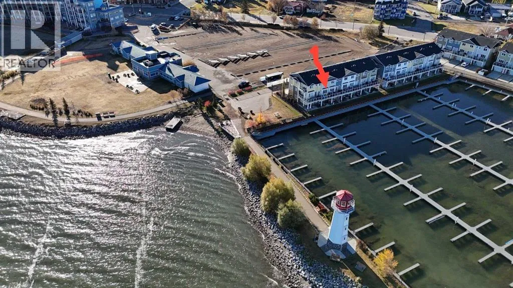 AFFORDABLE WATERFRONT CONDO with reasonable low condo fees of $335/month ! Treat your eyes with beautiful lake front living at its finest, with stunning VIEWS TO WAKE UP TO and all day long plus into the night. ONLY ONE UNIT AWAY FROM THE LIGHTHOUSE PROMENADE right on the lake and the marina and next to Friday FARMERS MARKET! This fabulous 3 bedroom 4 bathroom townhome with 9' HIGH CEILINGS and attached GARAGE/FAMILY ROOM is located right on the WATERS EDGE MARINA in Sylvan Lake. Enjoy the PLEASANT MORNING VIEWS and SUNSETS from the large upper deck and lower patio and WHILE LAYING IN BED.! This amazing GATED COMMUNITY property is just steps from all DOWNTOWN RESTAURANTS AND SHOPPING. There is a public park and beach area just steps from the front door, with the main beach and pier only a block away. The main floor consists of a heated single garage/family room with convenient 2 piece bathroom, a flex room (BEDROOM/GYM/den/office/bedroom/craft room with it's own separate entrance), large storage closet, EPOXY GARAGE FLOOR finishing, and a rear access door to a covered concrete patio overlooking the Marina. The second floor is gorgeous with an abundance of natural light streaming through the windows that overlook the lake, finished in vinyl plank flooring,-ideal for lakeside living. The kitchen has ample cabinet and counter space-finished with QUARTZ COUNTER TOPS, soft close cabinets and stainless steel appliances (including a GAS STOVE with double oven) and REVERSE OSMOSIS drinking tap. Cozy up in the living room after a day on the lake in front of the inviting FIREPLACE, or enjoy the panoramic views from the large upper deck accessed from the the living room. Upstairs you will find two good sized bedrooms including a primary suite (with lake views right from your bed), a walk-in closet and a 5 piece ensuite, a second bedroom, a 4 piece main bathroom, and top floor LAUNDRY with washer/dryer completing the upper floor. CENTRAL AIR CONDITIONING will keep you cool on those warm summer days. Other great features include central vac roughed in, natural gas line to the upper and lower decks. WAKE UP HAPPY to be in such a paradise...one of the most affordable options for living right on the water currently listed for WELL UNDER 2025 Appraised value and Municipal Assessment -SHORT TERM and long term rentals are allowed. (id:27476)