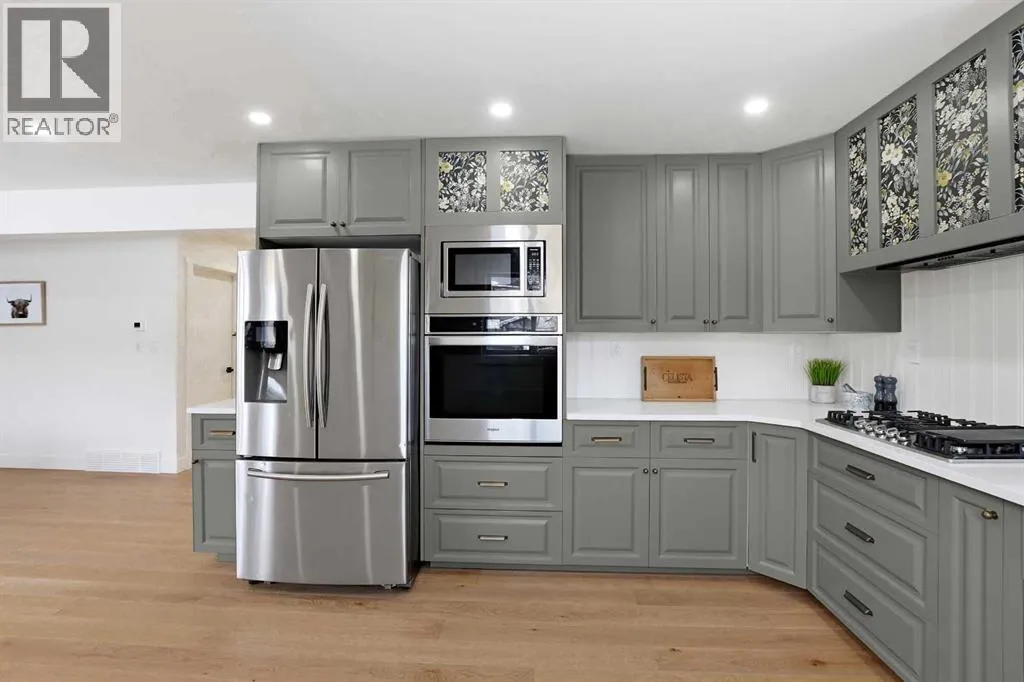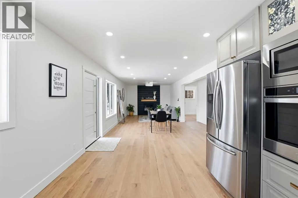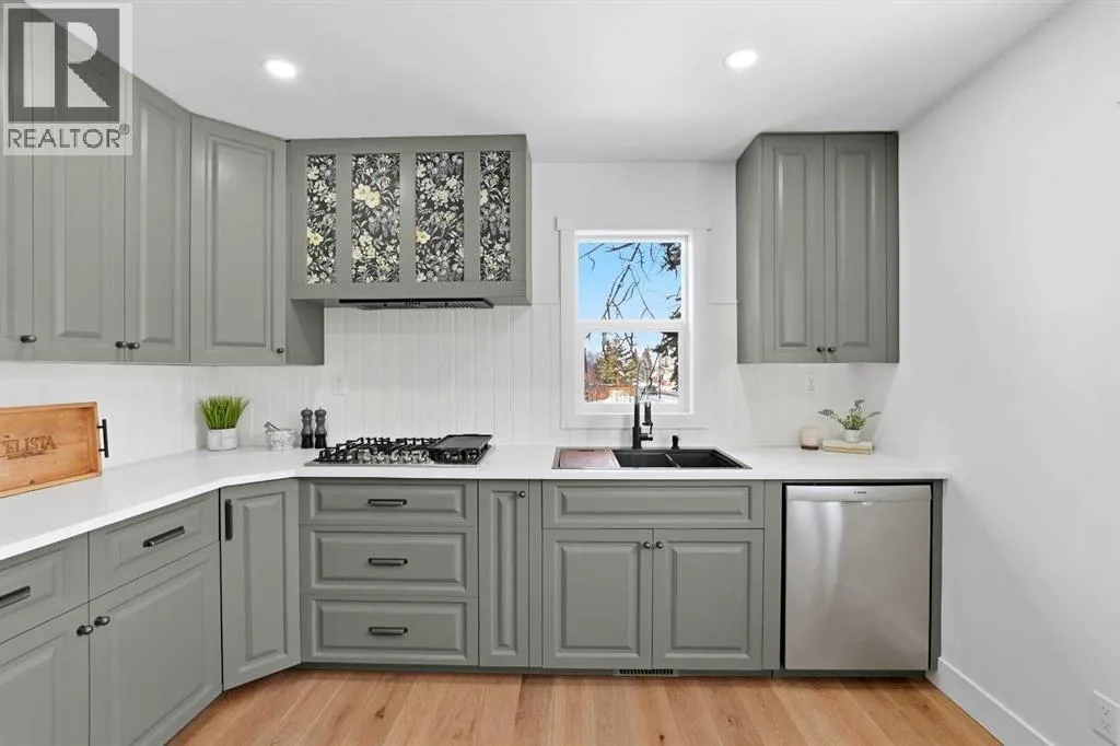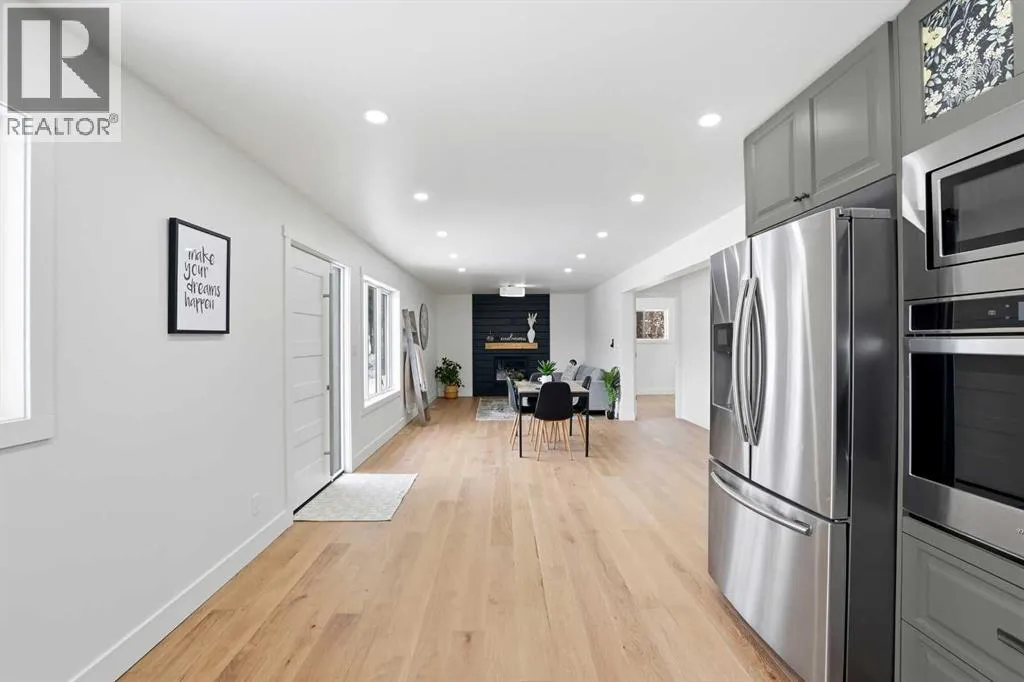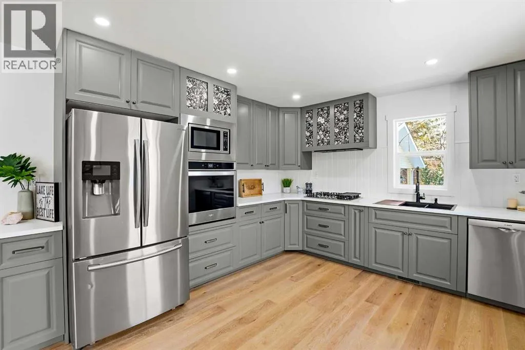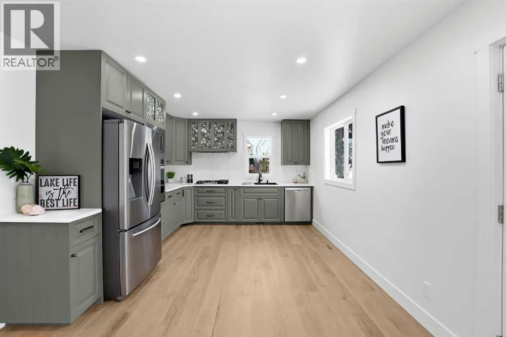 ~OPEN HOUSE SUNDAY MARCH 8th from 1-3PM!~ Just listed in Sylvan Lake! This stunning, fully renovated bungalow sits on an oversized, beautifully treed lot backing directly onto the golf course with no neighbours behindâoffering exceptional privacy and a peaceful setting. Nearly every inch of this home has been thoughtfully updated, including a brand-new kitchen, vanities, furnace, hot water tank, flooring, paint, and insulationâ¦the upgrades truly go on and on.Step inside to a bright, open-concept layout filled with natural light from large windows and modern pot lighting throughout. The cozy living room features a gas fireplace and flows seamlessly into the show-stopping kitchenâperfect for entertaining. The main floor is complete with two bedrooms and two 3-piece bathrooms.Downstairs, youâll find a spacious family room, two generously sized bedrooms, a 4-piece bathroom, and a convenient laundry room with sink.The massive lot offers endless possibilities with space to build a garage, park RVs, and enjoy back lane/alley access. Located just steps from the lake and marina, yet tucked away from the downtown hustle and bustle, this property offers the best of both worlds.With incredible summer Airbnb potential and an unbeatable location, this amazing property wonât last long! (id:27476)
