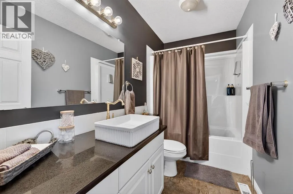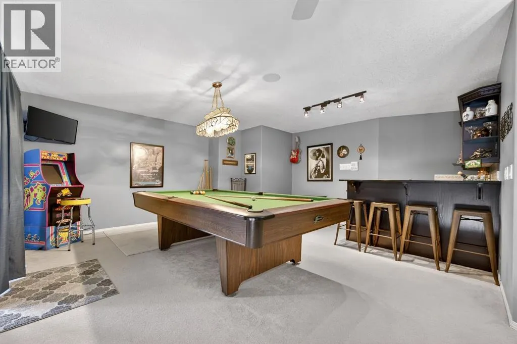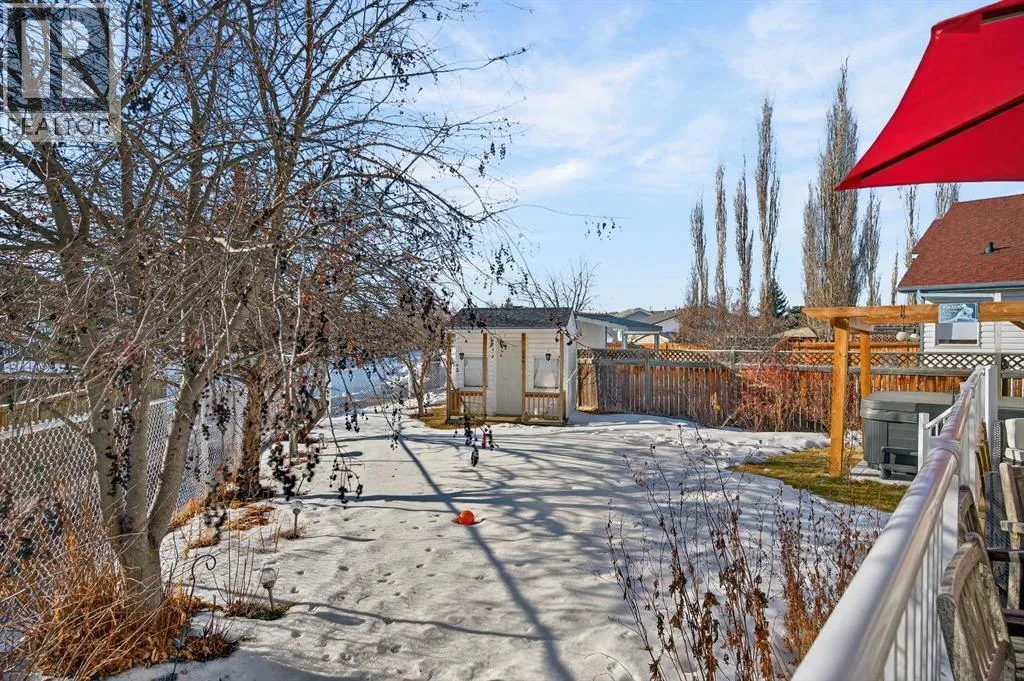 Welcome to an exceptional opportunity in the heart of Sylvan Lake where lifestyle, location, and long-term value come together in one beautifully updated home! Perfectly positioned across from the Marina, steps to the golf course, and just a short walk to Lakeshore Driveâs beaches, restaurants, shops, and year-round entertainment, this property delivers the ultimate lake-town experience with very low maintenance! The list of upgrades is extensive and gives true peace of mind: roof, freshly serviced air conditioning, furnace, hot water on demand, hot tub, stone countertops, and fresh paint. All the major components have been addressed so you can simply move in and enjoy.Designed with a main-level living layout, this home features a massive primary bedroom on the main floor complete with a full ensuite showcasing new counters, sinks, and beautiful fixtures that add a refined touch. Patio doors lead directly from the primary suite to the backyard and brand-new hot tub, creating the perfect private retreat. Main floor laundry adds everyday convenience.As you enter through the large foyer, youâre welcomed by soaring ceilings and a bright open-concept dining and living space that feels both spacious and inviting. A versatile additional sitting room on the main floor offers flexibility for a formal living area, library, or quiet office space complete with gas fireplace.The functional kitchen is ideally located just off the dining area and offers views to the large backyard. It features a sit-up bar, breakfast nook, and direct access to the sunny south-facing deck. The yard is fully fenced with low-maintenance chain link fencing, amazing vegetation, and includes a charming storage shed perfect for lake gear and seasonal storage.Upstairs is set up perfectly for entertaining and hosting family and friends. A dedicated hangout space includes a wet bar, built-in cabinetry, fridge, balcony to take in the views of the lake, and ample room for a pool table and games area. Two generously sized bedrooms, a full bathroom, and a private office complete the upper level, providing excellent separation of space for guests or extended family.The basement is wide open and ready for future development to suit your needs, whether additional bedrooms, recreation space, fun play areas or storage.Located in one of Albertaâs most desirable recreational communities, this property also offers excellent TURN-KEY potential for short-term rental income, making it an attractive option for investors or those looking to offset ownership costs in a thriving tourist destination.With extensive upgrades, flexible living spaces, and an unbeatable location in Sylvan Lake, this home is a rare find that combines comfort, entertainment, and opportunity. (id:27476)