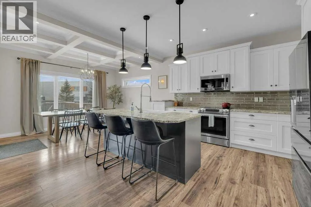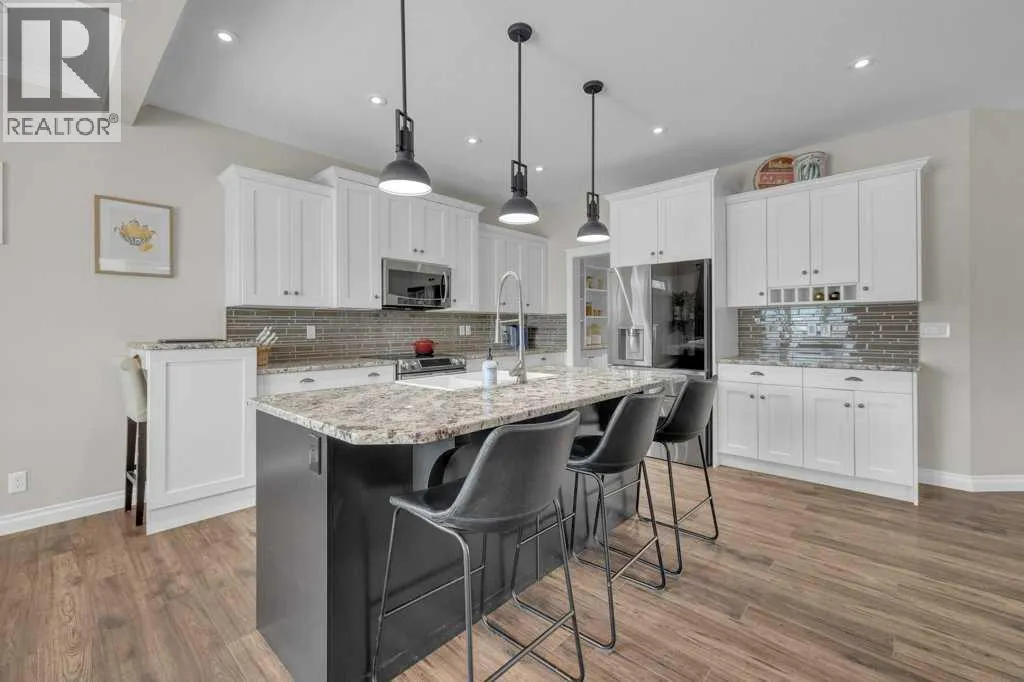 Welcome to your forever home in the heart of Sylvan Lake. This impeccably maintained, 5-BEDROOM custom-built residence offers about 3000 square feet of fully finished living space, combining high-end luxury with industry-leading efficiency.Built with an ICF (Insulated Concrete Form) foundation, this home is designed for the Alberta climate. This means superior energy efficiency, significantly lower utility bills, and a basement that stays remarkably warm and quiet year-round. Say goodbye to damp, cold lower levels and hello to a rock-solid, eco-friendly fortress.The open-concept main floor is anchored by a chef-inspired kitchen featuring gleaming quartz countertops, premium stainless appliances, and sophisticated built-in cabinetry. Organization is effortless with a large WALK-THROUGH pantry that connects directly to the mudroom, making grocery runs from the garage a breeze. A stylish powder room completes the main level, ideal for guests.The Primary RetreatThe upper-level primary suite is a true sanctuary. Pamper yourself in the spa-like ensuite, complete with luxury in-floor heating, a modern free-standing tub, and a sleek walk-in shower. Itâs the perfect place to unwind after a long day.Fully Finished Lower LevelThe basement isn't just "finished"âit's an extension of the homeâs luxury. Featuring in-floor heating to keep things cozy during winter months, this space offers two additional large bedrooms and a spacious family room, perfect for movie nights or a dedicated play area.Exterior & LocationThe garage is also equipped with in-floor heating, a dream for any hobbyist or for those frosty morning commutes. The property backs directly onto an elementary school, providing a massive, unobstructed "backyard" view and the ultimate convenience for families with young childrenâwatch the kids walk to school from your back deck!Key Features at a Glance:â¢5 Bedrooms / [X] Bathroomsâ¢ICF Foundation: High R-value and structural integrity.â¢Triple-Zone In-Floor Heat: Garage, Basement, and Ensuite.â¢Quartz countertops throughout the kitchenâ¢Chefâs Pantry: Walk-through access from the garage.â¢Prime Location: Steps from the school and minutes from the lake.This is a rare opportunity to own a high-performance custom home in one of Sylvan Lake's most sought-after family locations. Move-in ready and built to last a lifetime. (id:27476)