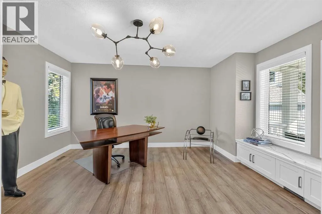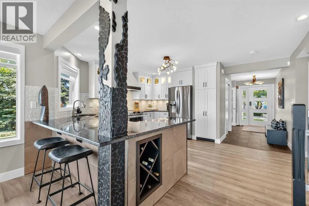 Waterfront Luxury in the Heart of Sylvan Lake, Welcome to your lakeside retreat in the prestigious Marina Bay community, where every day feels like a getaway. This stunning 2-storey home offers over 3,400 sq ft of total living space, beautifully designed across three levels with 4 bedrooms and 4 full bathrooms â ideal for families or those who love to entertain in style.Step inside and be greeted by a bright, open-concept main floor featuring a spacious living room anchored by a cozy fireplace, a gourmet kitchen with modern cabinetry, stainless steel appliances, and generous island seating, and a formal dining area perfect for gatherings with friends and family. A dedicated office on the main level offers the ideal work-from-home setup, while the 3-piece bath and laundry room add convenience.Upstairs, discover a luxurious primary suite complete with a 3-piece ensuite, large closets, and peaceful lake-view vibes. Two additional bedrooms and a 4-piece bathroom complete the upper level â each room thoughtfully sized for comfort and function.The fully finished basement extends the living experience, boasting a wet bar, large recreation room, fourth bedroom, and another full bathroom â a perfect setup for guests, extended family, or cozy movie nights.Outdoors, enjoy an expansive deck and private yard, perfect for relaxing summer afternoons after a day on the water. Property is has full Irrigation. The attached double garage provides ample space for vehicles, and lake gear, plus seller has been approved for a large detached garage along the east side of the lot for more storage for your boat or cars and potential for extra added living space. This Property has 2 Boat Slips and Remember Marina Bayâs exclusive amenities â including a private marina, tennis courts, clubhouse, and lakeshore walking paths â set the standard for resort-style living. (id:27476)