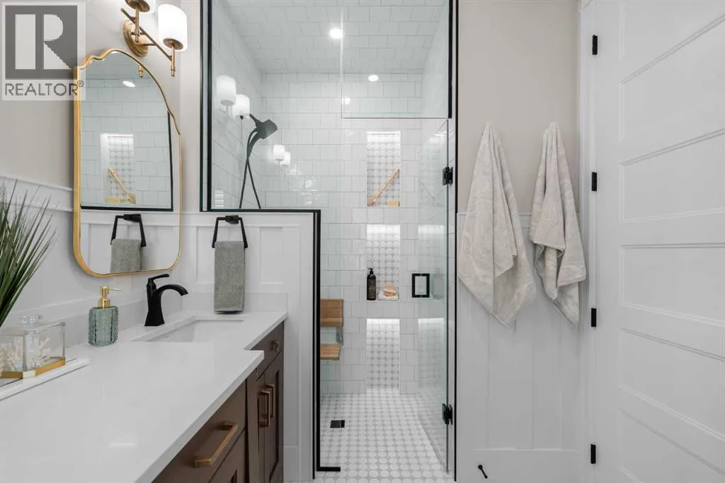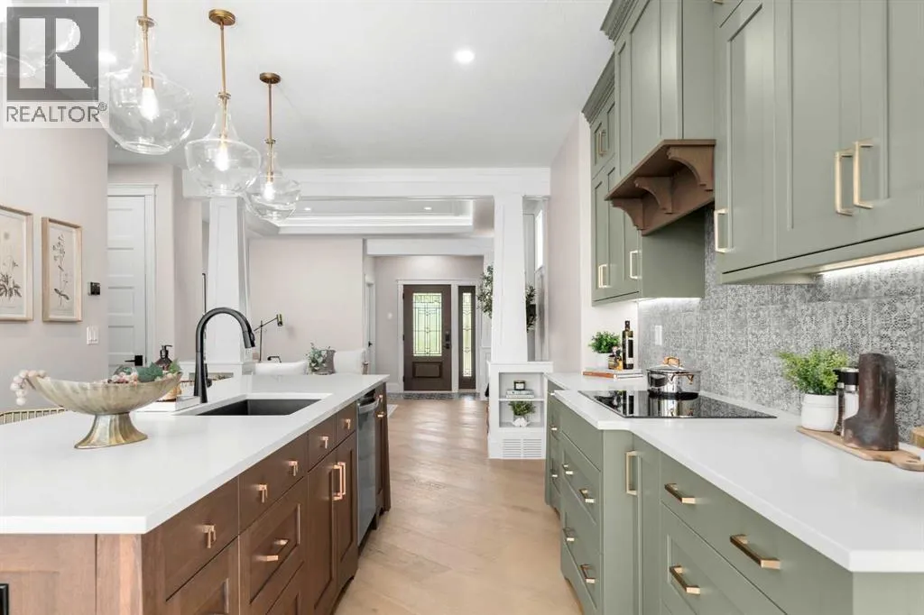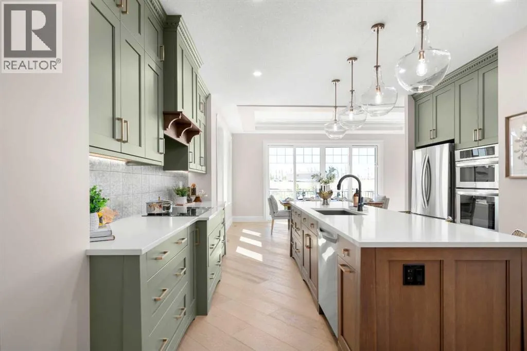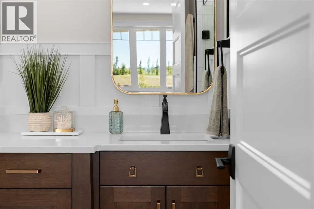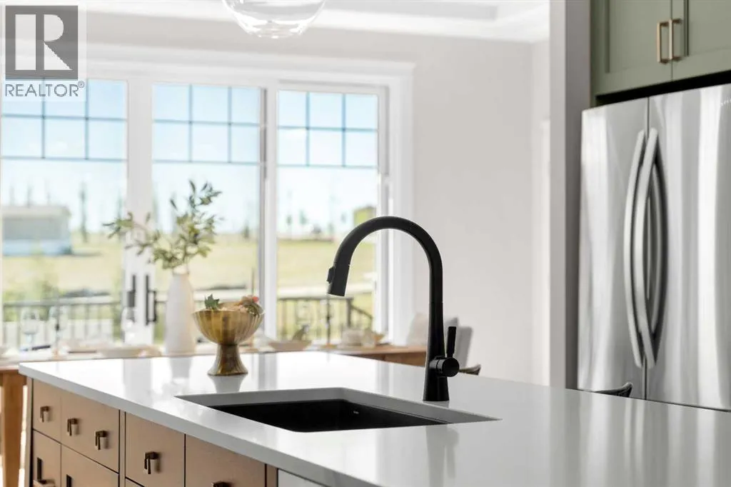 Welcome to The Hawktail, an EnergyStar® certified home designed for comfortable main floor living while offering flexibility for families and guests. Presented in show home condition and fully finished, this property is move-in ready with show home furniture negotiable, creating a seamless turnkey opportunity. Built for superior durability and efficiency, the home features an ICF foundation and graphite-infused ICE Panels above grade, delivering exceptional insulation, structural strength, and energy performance. The result is an airtight, quiet, and consistently comfortable home in every season. The thoughtfully designed main floor includes a spacious primary bedroom with convenient laundry just steps away. The ensuite is built for comfort and accessibility, complete with in-floor heating and a curbless shower. Bright open-concept living areas feature large windows and high ceilings, creating an inviting space ideal for everyday living and entertaining. The fully developed basement offers three additional bedrooms, a full bathroom, a flex room, and mechanical area, providing outstanding versatility for family living, guests, hobbies, or a home office. Additional efficiency upgrades include a heat pump laundry pair, heat pump hot water tank, and electric vehicle readiness to help reduce utility costs.The attached garage is equally impressive, featuring heated epoxy flooring, a built-in mudroom space, and no stairs for easy access into the home. Located on a quiet street with ample parking in the desirable Sixty West community of Sylvan Lake, the home faces north toward a walking trail with no future homes planned across the street. The rear of the property overlooks a community gazebo and water feature, offering a peaceful setting. Residents enjoy more than four kilometers of interconnected walking trails, nearby parks, and convenient amenities. (id:27476)