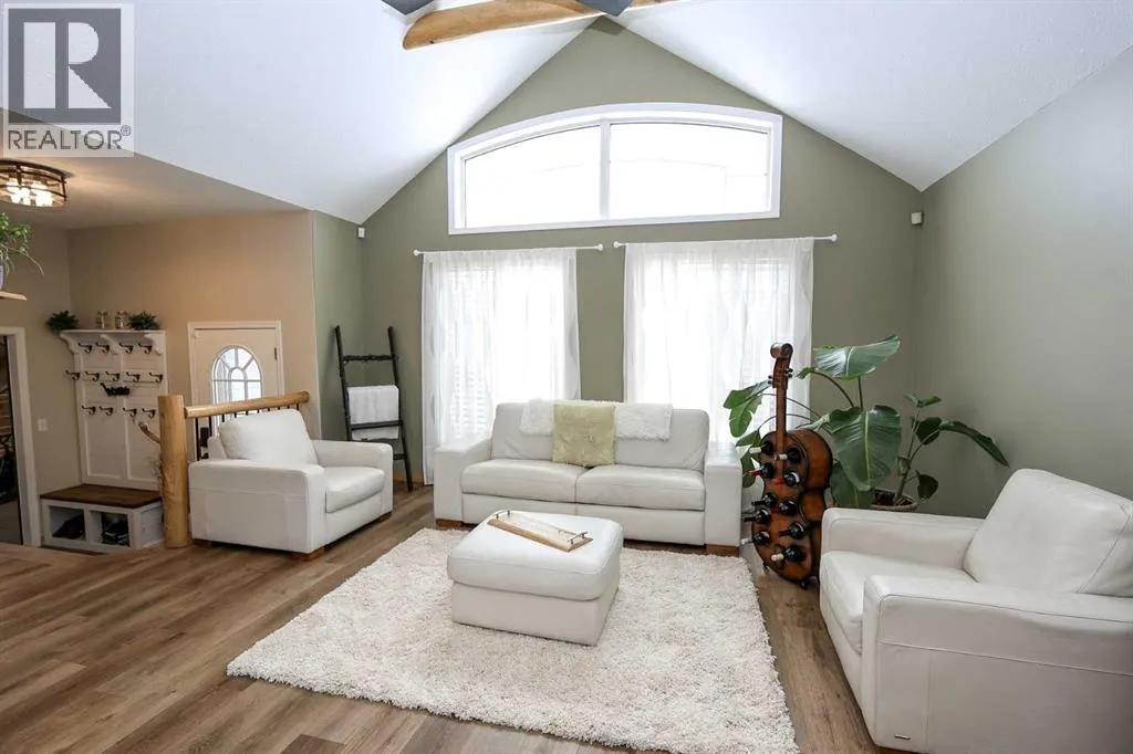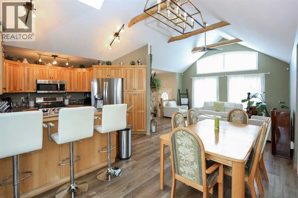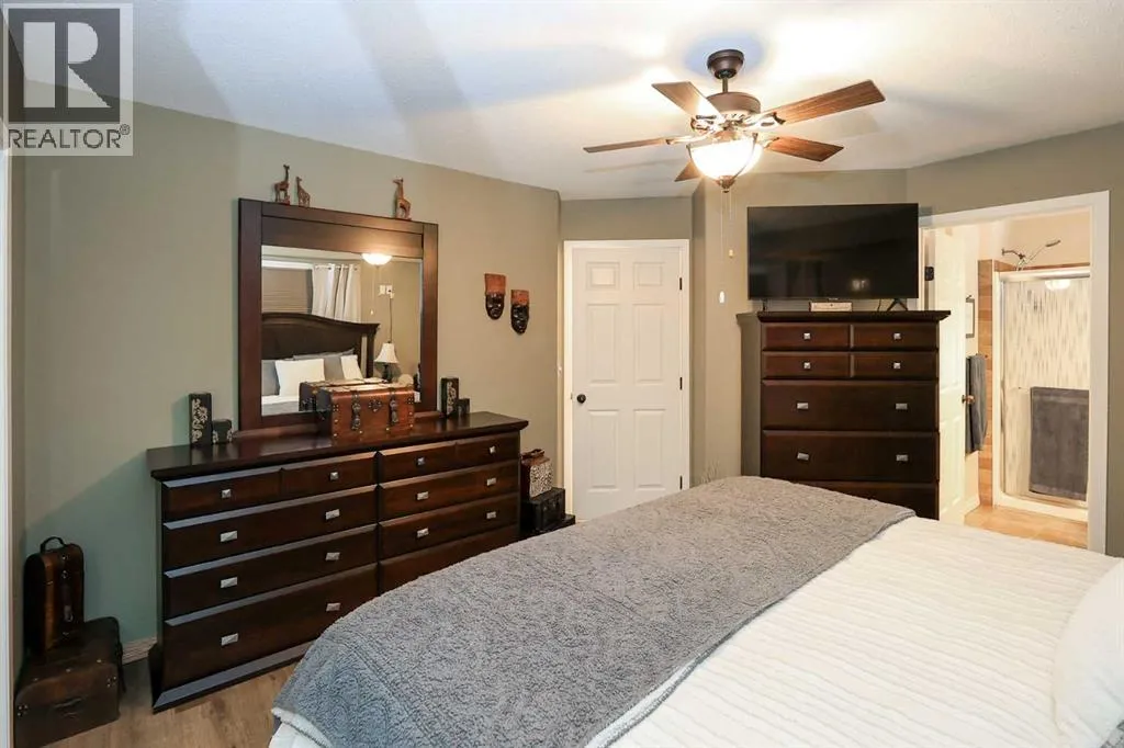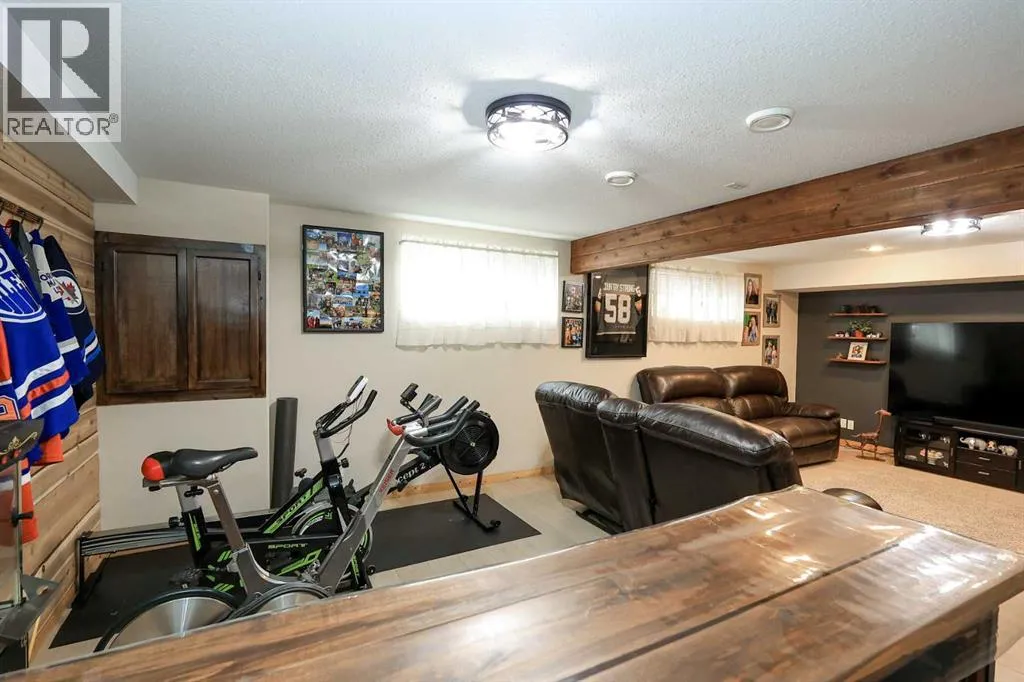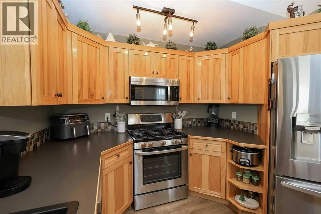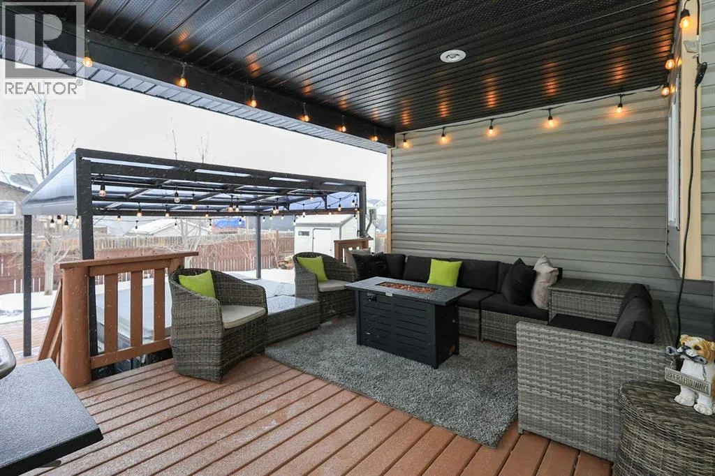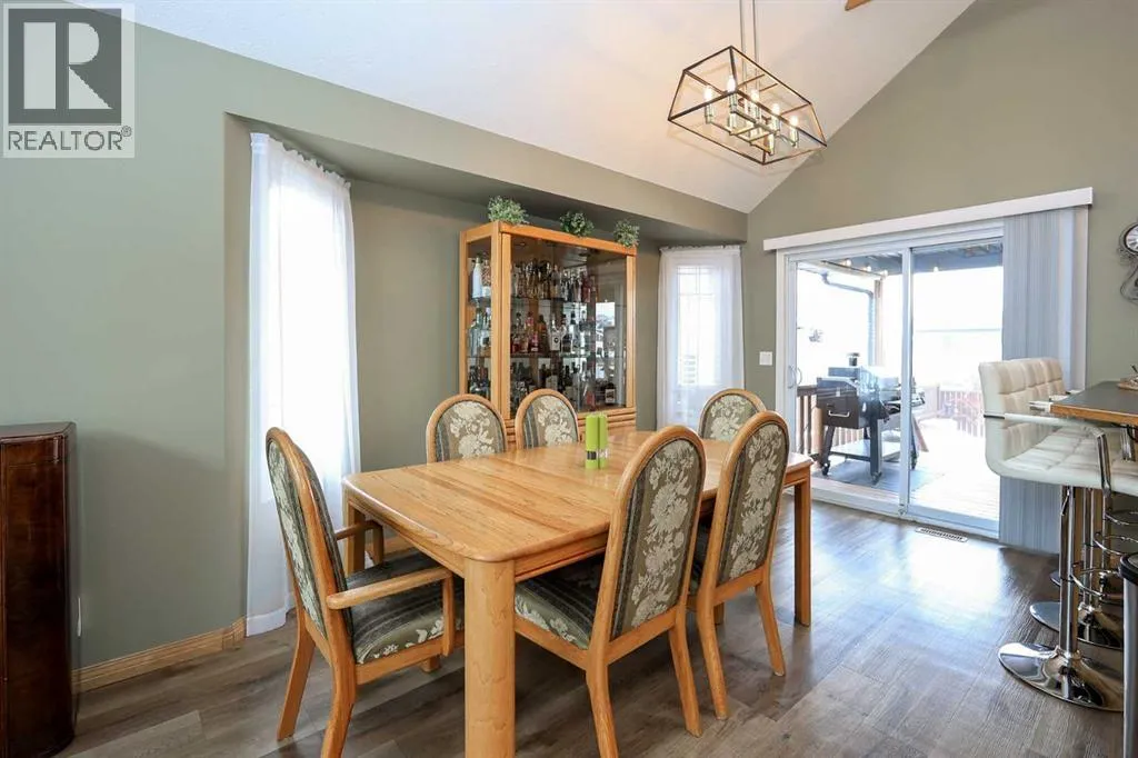 FULLY DEVELOPED BUNGALOW 5 BED, 3 BATH ~ 24' L X 22' W HEATED ATTACHED GARAGE ~ LANDSCAPED BACKYARD W/A COVERED DECK, GAZEBO & HOT TUB ~ Bright and welcoming foyer leads to the open concept main floor with soaring vaulted ceilings and vinyl plank flooring ~ The living room features large south facing windows that fill the space with natural light and is centred by a cozy gas fireplace with floor to ceiling stone ~ Easily host large gatherings in the dining room with garden door access to a covered 16' x 11' deck with a BBQ gas line, and a 20' x 17' lower deck with a gazebo and hot tub ~ The kitchen features a sky light and offers an abundance of light stained hickory cabinets, ample counter space including a raised eating bar, full tile backsplash, and stainless steel appliances ~ The primary bedroom can easily accommodate a king size bed, has dual closets and a 3 piece ensuite with a 5' walk-in shower ~ 2 additional main floor bedrooms are both a generous size with ample closet space ~ Conveniently located main floor laundry just off the bedrooms ~ 4 piece main bathroom has an oversized vanity and linen closet ~ The fully finished basement with operational in floor heat offers a large family room with a media space and bar area with cedar panelling, plus two large bedrooms (one with a walk-in closet/dressing room), 4 piece bathroom with a 6' jetted tub, and ample space for storage ~ Other great features include; central air conditioning, central vacuum, water softener (2024), sky light and sun tube, permanent exterior LED lighting ~ The 24' L x 22' W attached garage is heated, insulated, finished with painted drywall and cedar, has high ceilings and tons of built in cabinets ~ The backyard is landscaped, has a garden shed, fire pit, and is fully fenced with a fenced in dog run and back alley access ~ Located close to schools, parks and walking trail, steps to multiple shopping plazas with all amenities, easy access to the beach/Lakeshore and highways ~ Pride of own ership and move in ready! (id:27476)