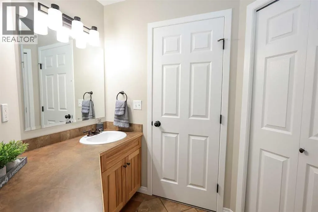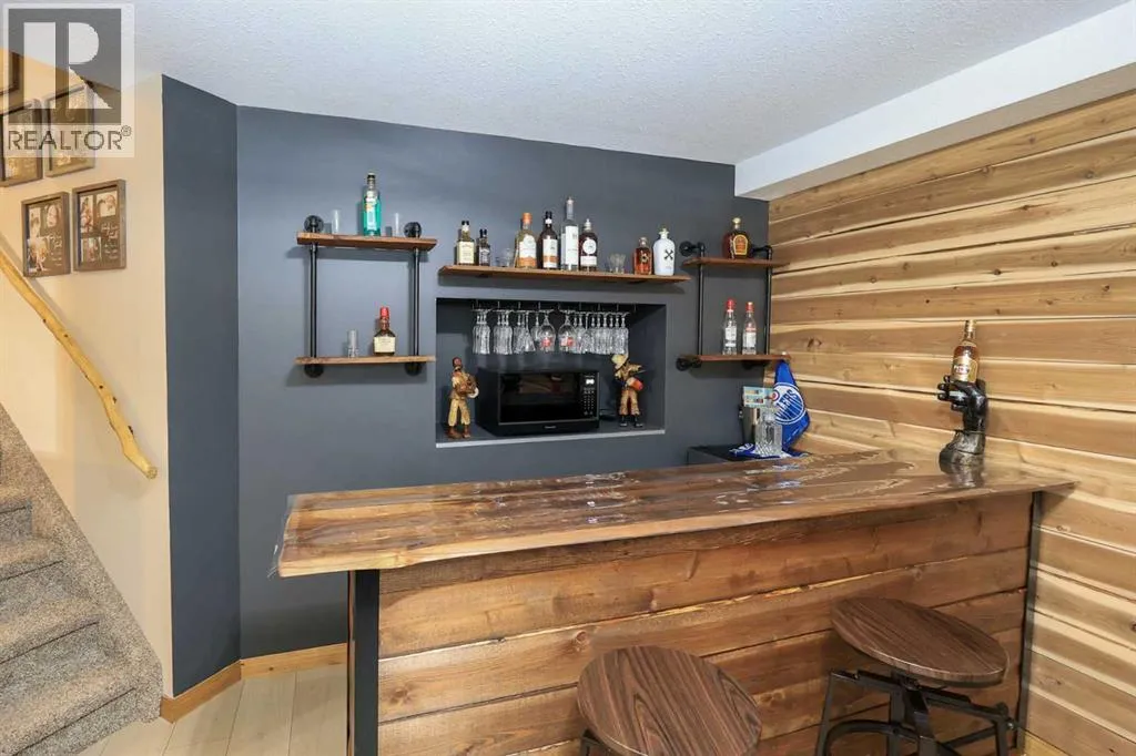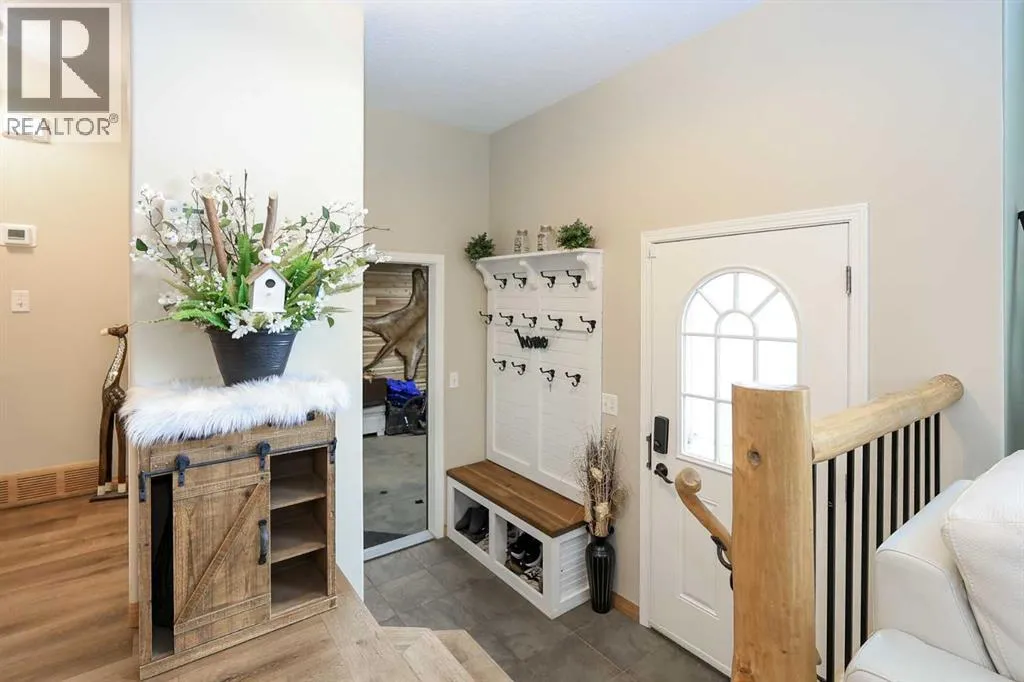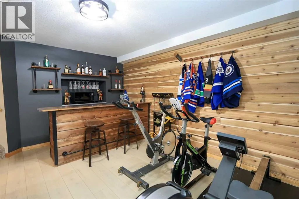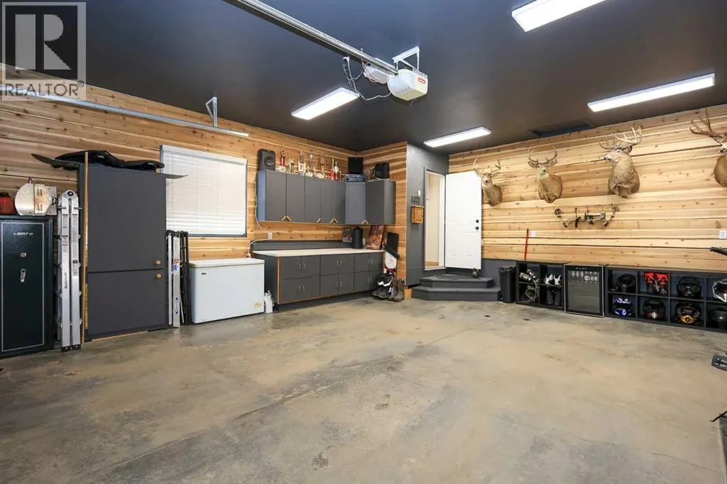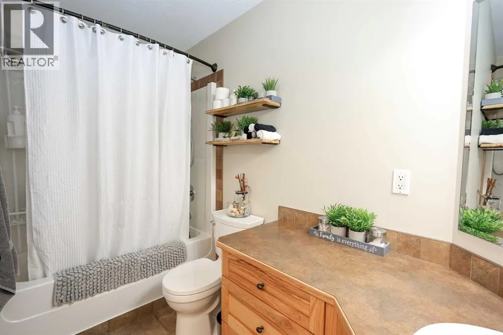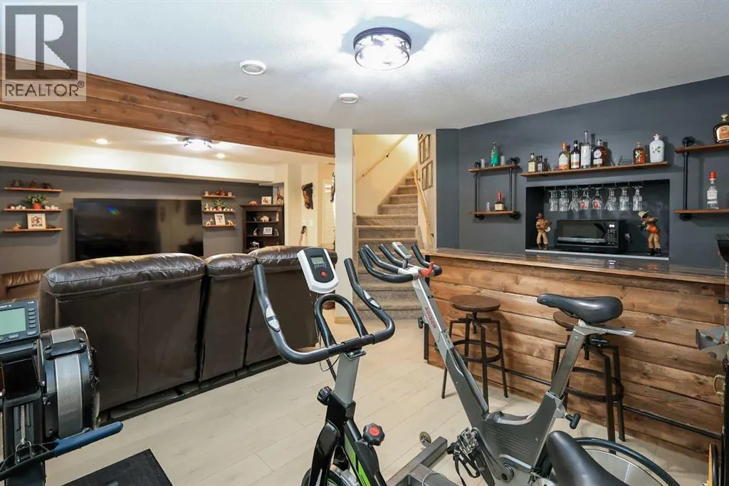 FULLY DEVELOPED BUNGALOW 5 BED, 3 BATH ~ 24' L X 22' W HEATED ATTACHED GARAGE ~ LANDSCAPED BACKYARD W/A COVERED DECK, GAZEBO & HOT TUB ~ Bright and welcoming foyer leads to the open concept main floor with soaring vaulted ceilings and vinyl plank flooring ~ The living room features large south facing windows that fill the space with natural light and is centred by a cozy gas fireplace with floor to ceiling stone ~ Easily host large gatherings in the dining room with garden door access to a covered 16' x 11' deck with a BBQ gas line, and a 20' x 17' lower deck with a gazebo and hot tub ~ The kitchen features a sky light and offers an abundance of light stained hickory cabinets, ample counter space including a raised eating bar, full tile backsplash, and stainless steel appliances ~ The primary bedroom can easily accommodate a king size bed, has dual closets and a 3 piece ensuite with a 5' walk-in shower ~ 2 additional main floor bedrooms are both a generous size with ample closet space ~ Conveniently located main floor laundry just off the bedrooms ~ 4 piece main bathroom has an oversized vanity and linen closet ~ The fully finished basement with operational in floor heat offers a large family room with a media space and bar area with cedar panelling, plus two large bedrooms (one with a walk-in closet/dressing room), 4 piece bathroom with a 6' jetted tub, and ample space for storage ~ Other great features include; central air conditioning, central vacuum, water softener (2024), sky light and sun tube, permanent exterior LED lighting ~ The 24' L x 22' W attached garage is heated, insulated, finished with painted drywall and cedar, has high ceilings and tons of built in cabinets ~ The backyard is landscaped, has a garden shed, fire pit, and is fully fenced with a fenced in dog run and back alley access ~ Located close to schools, parks and walking trail, steps to multiple shopping plazas with all amenities, easy access to the beach/Lakeshore and highways ~ Pride of own ership and move in ready! (id:27476)
