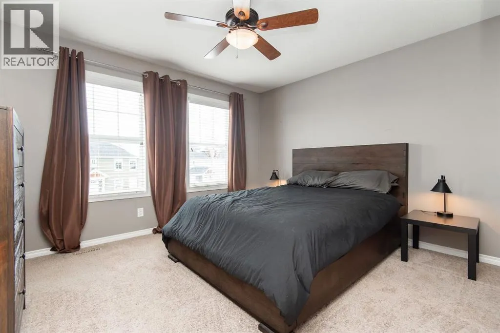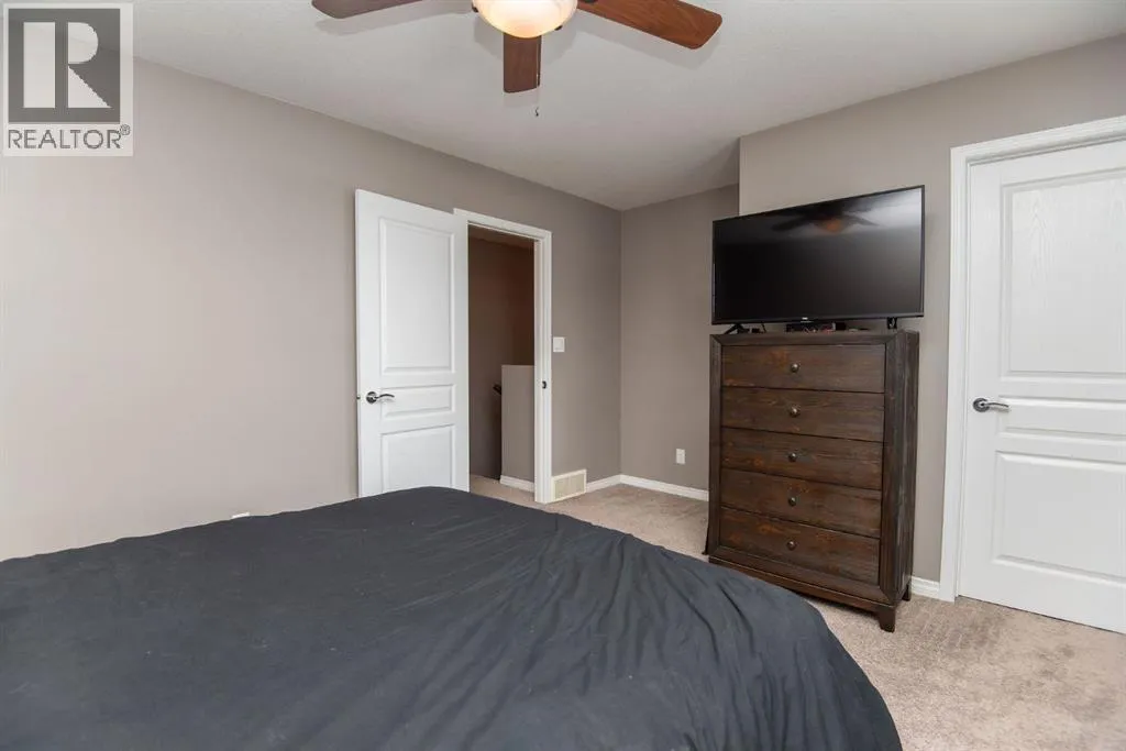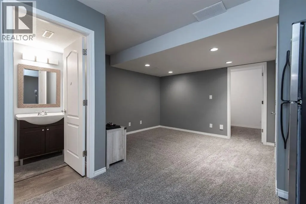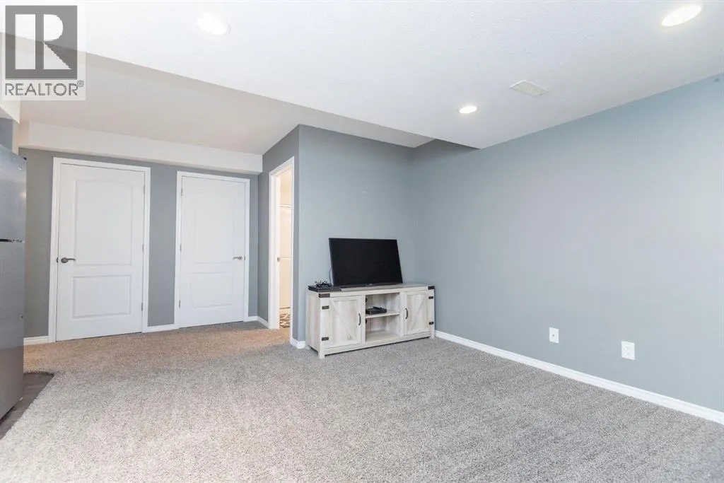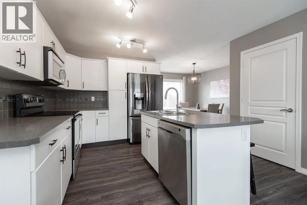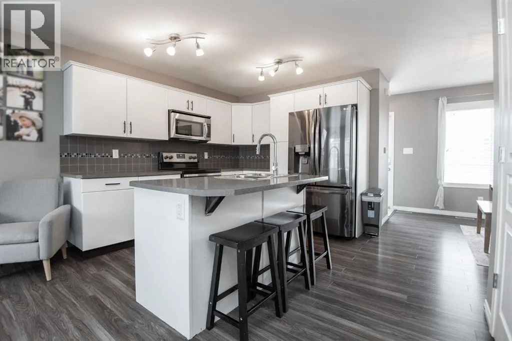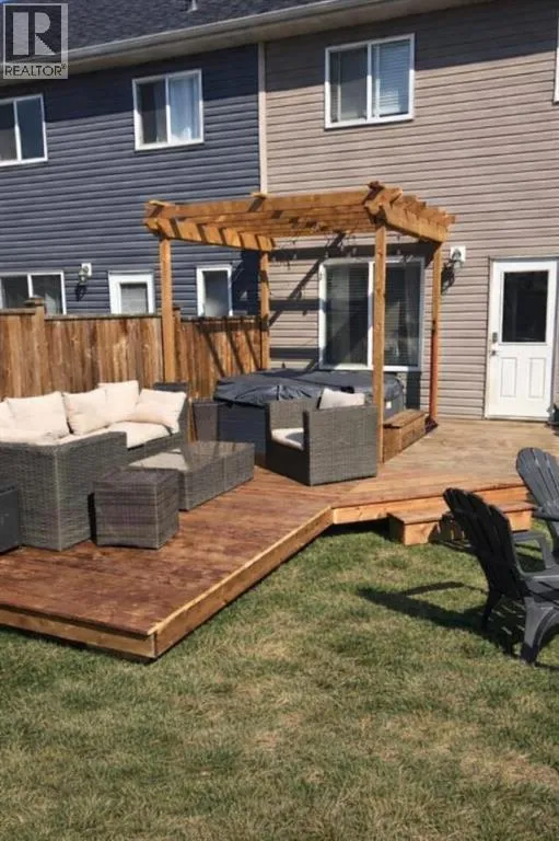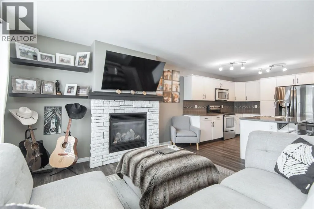 NO CONDO FEES!!! Fully Finished Townhouse on a Quiet Close in Ryders RidgePerfect for first-time buyers, downsizers, or investors, this fully finished end-unit townhouse offers style, space, and an unbeatable location. Situated on a quiet close in desirable Ryders Ridge, this two-storey home features a bright open-concept main floor with modern colours, trendy design, and a cozy gas fireplace in the living room.The spacious kitchen is a standout with white cabinetry, upgraded stainless steel appliances, a fully tiled backsplash, and a large island with eating barâideal for entertaining or everyday living with separate dinning area. Upstairs youâll find a comfortable primary bedroom with walk-in closet and 4-piece bath, along with two additional bedrooms and a convenient linen closet. The fully finished basement adds even more living space with a large family room, an additional bedroom, and a 3-piece bathroom featuring a custom tiled shower.Step outside to your backyard oasis complete with a private deck and hot tub areaâperfect for relaxing at the end of the day.Located within walking distance to schools, playgrounds, and all amenities, this move-in-ready home truly checks all the boxes! (id:27476)