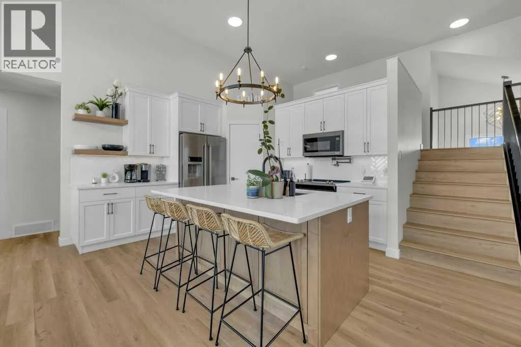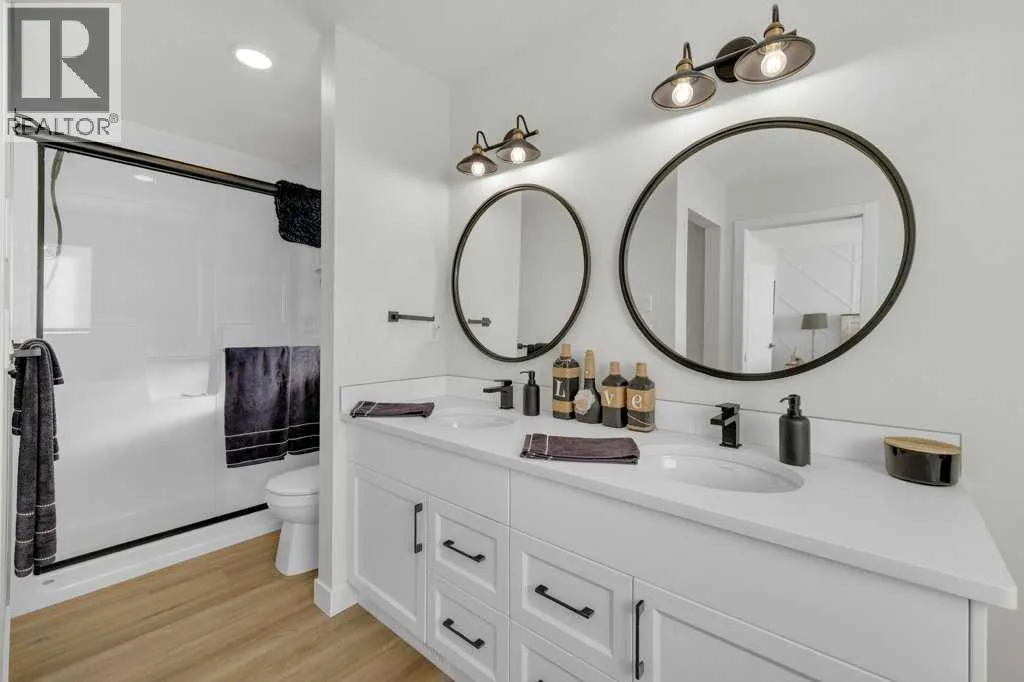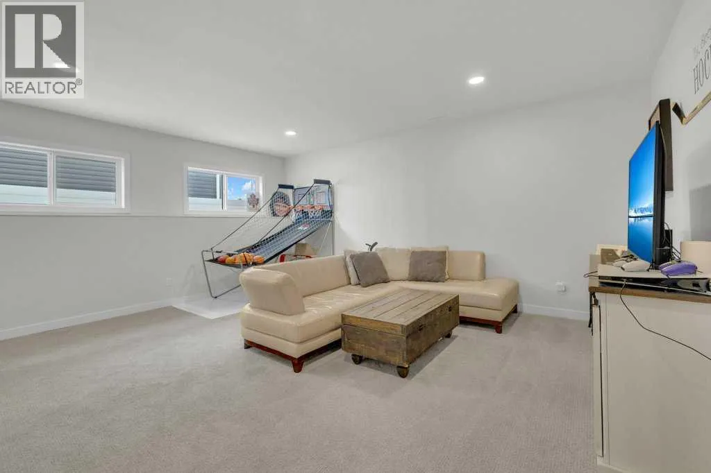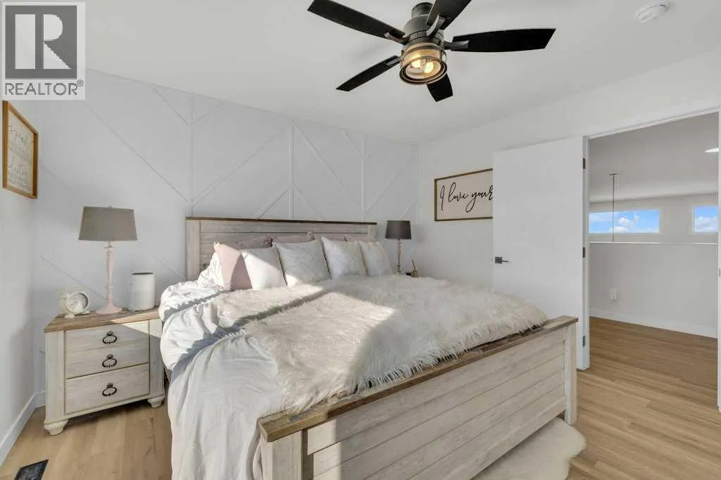 Welcome to #4183 Ryders Ridge Blvd., Sylvan Lake! A Stunning 4 bedroom, 3 bathroom modified bi-level built by Edge Custom Homes. Offering stylish finishes, thoughtful upgrades, and fantastic indoor and outdoor living spaces, this home will not disappoint! Step inside to vinyl plank flooring throughout, upgraded lighting, modern ceiling fans, a stunning electric fireplace with shiplap feature wall adding that trendy flair, and soaring main floor ceilings for that wow factor! This inviting open concept floorplan is perfect for families and entertaining all in one!The kitchen is designed for both functionality and style with upgraded appliances, an upgraded backsplash, beautiful cabinetry, quartz counter tops, and plenty of workspace for everyday living and hosting. Upstairs and tucked away from the hustle and bustle of the house is the primary suite - a beautiful, tranquil retreat featuring a spacious bedroom, walk in closet, and a 5 piece spa inspired ensuite, complete with dual vanities, soaker tub and a 5ft shower. The lower level consists of a large family room, a very spacious laundry room, the 4th bedroom, and another 4 piece bathroom!Outside you will find a landscaped yard featuring vinyl fencing, a shed, deck with waterproof decking and stairs leading to a cement pad belowâperfect for outdoor seating or entertaining, or a hot tub. Just across the street is also the park and playground in the Vista for the kids! In the winter this area doubles as a toboggan hill and ice rink too!It doesn't stop there! The OVERSIZED 22x27 HEATED garage includes convenient built-in shelving, providing excellent storage and organization, and dual overhead doors for that extra ease of parking.Additional features include a tankless hot water system, water softener, window coverings, a large laundry room, and modern finishes/fixtures throughout that make this home move-in ready and highly desired!A perfect combination of style, comfort, and functionality, and a MUST SEE for an yone looking for a beautiful turn-key ready home. The location is also great! Shopping and schools are just down the road, Sylvan Lake's miles of walking paths and Disc Golf Course are just a very short walk away, and access to HWY 11 and HWY 20 are just a couple minutes away too! (id:27476)