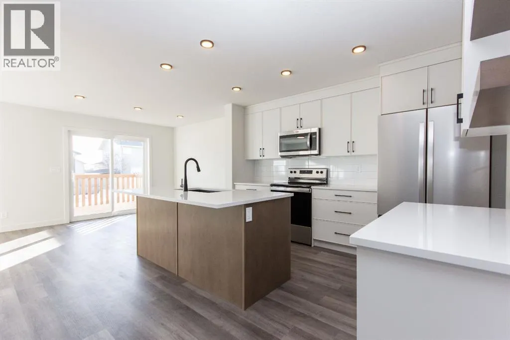Be the first owner of this brand new Laebon Home situated in the sought after neighbourhood of Beacon Hill, just steps from multiple parks, green spaces, and Beacon Hill Elementary! This stylish Paxton two storey floor plan offers 1707 square feet above grade, a wide open living space, large windows, 2nd floor laundry, and a large bonus room! The main floor features vinyl plank flooring throughout, and a beautiful kitchen offering two toned raised cabinetry, stainless steel appliances, quartz countertops, a large island with eating bar, and a large walk in pantry. The adjacent eating area has sliding patio doors that lead out to the deck. Head upstairs to find two nicely sized kids/spare rooms that share a large 4 pce bath, and a large master bedroom with its own private 4 pce ensuite and huge walk in closet. Laundry is conveniently located near the bedrooms, and the large and bright bonus room gives you additional living space to enjoy.The attached garage is insulated, drywalled, and taped. If you need more space, the builder can complete the basement development for you, and allowances can also be provided for a washer and dryer to make this a completely move in ready package. Poured concrete front driveway, front sod, and rear topsoil to grade are included in the price and will be completed as weather permits. 1 year builder warranty and 10 year Alberta New Home Warranty are included. Taxes have yet to be assessed. This home has an estimated completion date of May 2026. Photos and renderings are examples from a similar home built previously and do not necessarily reflect the exact finishes and colours used in this home. (id:27476)