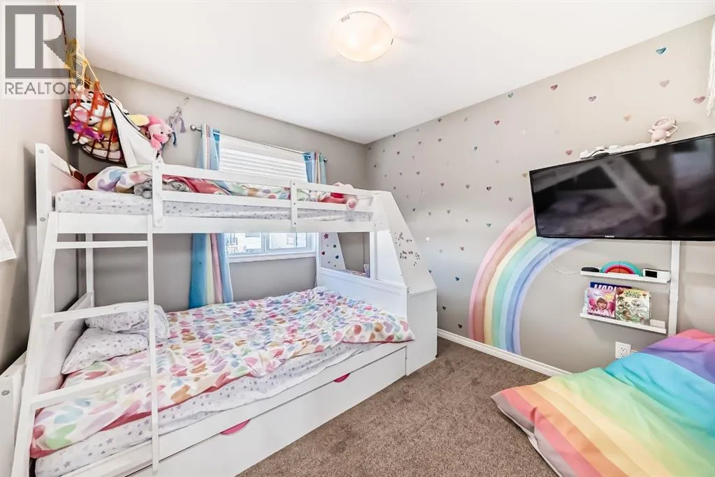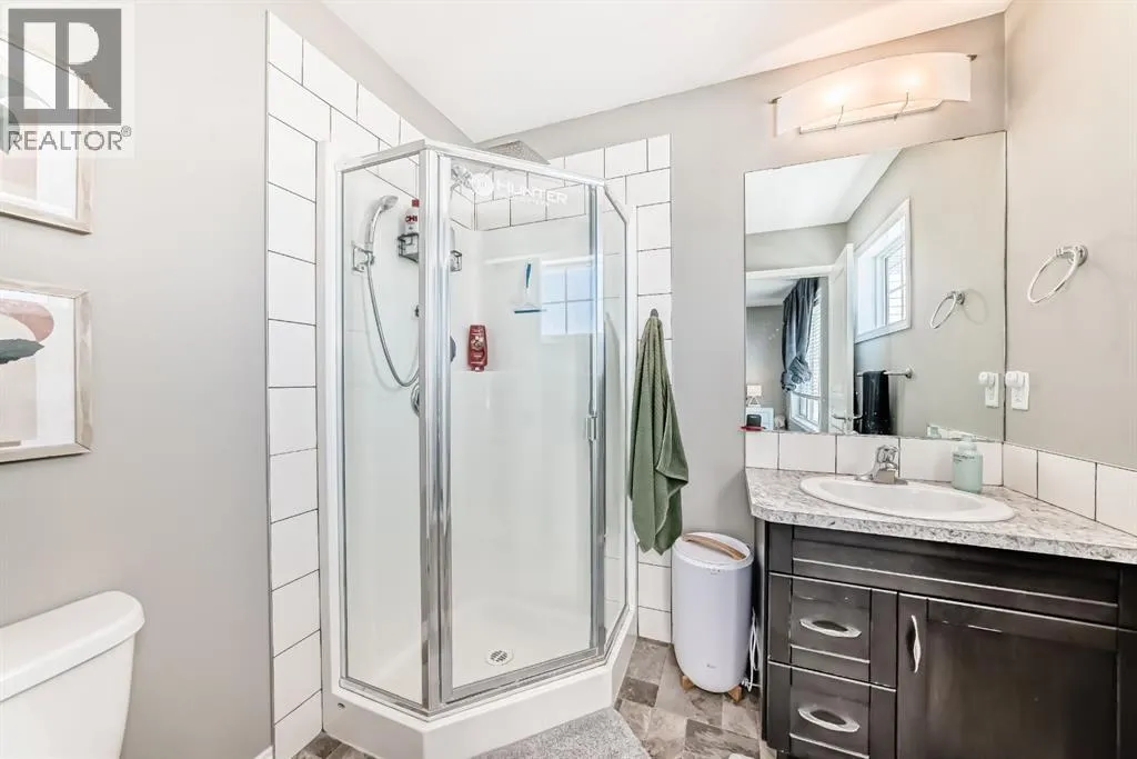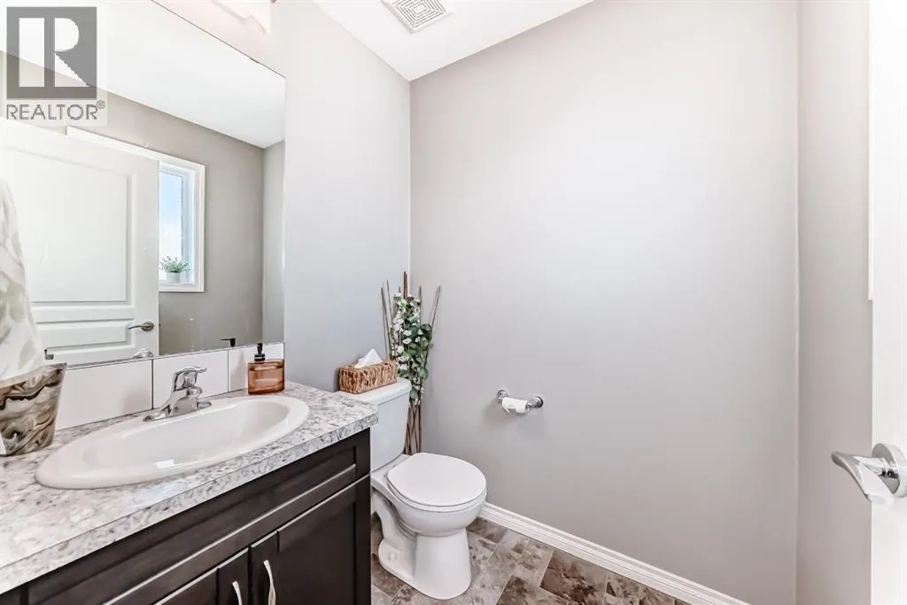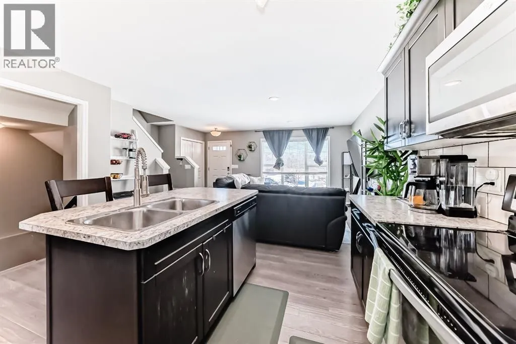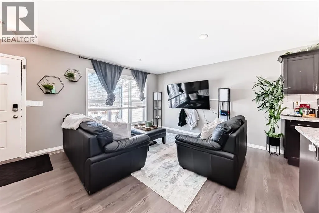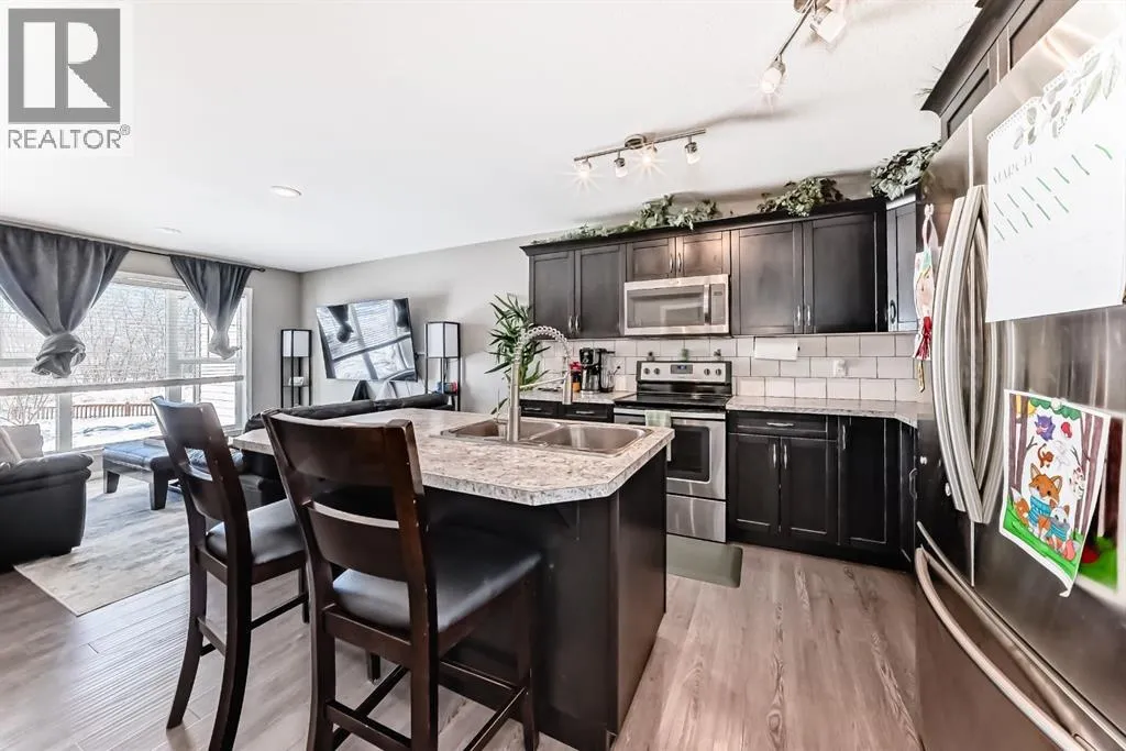 No condo fees! This fully developed townhouse offers excellent value for families, first-time buyers, or investors looking to add a solid property to their rental portfolio. Ideally situated within walking distance to the lake, this home provides the perfect combination of comfort, convenience, and lifestyle.Step inside to a bright, functional main floor with an open-concept layout designed for everyday living and entertaining. Durable laminate flooring runs throughout the main living space, creating a warm and inviting atmosphere. The spacious living room flows seamlessly into the kitchen and dining area, making it easy to host family and friends.The kitchen is both stylish and practical, showcasing dark cabinetry that provides ample storage, complemented by a fully white tile backsplash for a modern touch. A separate island adds valuable prep space and additional seating while expanding the already generous counter spaceâperfect for cooking, baking, or casual meals. The dining area is filled with natural light, and a half bathroom completes this floor. The back door leads to the rear deck, providing easy access to the backyard.Step outside to enjoy the backyard area, ideal for summer barbecues, relaxing evenings, or letting kids and pets play. The property also includes convenient off-street parking at the rear alley.The upper level features three well-sized bedrooms, including a spacious primary bedroom complete with its own private 3-piece ensuite. The additional bedrooms are perfect for children, guests, or a home office, and are serviced by a full bathroom on the upper level.The basement has been professionally developed, expanding the home's living space. Here you will find a large family room that can be used as a media room, play area, or secondary living space. This level also includes a fourth bedroom and a full 3-piece bathroom, making it an ideal setup for guests, teenagers, or extended family members.With its fully finished interior, functional floor plan, no condo fees, and desirable location close to the lake and outdoor recreation, this property offers outstanding flexibility and long-term value. Whether you're looking for a place to call home or a great investment opportunity, this townhouse is in a great location. (id:27476)