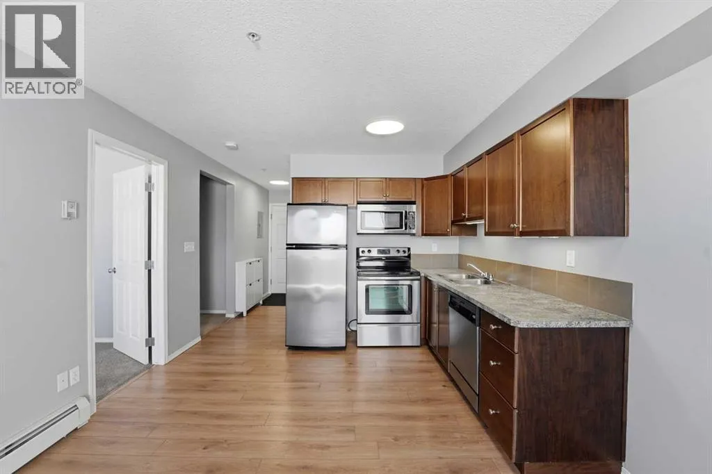 Affordable first-time home? Perfect space to downsize? Looking to add to your investment portfolio? Look no further!This 1-bedroom, 1-bathroom condo in the Axxess building is move-in ready! Freshly painted, carpets re-stretched, and in-unit laundry. The kitchen offers ample cabinets and counter space, flowing into a sun-filled dining area and a cozy west-facing balcony with views of the prairies and mountains.Enjoy a spacious bedroom, 4-piece bathroom, and a versatile den that can serve as a second bedroom, office, or extra living space. Building amenities include a gym and elevator, plus assigned outdoor parking. Affordable condo fees make this a smart financial choice!Just a short walk to Sylvan Lakeâs lakefrontâexperience life at its fullest! Conveniently located 20 minutes from Red Deer and close to Highway 11 for an easy commute. Donât miss this opportunity for comfortable, flexible living! (id:27476)