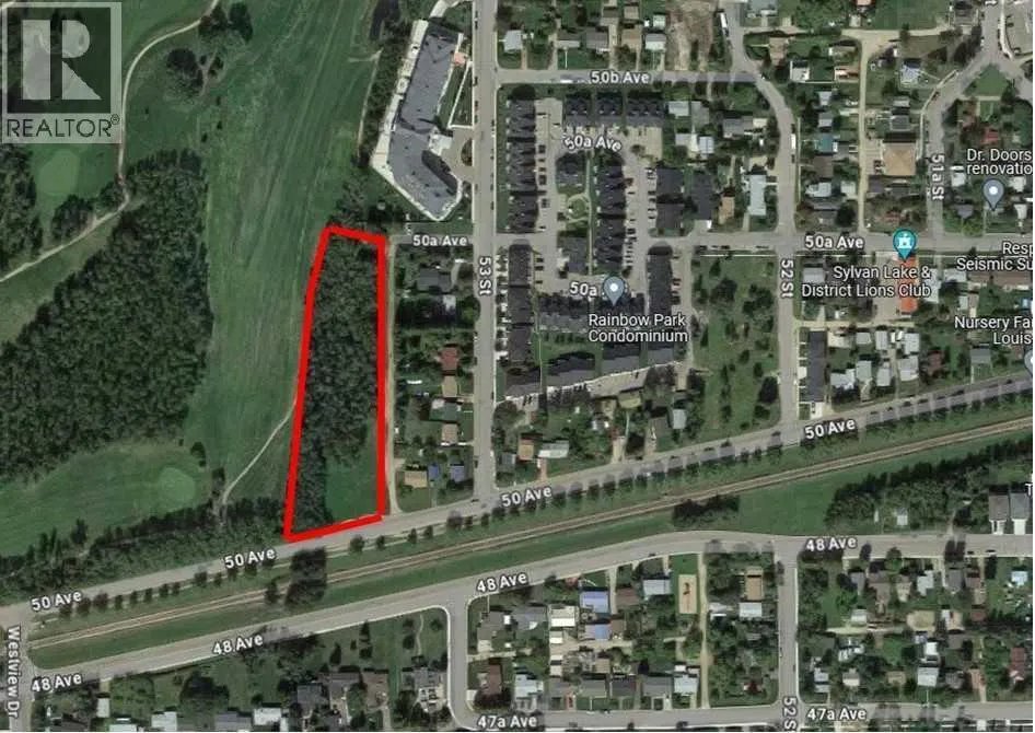 Development land with 600' of frontage on the picturesque Sylvan Lake Golf and Country Club and 220' fronting 50th Ave. Ideal for a condominium project, multi-family investment property or luxury townhomes. Property is just short walk to downtown and the beach. Zoned RWV - Residential Waterfront Village District - a highly sought-after area designed for year-round living, tourism, and recreation. The district is characterized by a mix of high-density residential, commercial amenities, and direct access to the lake, with ongoing, sustainable development aimed at creating a vibrant, walking-friendly hub. (id:27476)
