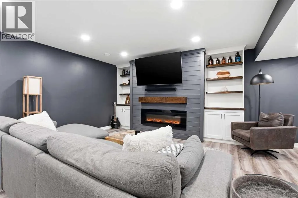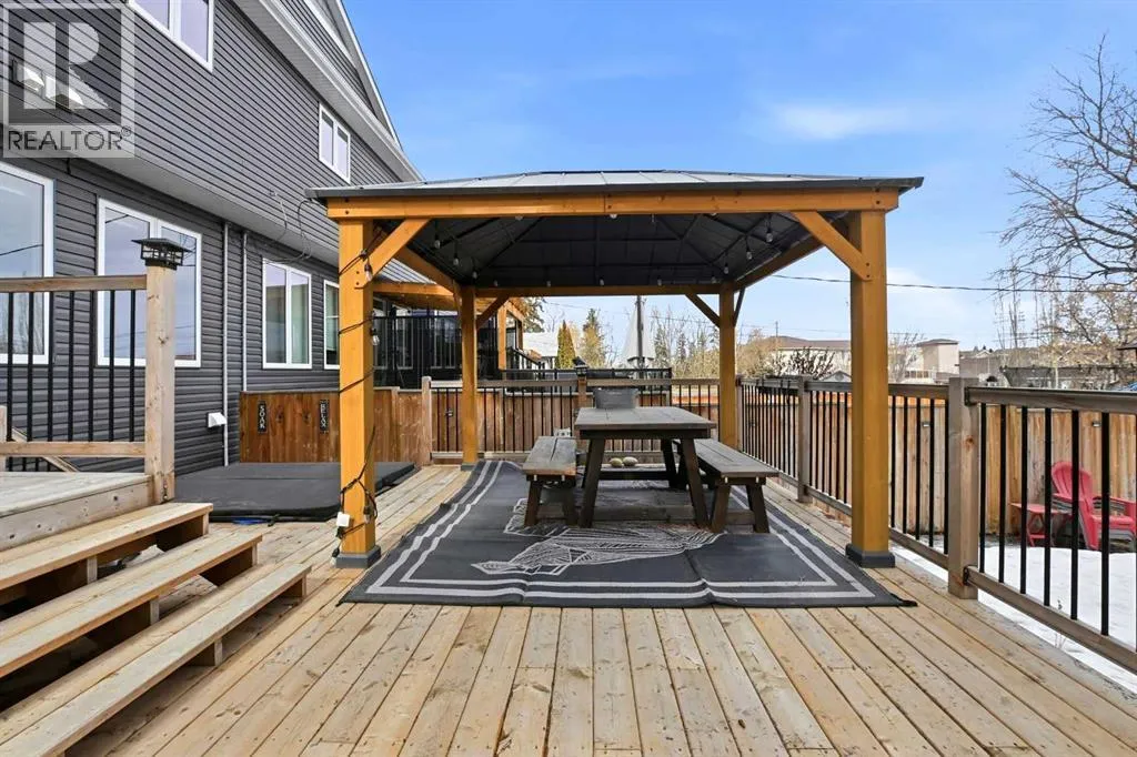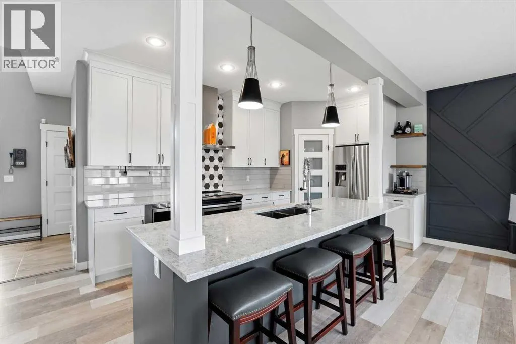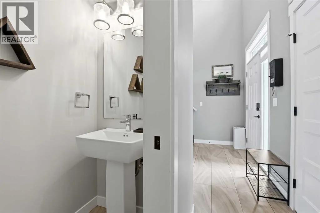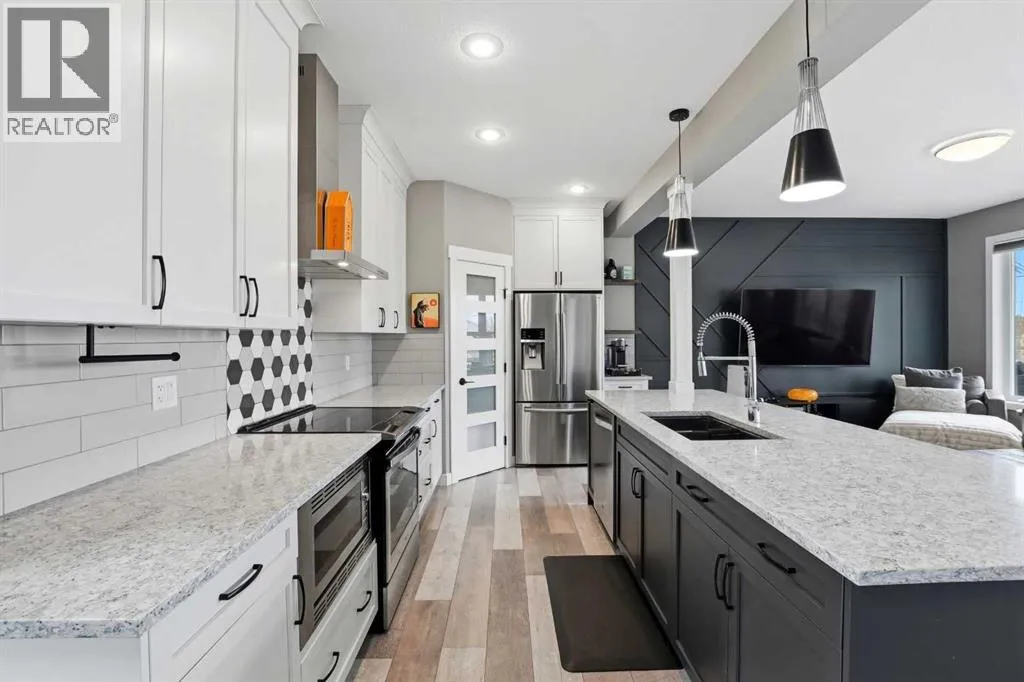 A former showhome that still shows like oneâthis fully finished home offers a bright, functional layout with high-end finishes and thoughtful upgrades throughout. The main floor welcomes you with an open concept design filled with natural light, creating an inviting space for both everyday living and entertaining. The kitchen is a true standout, featuring quartz countertops, stainless steel appliances, a black granite composite sink, and full-height cabinetry accented by a stylish backsplash and feature hood fan. The layout keeps you connected to the living and dining areas, making it ideal for hosting. Just off the attached garage, a spacious mudroom provides the perfect drop zone for busy households, complete with additional storage and a convenient powder room. Upstairs, youâll find three well-sized bedrooms, including a generous primary retreat with a walk-in closet and a beautifully appointed 5-piece ensuite. Dual vanities, a custom tiled walk-in shower with dual shower heads, a soaker tub, and under-cabinet lighting all come together to create a true spa-like experience. The added convenience of upper floor laundry makes day-to-day living that much easier. The fully developed basement is where this home really separates itselfâdesigned with entertaining in mind, it features a large rec room, custom built-ins with a feature wall and electric fireplace, and a full wet bar with plenty of storage. A 3-piece bathroom completes the space, making it perfect for guests or extended family. Additional highlights include central A/C, ICF foundation, water softener, in-floor heat rough-in, gas line for a BBQ and a high-efficiency furnace. Outside, the backyard offers a great balance of function and relaxation with a deck ideal for summer evenings, plus a mix of grass and low-maintenance landscaping. Double gates and alley access provide flexibility for RV, boat, or additional parking. Located close to schools, shopping, and everyday amenitiesâthis is a move-in ready home that checks all the boxes. (id:27476)