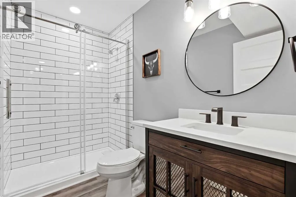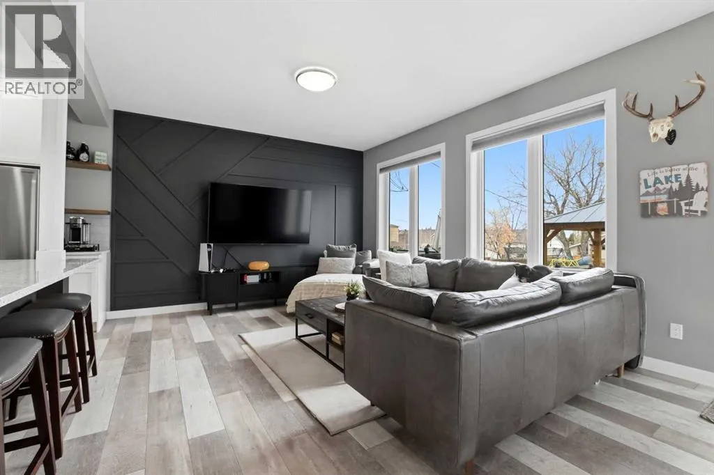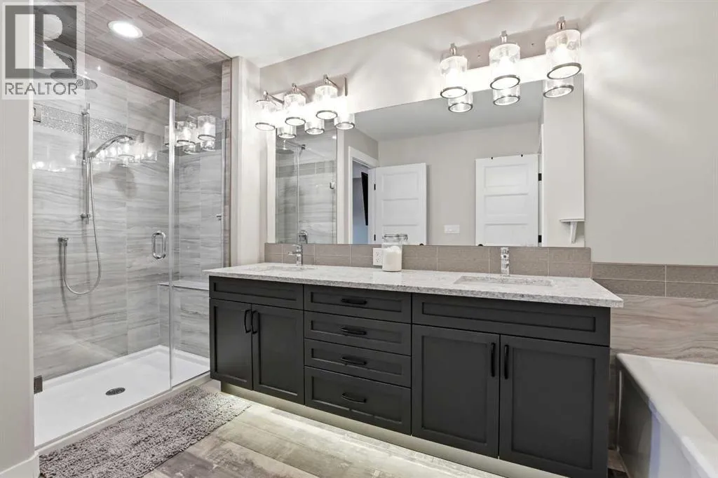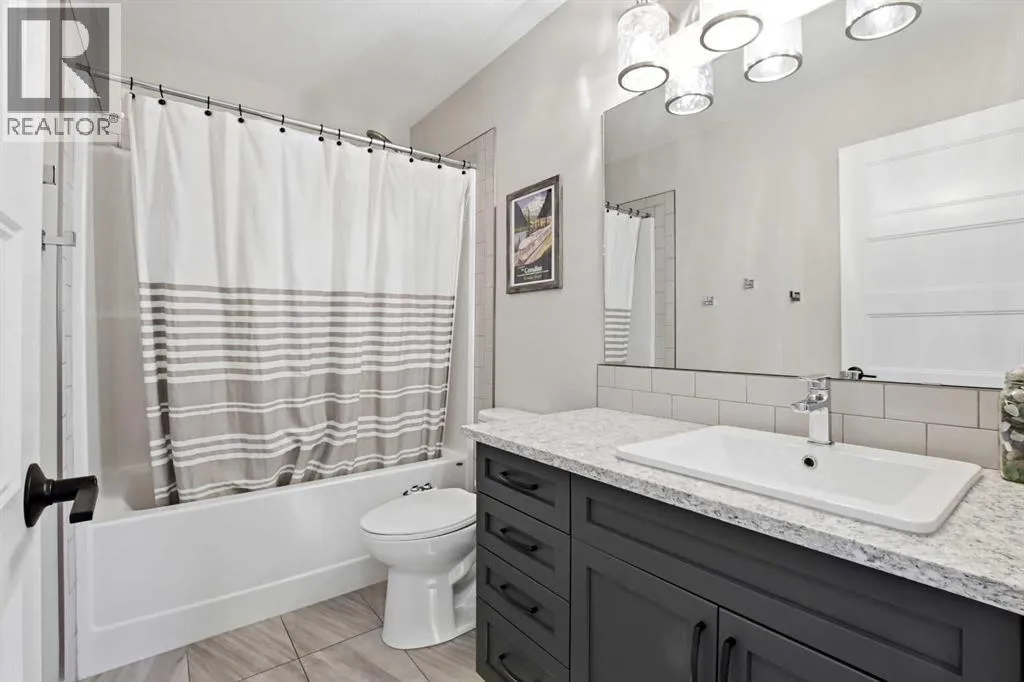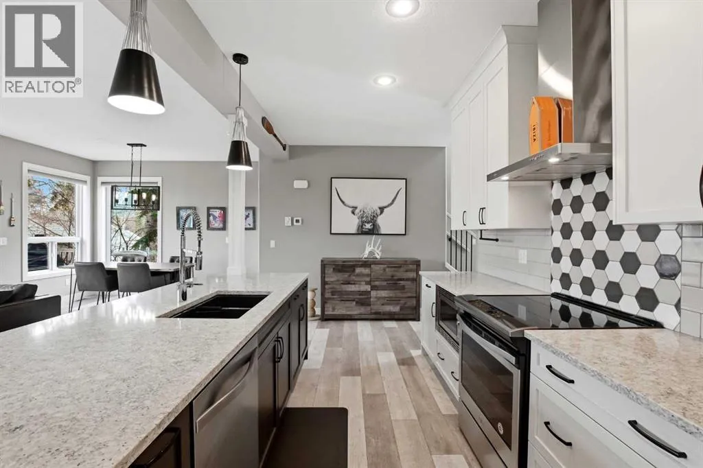A former showhome that still shows like oneâthis fully finished home offers a bright, functional layout with high-end finishes and thoughtful upgrades throughout. The main floor welcomes you with an open concept design filled with natural light, creating an inviting space for both everyday living and entertaining. The kitchen is a true standout, featuring quartz countertops, stainless steel appliances, a black granite composite sink, and full-height cabinetry accented by a stylish backsplash and feature hood fan. The layout keeps you connected to the living and dining areas, making it ideal for hosting. Just off the attached garage, a spacious mudroom provides the perfect drop zone for busy households, complete with additional storage and a convenient powder room. Upstairs, youâll find three well-sized bedrooms, including a generous primary retreat with a walk-in closet and a beautifully appointed 5-piece ensuite. Dual vanities, a custom tiled walk-in shower with dual shower heads, a soaker tub, and under-cabinet lighting all come together to create a true spa-like experience. The added convenience of upper floor laundry makes day-to-day living that much easier. The fully developed basement is where this home really separates itselfâdesigned with entertaining in mind, it features a large rec room, custom built-ins with a feature wall and electric fireplace, and a full wet bar with plenty of storage. A 3-piece bathroom completes the space, making it perfect for guests or extended family. Additional highlights include central A/C, ICF foundation, water softener, in-floor heat rough-in, gas line for a BBQ and a high-efficiency furnace. Outside, the backyard offers a great balance of function and relaxation with a deck ideal for summer evenings, plus a mix of grass and low-maintenance landscaping. Double gates and alley access provide flexibility for RV, boat, or additional parking. Located close to schools, shopping, and everyday amenitiesâthis is a move-in ready home that checks all the boxes. (id:27476)