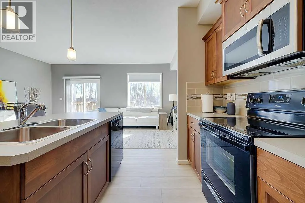 Located in the charming town of Sylvan Lake, this beautiful townhome in Newport Village offers a perfect blend of comfort and convenience. With 1,447 square feet of thoughtfully designed living space, this home features soaring 9-foot ceilings, a combination of durable vinyl plank flooring and cozy carpet, and an inviting open floor plan. The large south-facing rear windows provide an abundance of natural light and picturesque views of the serene treed area. The modern kitchen is equipped with a functional island, wood cabinets, and a pantry, making it ideal for cooking and entertaining. Upstairs, youâll find three spacious bedrooms, including a generously sized primary suite with a walk-in closet. The convenience of second-floor laundry adds to the homeâs appeal. The living room opens onto a back deck with a yard, offering a great space for relaxation. The unfinished basement presents an opportunity to customize to your needs. A one-car attached garage provides added convenience. Enjoy the benefits of professional management, which includes exterior maintenance, lawn care, and snow removal including walk-ways and driveway, allowing you more time to experience the lake and all the activities Sylvan Lake has to offer. This low-maintenance home is perfect for those seeking a balance of modern living and outdoor enjoyment.Pets no bigger than 18 inches at highest point.4o (id:27476)