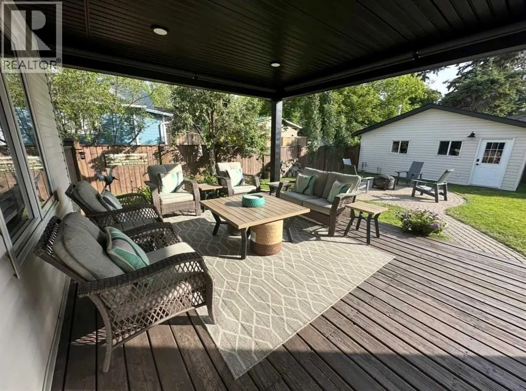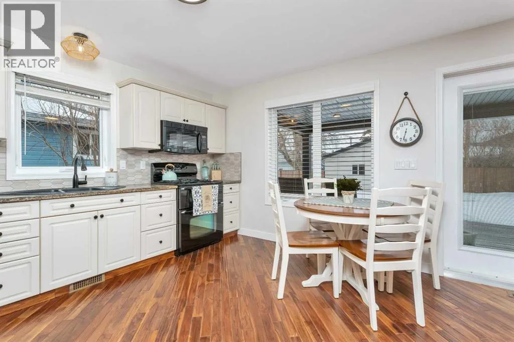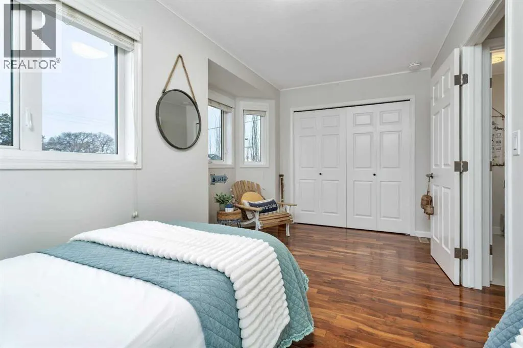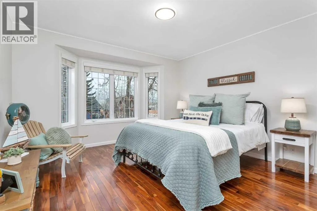 Introducing charm and charisma, this inviting cottage-style home offers the perfect blend of comfort and year-round living just half a block from the lake, where you can enjoy boating, paddle boarding, fishing, skating, and everything a vibrant resort town has to offer; this four-season destination truly delivers. Step inside to a dramatic two-story layout featuring a spacious and elegant living room ideal for entertaining or relaxing in a more formal setting, while the kitchen combines efficiency and style with granite countertops and sink, black appliances, a double gas oven, and an impressive floor-to-ceiling pantry and storage wall. The main floor is thoughtfully arranged with a conveniently located half bath for guests. Upstairs, the serene primary suite provides a private and comfortable retreat, complemented by a beautifully updated bathroom with distinctive tile work, while a second generously sized bedroom offers flexibility for family, guests, or a home office, along with a conveniently located laundry room; both bedrooms offer subtle views of the lake. Recent updates include fresh paint throughout including the garage, upgraded hardwood flooring, new vinyl tile, central air conditioning, and new shingles installed in 2022. Set on a private, park-like 45 by 125-foot lot, the outdoor space is perfect for entertaining with a covered, screened deck designed for an outdoor kitchen and BBQ area, as well as an interlocking patio ideal for a fire pit and gathering with friends and family. Additional features include a detached heated garage, extra parking for an RV or boat trailer, a hot tub hookup, and more, making this move-in-ready property an excellent choice for a summer getaway, full-time residence, or Airbnb investment in the heart of Sylvan Lake living. (id:27476)