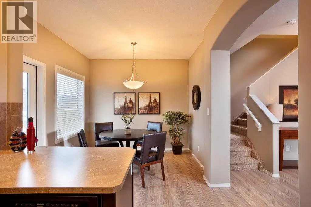 An INCREDIBLE OPPORTUNITY for a FIRST TIME BUYER or INVESTMENT PROPERTY! This two story end unit is situated in the sought after neighborhood of Ryders Ridge on an expansive corner lot. The location is ideal, park the car and walk to everything you need! Conveniently close to schools, shopping, and restaurants. The earth tone exterior is accented with stone work and a covered entrance. The single attached garage provides a cozy indoor parking spot. The home features a functional floor plan that flows beautifully. The large entry way leads to both the living room and the garage. The kitchen features modern cabinetry, peninsula sit-up bar, and a charming corner sink. Dine inside or step thru the garden door to enjoy the patio. The backyard is fully fenced for the kids and pets to safely play. Head upstairs to relax in the spacious primary bedroom, boasting a wonderful walk-in closet. Two additional bedrooms and a 4-piece bathroom complete this upper level. The basement awaits your finishing touches, but currently provides loads of storage space and the bathroom plumbing has been roughed in. Laundry is also located on this lower level. Come discover this RARE OPPORTUNITY! Take your tour today! Please Note: The photos are from a show suite are for illustrative purposes only. Actual units may vary in color selections, cabinetry, flooring, finishes. (id:27476)