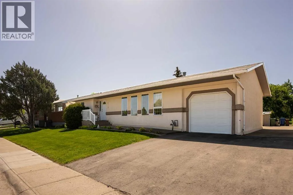 Location, Location, Location! This gem combines comfort, space, and unbeatable convenience, all wrapped in a picture-perfect setting backing directly onto the golf course! With 4 bedrooms, 3 bathrooms, and a layout designed for both function and flair. Step inside to discover a bright, open-concept kitchen and dining area featuring maple cabinets, a large island, and French doors that lead out to a covered patio with a pergola â the perfect place to relax and enjoy peaceful golf course views. Just off the dining space, the sunken living room offers warmth and character with built-in shelving and a cozy electric fireplace. The main floor also hosts a stunning primary suite complete with a jetted tub, stand-up shower, walk-in closet, and private water closet. Youâll also find a second bedroom, a two-piece bathroom, main floor laundry, and a handy mudroom that leads to a concrete pad â ideal for a future hot tub, basketball net, or outdoor hangout space. Downstairs, the partially finished basement expands your living space with a large rec room, two additional bedrooms, a full three-piece bath, and plenty of storage.An attached single-car garage and a large parking pad that fits up to four vehicles offer all the room you need for family and guests. Best of all? Youâre just steps away from everything! Enjoy walking distance to the golf course, hospital, Confederation Park, spray park, tennis courts, curling rink, hockey rink, swimming pool, baseball diamonds, skatepark, scenic walking paths, shopping, schools, and churches. This is more than a home â itâs a lifestyle. Donât miss your chance to own a one-of-a-kind property in an unbeatable location!*New hot water tank just installed! (June 2025) As well as new furnace and air conditioning (July 2025). (id:27476)