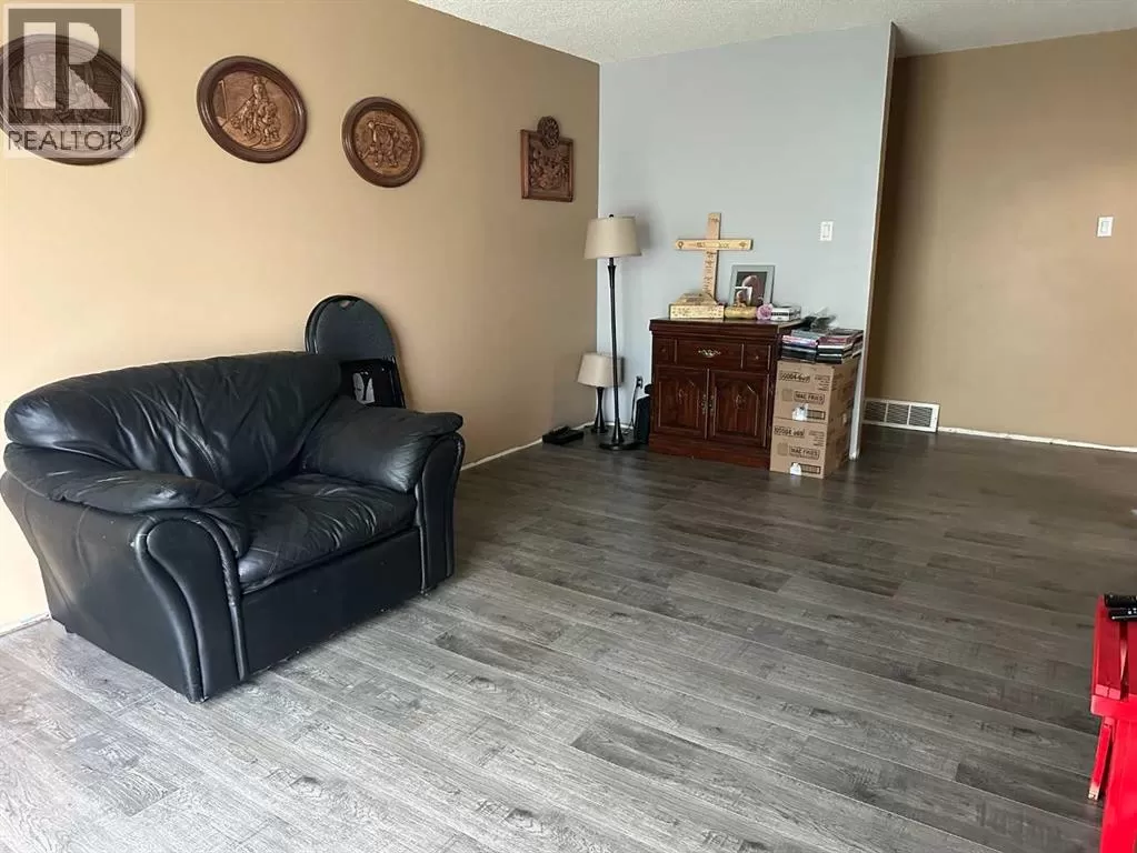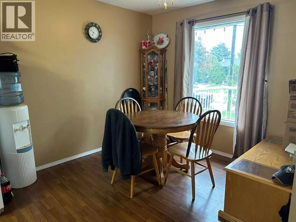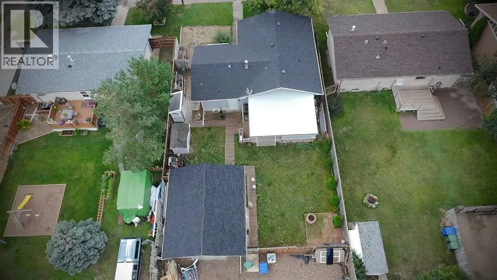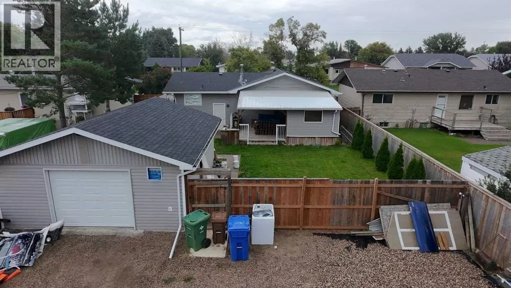 Great affordable family home. This bungalow hosts 3 bedrooms on the main floor, large eating area in the kitchen, nice separate living room and a 4 pc bath. The basement is finished and currently has one bedroom, however there is a large storage area that you could probably convert to another bedroom, plus a 3pc bath and a huge family room that the everyone can all gather in. Outside you will notice that not only is there a small front deck but also a covered deck overlooking the large back yard AND let's not forget the 20x24 garage. It's located a couple blocks north of schools and the mini mart. Plan to visit! (id:27476)