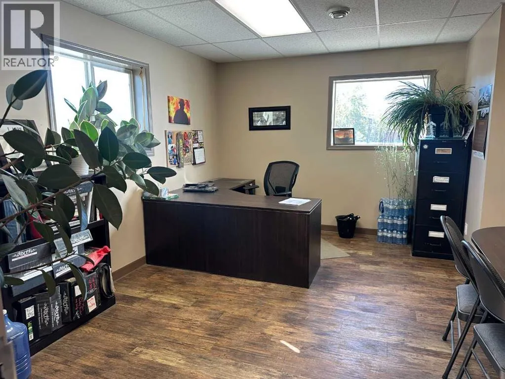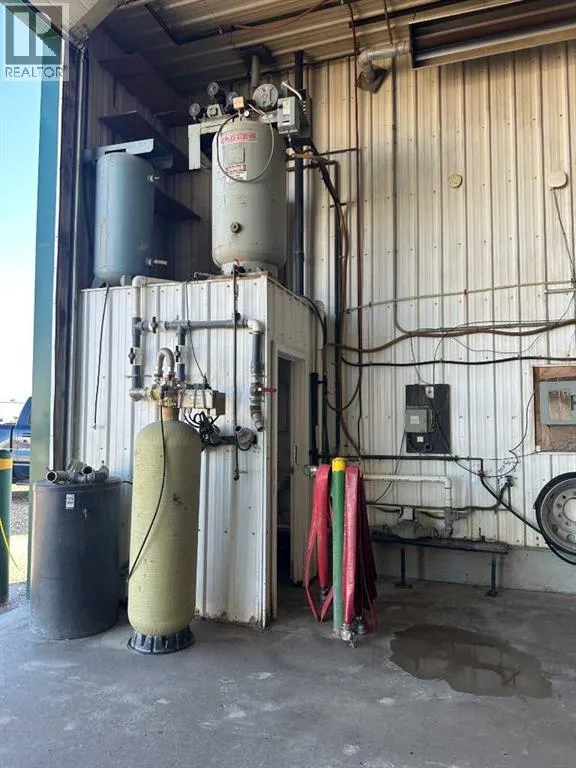 Looking for a home for your business? This metal clad shop is located in Taber's industrial area and sits on 1.08 acres so there is plenty of room for equipment and truck parking. The building itself is 4576 square feet with air conditioned office space(built in 2015) making up 576 sqft of that, 2 piece bathroom, 4- 18' tall x 16' wide overhead doors which gives the ability to pull directly through the shop. Also included is a 2" town water line, hotsy pressure washer and air compressor. For all your tools and extra parts there an additional cold storage space which is not included in the sqft on the north end measuring 12'x36'. This property has a lot to offer so if it suits your needs, see it today. (id:27476)
