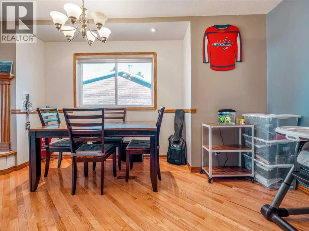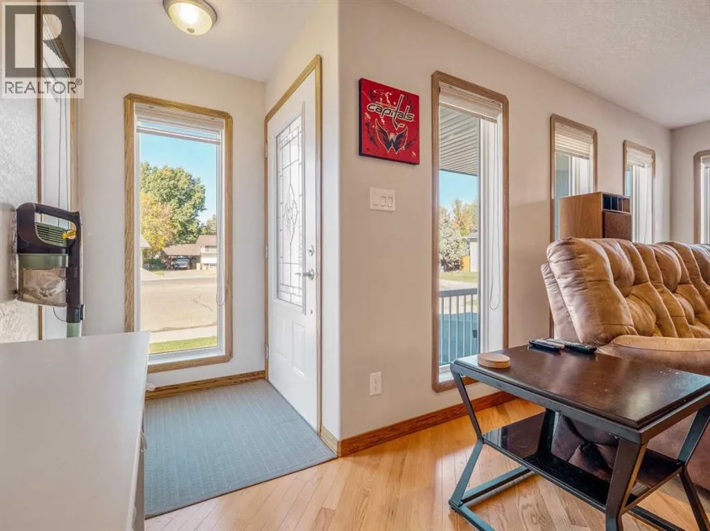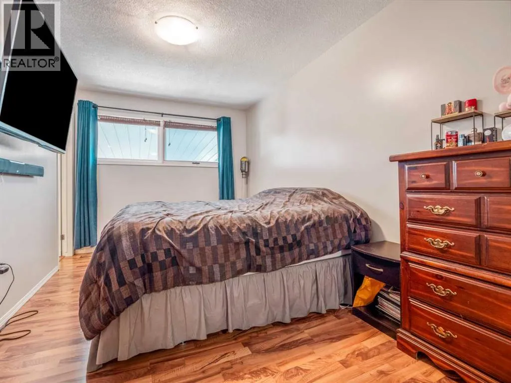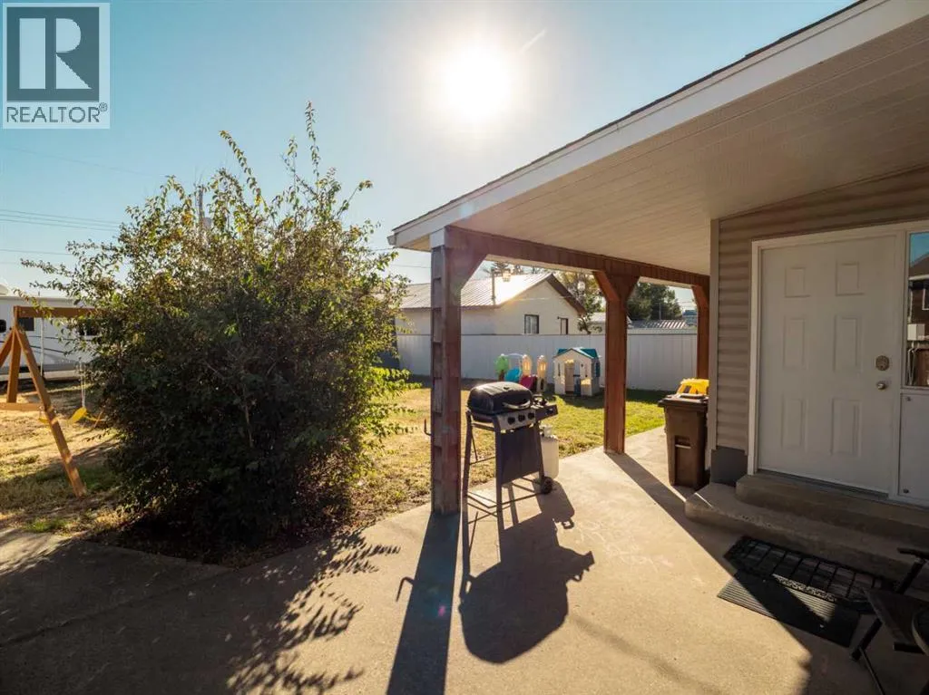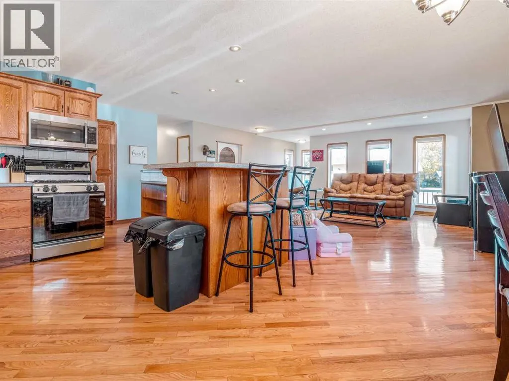 This well-maintained bungalow is perfectly located in a peaceful cul-de-sac and offers great curb appeal with new front-yard sod, a fully fenced backyard, and ample RV parking. The double detached garage has brand new shingles installed. Inside, hardwood floors flow through the open-concept main level, featuring a cozy wood-burning fireplace in the living room, a spacious kitchen that features a kitchen island with abundant counter space, ample cabinetry, and a convenient breakfast bar and a bright dining area. The large mud porch provides convenient storage and everyday functionality. The main floor also includes two comfortable bedrooms and a stylish five-piece Jack-and-Jill bathroom with access from both the primary bedroom and hallway. The fully finished basement adds a large family room, an additional bedroom, and a three-piece bathroomâperfect for guests or extra living space. Enjoy outdoor living under the covered patio with a privacy wall, ideal for relaxing or entertaining. This home combines comfort, charm, and convenience in an excellent location! (id:27476)