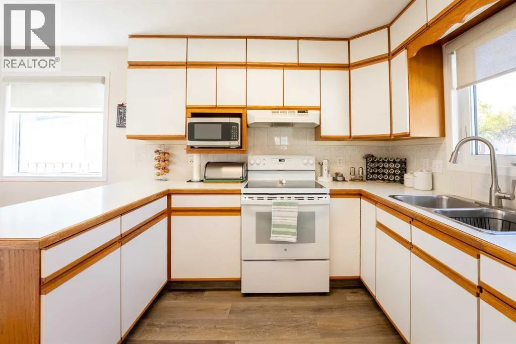 Immaculate 4-Bedroom Bungalow with Single Attached GarageThis bright and spacious bungalow offers 4 bedrooms and 2 full bathrooms, thoughtfully updated and meticulously maintained. The main floor features vinyl flooring, Hunter Douglas blinds throughout, and modern kitchen drawers with convenient bottom pull-outs. Appliances are practically new, fridge, washer and dryer (6 months), stove (5 years).Downstairs, the finished basement (2020) adds generous living space with new carpet, a new shower, walk-in closet in the primary room, and ample storage. Recent updates include all upstairs windows replaced (4 yrs ago), new toilets (Dec 2024 & basement Oct 2024), HWT (April 2024), new wiring and panel, Pex plumbing, and most lights, switches, and door handles replaced.Enjoy a partial wrap-around deck, a large yard with RV parking, and room to build your dream double detached garage. Conveniently located within walking distance to schools and shopping, this home combines functionality, comfort, and charm with huge closets, abundant storage, and move-in-ready appeal. (id:27476)