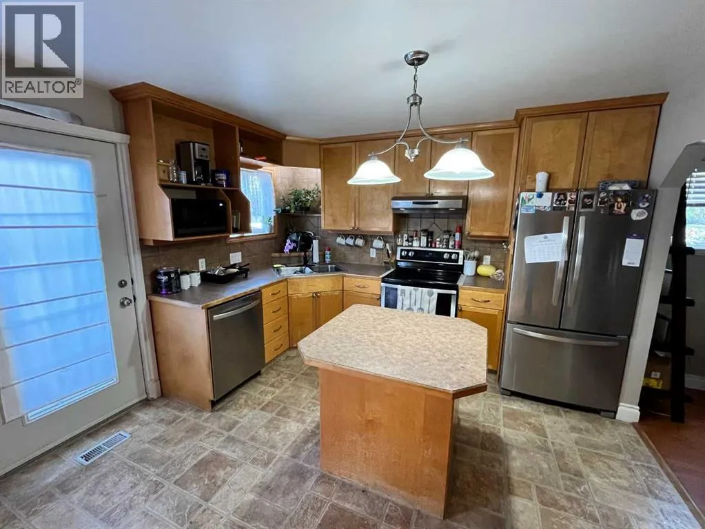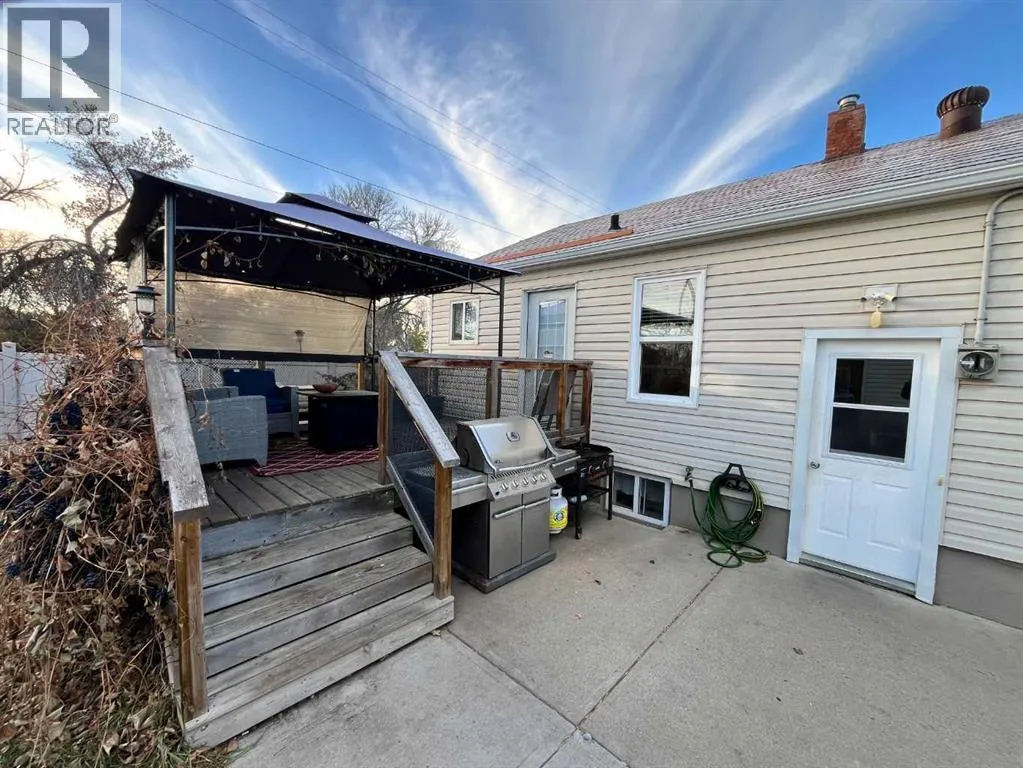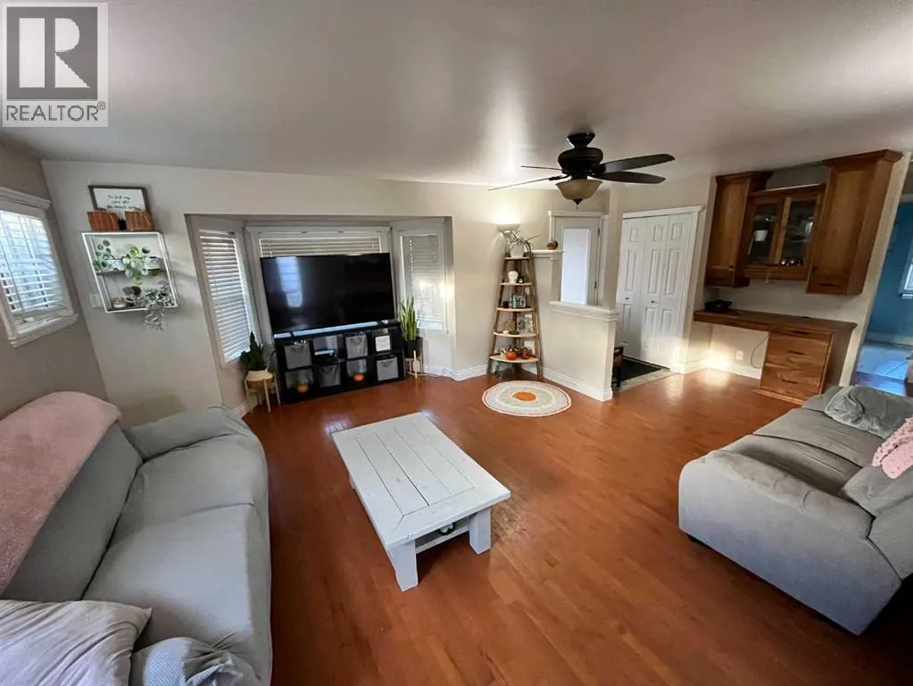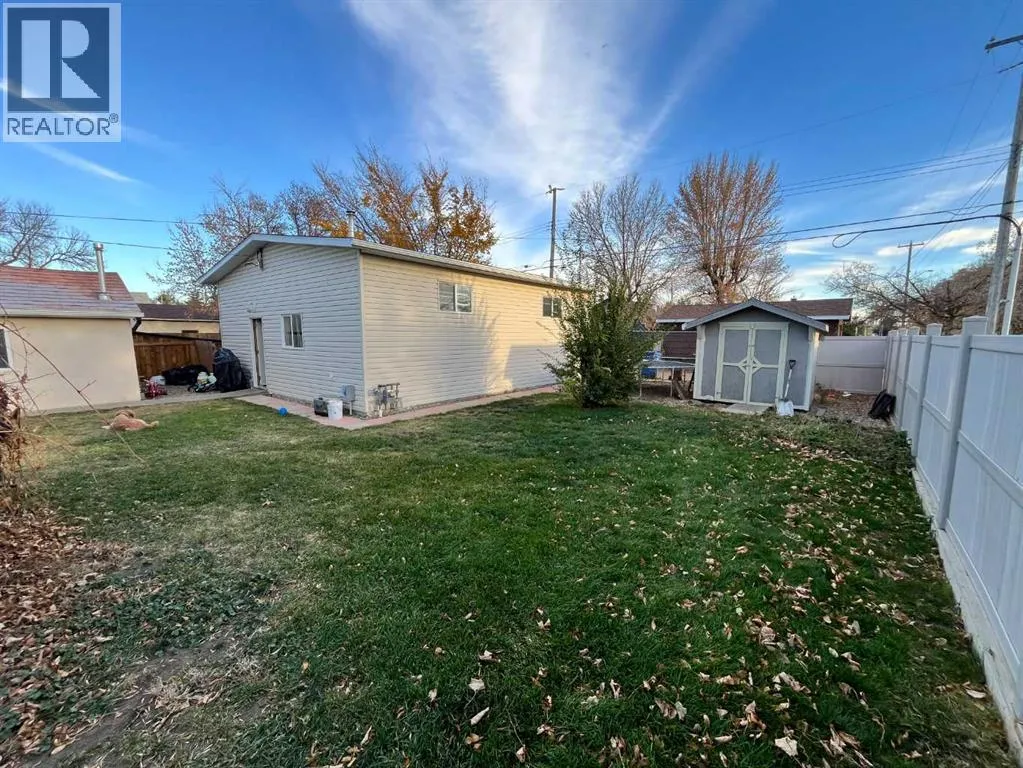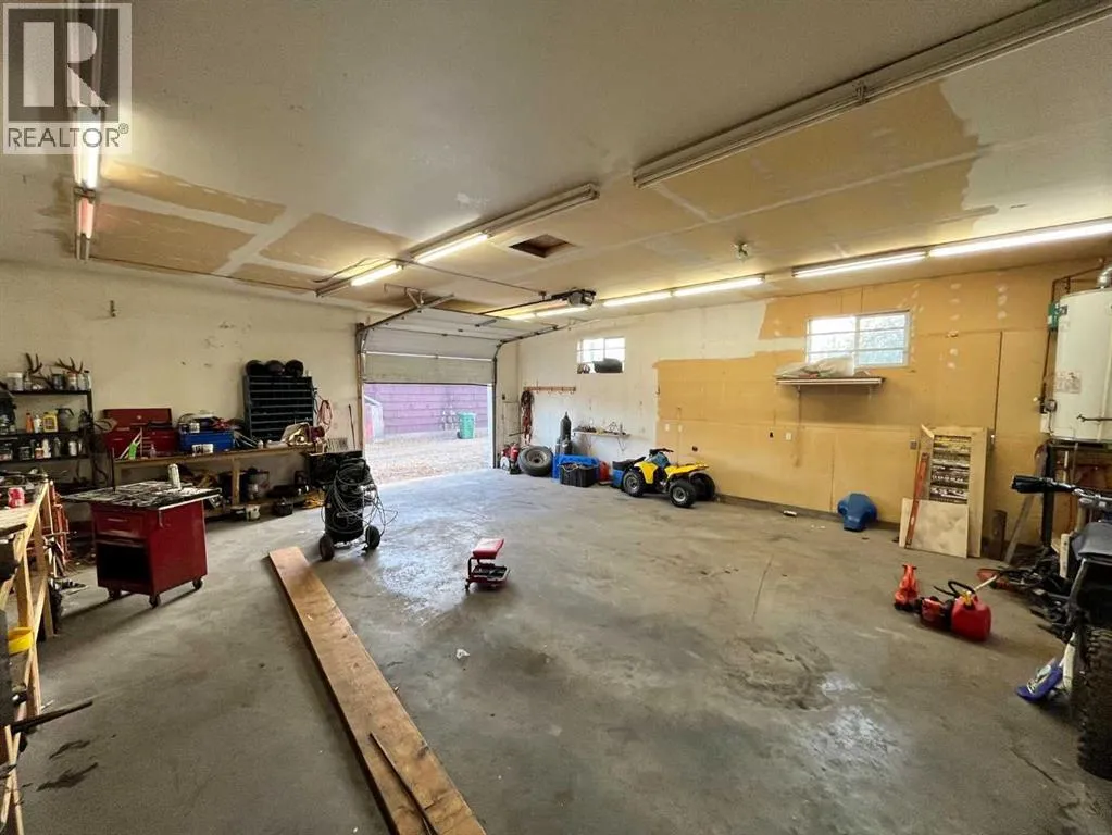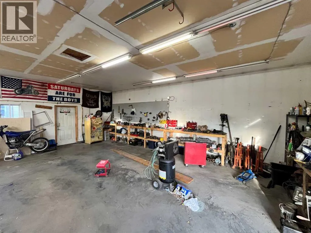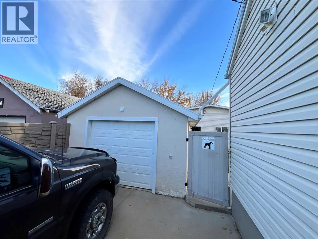 Donât miss this unique opportunity to own a beautifully maintained 973 sq ft home situated on 2.5 lots! This 4-bedroom home offers a functional layout with hardwood flooring on the main level and a private primary master bedroom with an suite bathroom located in the finished basement.Enjoy outdoor living with underground sprinklers in both the front and back yards, all enclosed by a low-maintenance vinyl fenceâperfect for pets, kids, or entertaining.Additional features include a single detached heated garage with a studio space, ideal for a home office or creative retreat, plus a massive 28â x 32â shop with in-floor heatâa dream setup for hobbyists, mechanics, or anyone needing extra space and functionality. (id:27476)