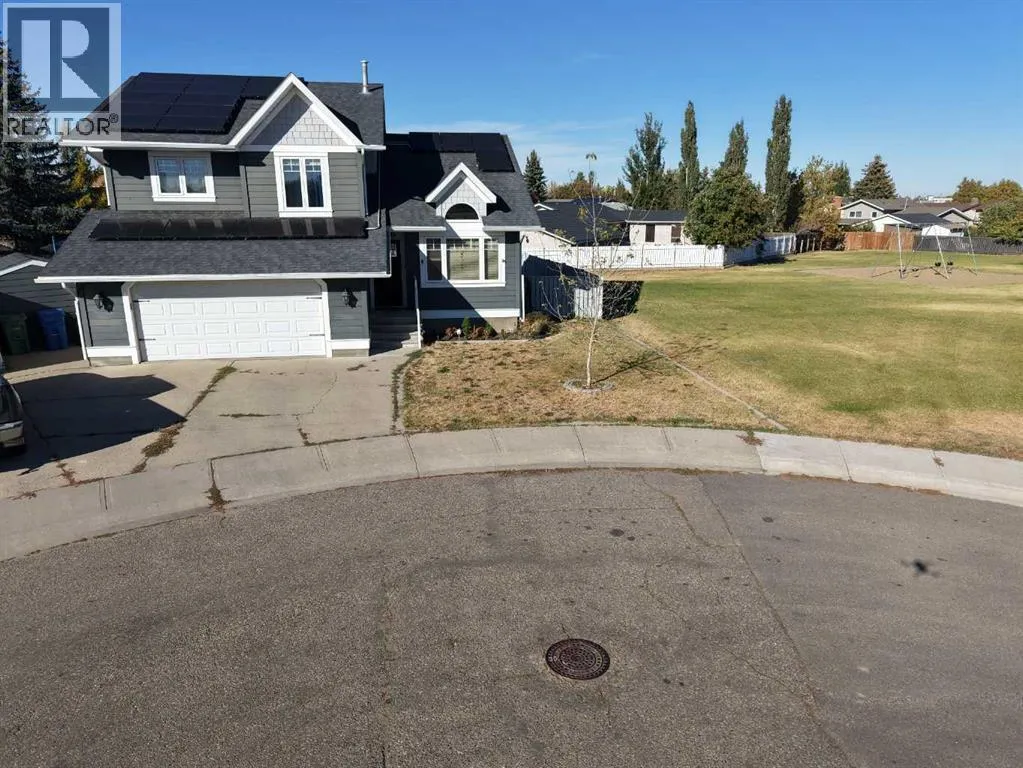 Beautiful spacious family friendly home in a quiet cul de sac ! Fully landscaped heritage style home that borders greenspace and a park which is a huge bonus for the family ...Extra space you don't have to maintain ! 6 bed 3 bath home, has tons of space for everyone, spacious kitchen with vaulted ceilings, pantry and eat up island, and continues down to the large family living room/games area/dining area...This space can go so many ways. Tons of natural light, and a gas fireplace for winter home time. 3 spacious bedrooms upstairs including the Main Bedroom which also has an en-suite for convenience. The basement is complete with another two bedrooms, and one having their own en-suite, so a nice space for visiting family, or an older child to have their own space. as a bonus there is tons of room for cold storage and just storage itself throughout the home. The home also has $31,000 worth of solar panels which contributes to lower energy costs. Attached double garage, and backyard has a garden area, firepit area, as well as a covered (roofed in) area for those family gatherings, and as an extra bonus...The side fence has double gates and a concrete pad to store an RV if needed, or a basketball court, or pool...The possibilities are endless ~ (id:27476)