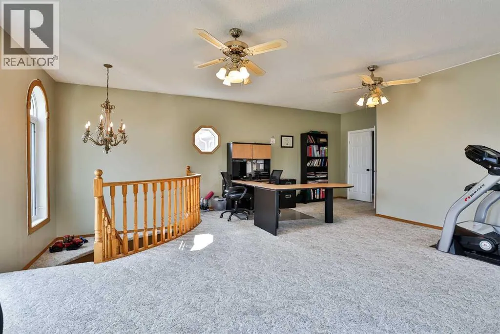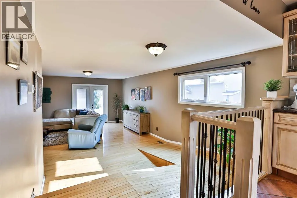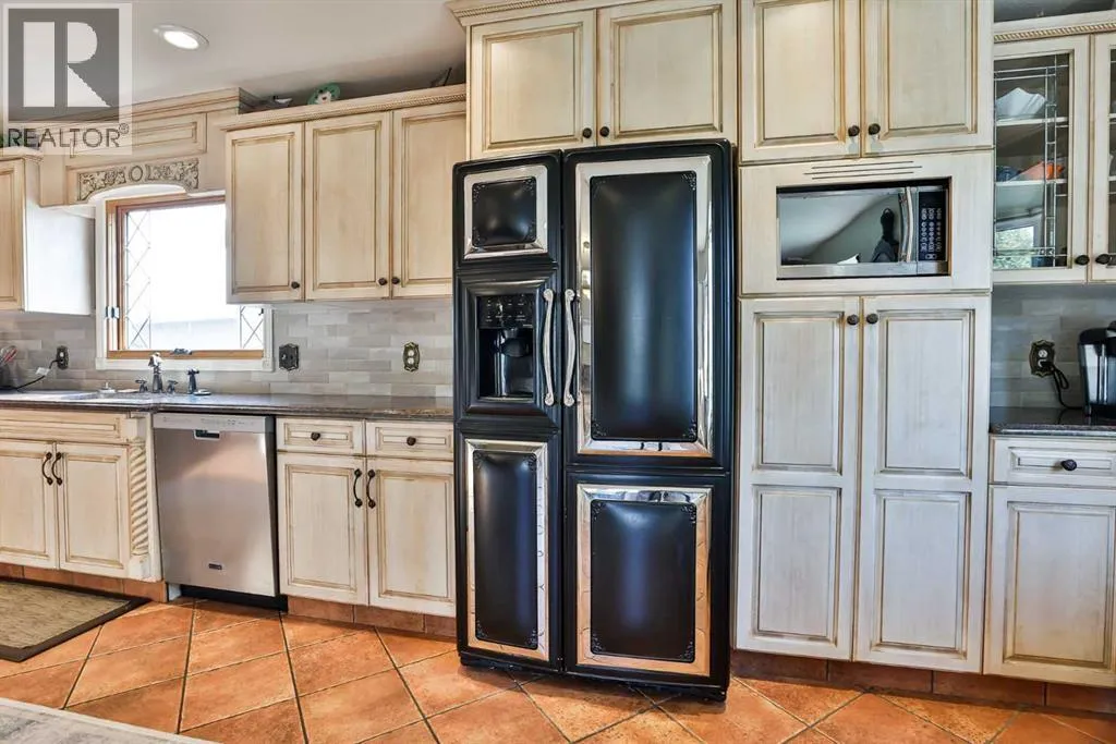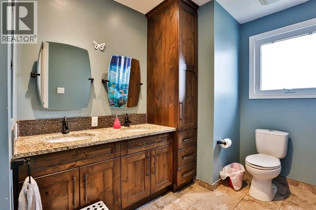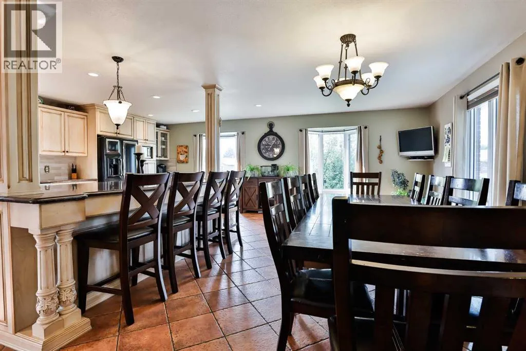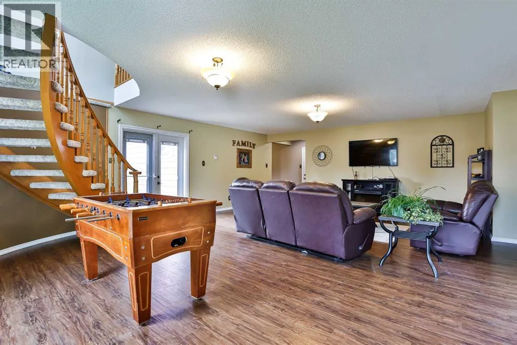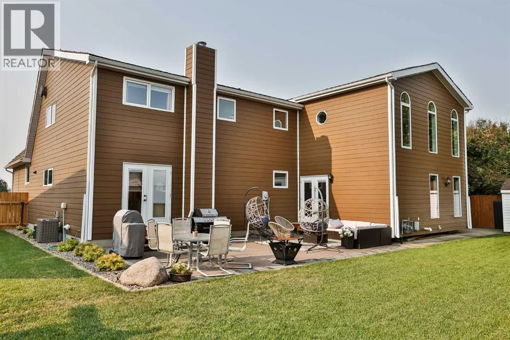 It's not often that a truly UNIQUE property comes on the market and in such a great LOCATION as this one!!! Tucked away in a cul-de-sac on 46A street in Taber is this beautiful family home. This two storey home is over 4,000 square feet and designed with a bustling family in mind. Enter into a large front entrance with built in cupboards for school backpacks, shoes, coats or even board games. From there you can head into the open kitchen/dining areas for all the entertainment and meals of the day featuring light colour cabinets and large windows for plenty of light. Ample kitchen cabinets line the walls and make up a large island with granite counter tops for kneading dough or eating buffet style. Sit and relax in the seating area just off the kitchen with built in cabinets and electric fireplace. Down the hall from there you'll find the laundry, conveniently located for you as well as a 2 pc bathroom and access to the attached heated garage. A spacious living room with access to the beautifully landscaped yard and spiral staircase to the upper floor, is located at the rear of the home. Another staircase to the impressive upper floor can be found just off the kitchen as well. The second floor features an impressive primary suite with walk in closet, 2 more closets, well lit sitting areas and a 5pc en-suite to soak away your day in the corner tub. Granite counter tops, dual sinks and glass shower are a few more bonuses in the en suite. From there you can head out to the bonus room which makes a great office/workout area or go down the hall to another neat room with sitting space or games area that leads into an even larger room that could be a bedroom or a movie room. You'll find 2 more bedrooms and another 5pc bathroom upstairs as well. Older kids will enjoy the basement which hosts 2 more spacious bedrooms with walk in closets, a rumpus room, 3 pc bathroom and storage room that'll leave you planning for all kinds of things. There are 3 furnaces, 2 wat er tanks and 2 A/C units to keep you comfortable ALL year round. Enjoying the yard with your family, friends or for entertainment purposes is something you'll want to do in this impressive cared for yard that has the help of under ground sprinklers. The list goes on and on with this large home you can't help but admire. If you're looking for space, look NO further! Plan to visit soon. (id:27476)