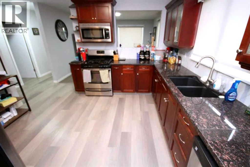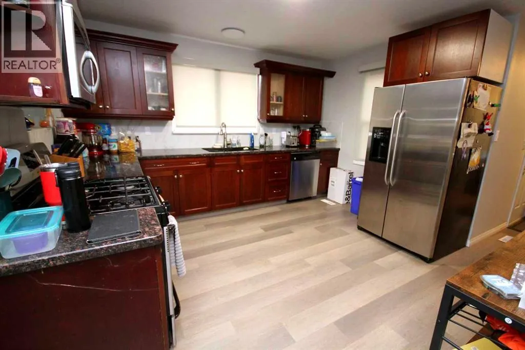 This delightful home is an ideal choice for first-time buyers or investors looking for a reliable rental property. With its numerous modern upgrades, this residence offers both comfort and functionality. The home is wheelchair accessible at the front entrance, ensuring ease of access for all residents and guests. A sturdy metal roof provides durability and low maintenance, making this home a sound investment. The newly installed front door adds a fresh touch. The exterior is landscaped, providing a pleasant outdoor space. The updated kitchen boasts granite countertops, providing a stylish and functional space for cooking and entertaining. New blinds and lighting fixtures add to the homeâs contemporary feel. Two comfortable bedrooms are conveniently located on the main floor. Fresh flooring throughout the home adds a modern touch and enhances the overall aesthetic. Newly painted interiors create a welcoming atmosphere. The basement features a summer kitchen, perfect for entertaining or additional cooking space, along with a newer furnace. The property is equipped with 100 amp service, accommodating modern electrical needs. Located near schools and playgrounds, this home is perfect for families looking for convenience and community.This property is a fantastic starter home or a lucrative rental opportunity. Donât miss the chance to own a home that offers both comfort and convenience in a desirable location! (id:27476)