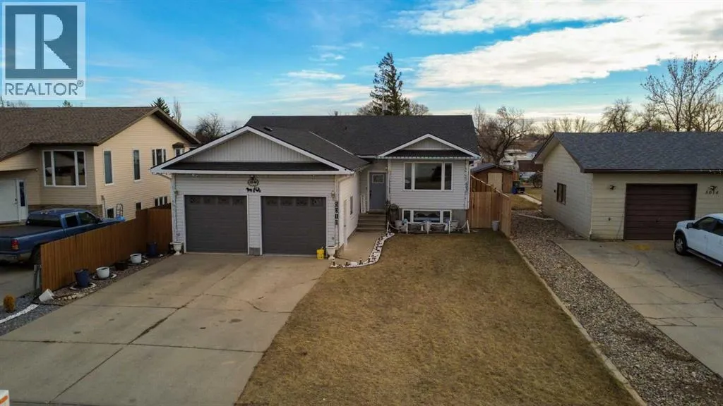 This Taber bungalow home has an excellent layout and plenty of space for the whole family! Featuring five bedrooms, three bathrooms, a finished basement, recent renovations including furnace and air conditioning, and an attached double garage finished with flooring and lighting, this home is ideal for any family wanting space to explore hobbies and enjoy quality time together. Step inside and you'll enter into a cheerful living room with large front windows and high ceilings. Further back, the open-concept kitchen and dining area features plenty of counter and cupboard space and access to the rear deck to make summer entertaining a breeze. Down the hall, two bedrooms and a four-piece bath can be found nearby to the primary bedroom which includes a three-piece ensuite bath. Downstairs, you'll find a large rec room alongside three bedrooms, a three-piece bath, a walk-in closet, and a convenient storage room. The double attached garage has been fully finished with shelf storage and tile flooring, adding to the space available to set up a play space, games room, or store tools and recreation equipment. Out on the spacious back deck, stairs lead down to a firepit, rear lawn, and shed storage so you can enjoy warm summer nights hosting friends and family. If a bungalow home with a functional layout in a quiet neighborhood sounds like the place for you, give your REALTOR® a call and book a showing today! (id:27476)