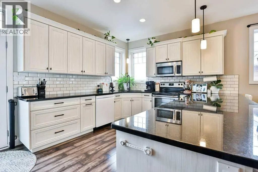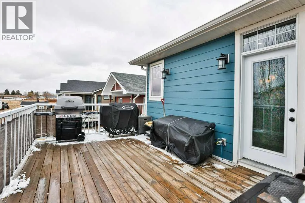 Don't wait! This 1247 sqft bungalow is located in Taber's Westview Estates, just steps from a walking path, the golf course and the hospital. As you enter the home, you'll notice the bright openness starting with the large entrance that has access to the heated garage. Moving upstairs to the smooth flowing main floor where the heart of the home is, the kitchen. With plenty of light colored cabinetry, dark granite counter tops and a pantry for all the extras. Opening up to the dining and living room areas make entertaining simple. Around the corner is the primary bedroom with tray ceiling, large windows for natural light, access to the back deck, a 4 pc en-suite and walk in closet. A second bedroom and another full bathroom complete the main level. Downstairs is a family room with high ceilings allowing for large windows, 3 bedrooms and a third 4pc bathroom. To top it off, this home has the extras like a dog run, A/C, built in exterior LED lights, deep bedroom closets, underground sprinklers in the front and back, a gas fireplace, built in sprinkler system, fenced yard with trees and it's all in a great neighbourhood. (id:27476)