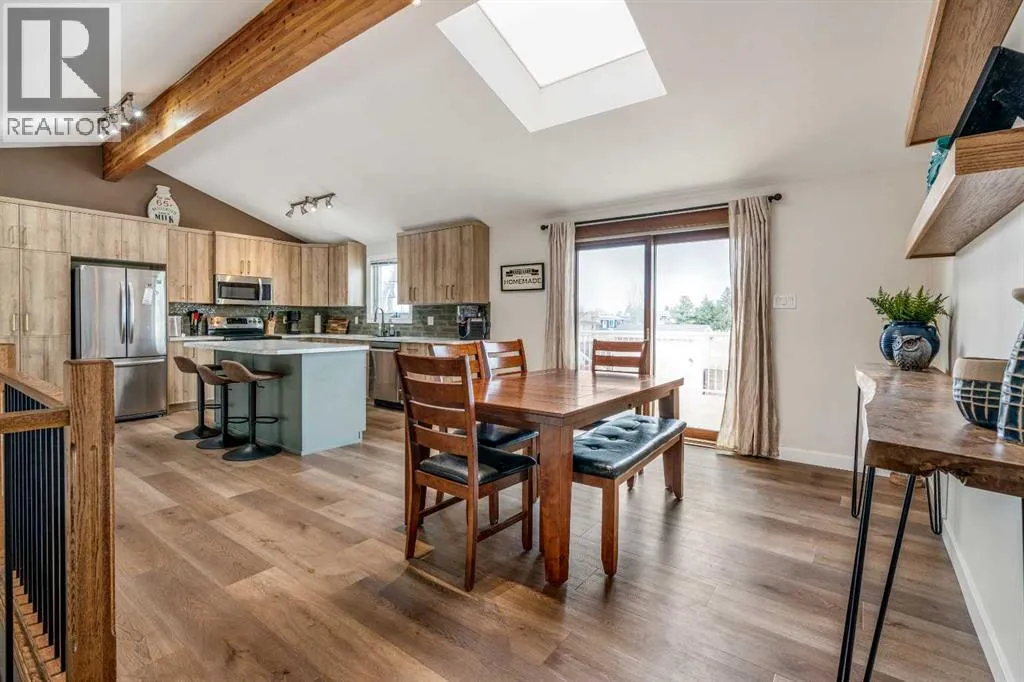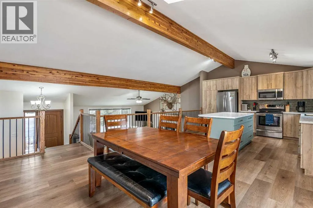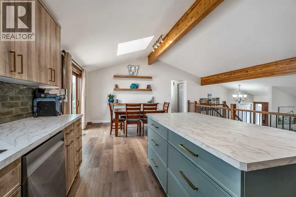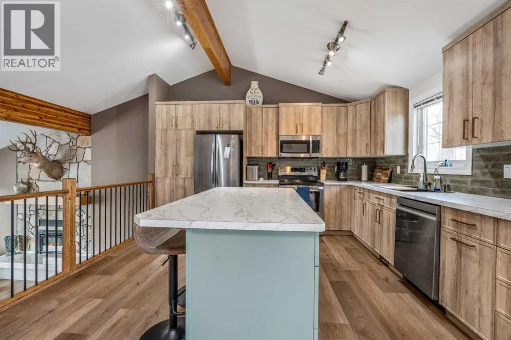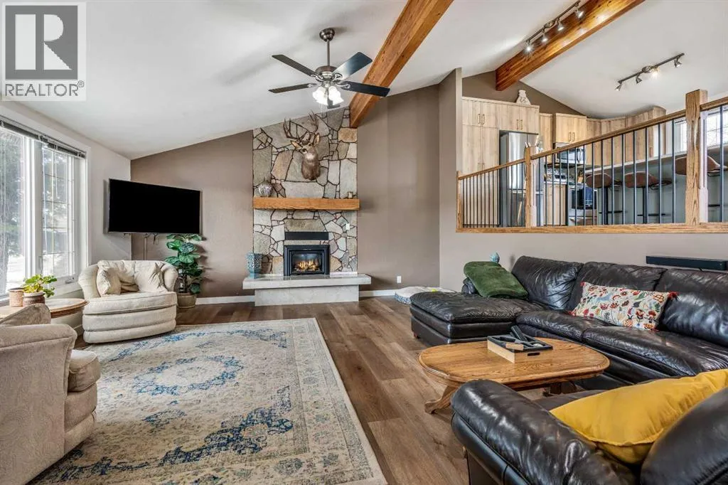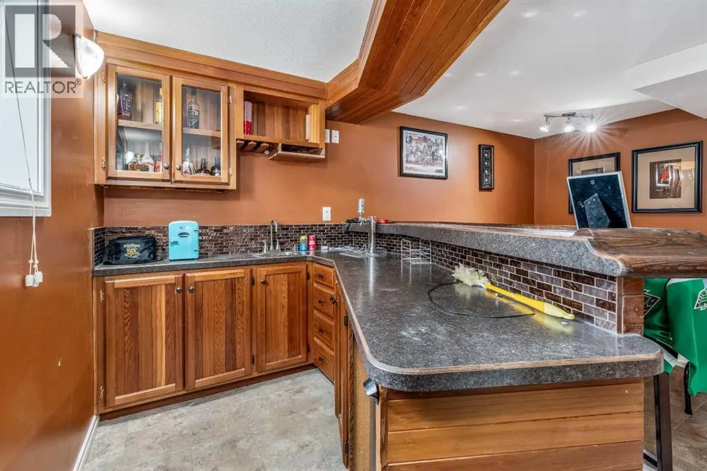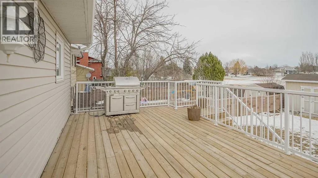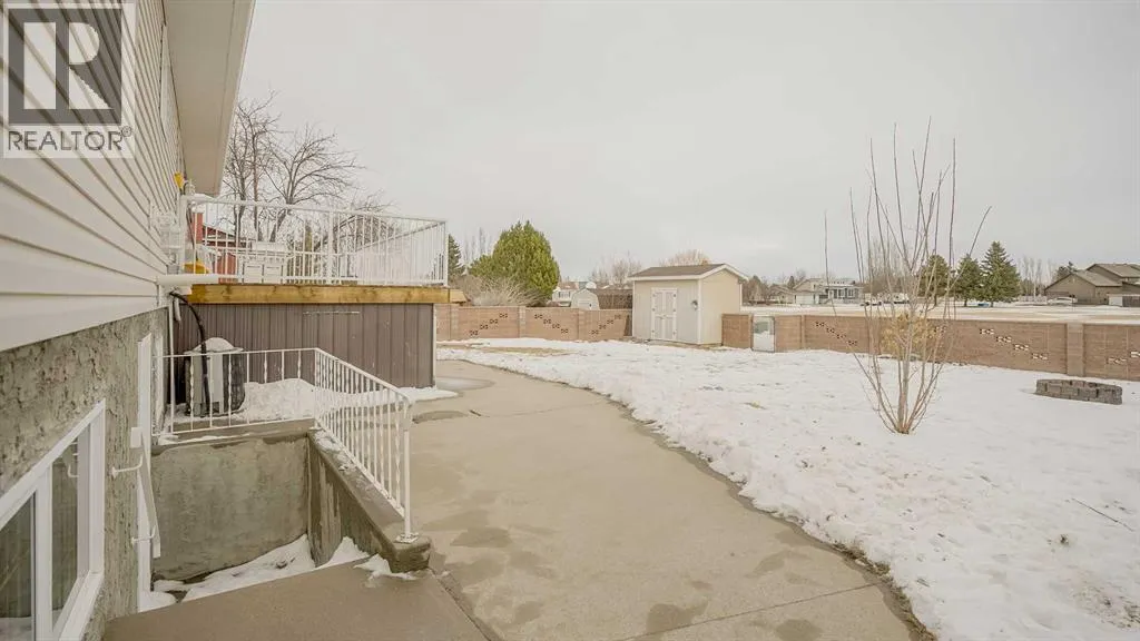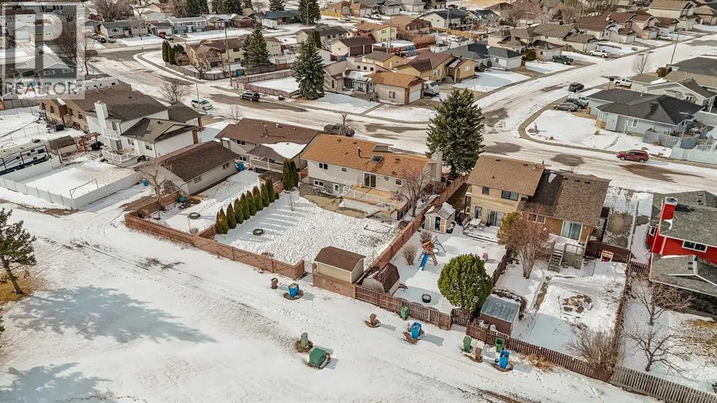 If youâve been waiting for a home with space, personality, and zero backyard neighbors â this is it.Tucked onto a quiet street in Taber, backing onto a large green space, this 1,567 sq ft 4-level split delivers something rare: room to host, room to grow, and room to breathe.Letâs start where the memories are made.The lower level is an entertainerâs dream. A dedicated poker room complete with a full wet bar, keg fridge, and beer tap sets the stage for game nights and playoff runs. Thereâs space for friends, space for stories, and space to actually enjoy your home. And if priorities change? This easily converts back into a fifth bedroom. Flexibility lives here.Head downstairs and youâll find the ultimate movie-and-gaming retreat â a cozy theatre-style space with a second gas fireplace and no windows to interrupt the vibe. Whether itâs late-night gaming, movie marathons, or a kidsâ hangout zone, this level keeps the noise down and the fun contained.Now letâs talk first impressions.Walk in and youâre immediately greeted by soaring vaulted ceilings with exposed laminated beams and a stunning floor-to-ceiling natural stone gas fireplace. It feels grand. It feels open. It feels like home. Brand new vinyl plank flooring throughout the main floor and upper level (installed this fall) gives the space a fresh, modern feel from the moment you step inside.Upstairs is where family life comes together. The kitchen is completely redone and built for gathering â featuring a massive island with breakfast seating and a dining area that actually fits everyone. No squeezing past chairs. No cramped holiday dinners. Just space. From here, step out onto the huge patio â perfect for BBQs, summer evenings, and quiet morning coffee.This level also includes a full 4-piece bathroom, two generously sized bedrooms, and a spacious primary suite with a large closet and its own private ensuite. Four true bedrooms in total â the kind of sizes homes of this era are known and loved for. Functionality? Covered.The third level offers garage access with room to comfortably fit two half-ton trucks without worrying about door dings. Thereâs another bedroom, another full bathroom, laundry, and walkout access to the backyard.And the backyard⦠this is where it gets even better.Fully fenced, backing onto green space (so no rear neighbors â ever), alley access, a large shed, concrete patio, and a natural wind break created by the homeâs positioning. Even on windy Taber days, this yard stays calm and usable.Major updates are already done:⢠Roof shingles (2021)⢠Hot water on demand (2019)⢠Patio and front door (2020)⢠Kitchen Reno (2025/26)⢠Flooring (2025/26)Located close to schools, the off-leash dog park, trout pond, downtown amenities, and quick highway access â everything you need is minutes away.This isnât just a house.Itâs a place to host.A place to unwind.A place to grow into.And homes with this much personality â backing onto green space â donât come along often. (id:27476)
