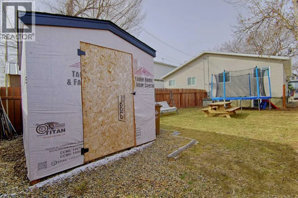 Welcome to this fantastic half-duplex on 54th Street in Taber! Ideally located just steps from downtown amenities and the local school, this home offers incredible value and convenience. The main floor features a bright living space, two bedrooms, and a full bathroom. Downstairs, the basement development is only a year old, adding a spacious recreation room, two additional bedrooms, and a second full bathroom. Outside, enjoy a fully fenced backyard complete with a handy storage shed, plus the added bonus of off-street parking. Move-in ready and packed with usable spaceâdon't miss out on this great opportunity! (id:27476)