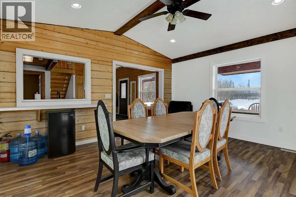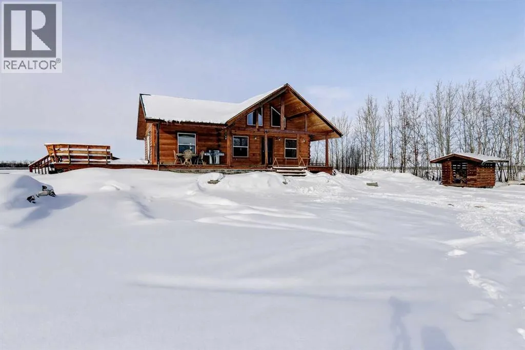 Have you been searching for your dream acreage? This beautifully crafted log home on a concrete foundation is CR-5 zoned and set on 10.08 acres just east of Grande Prairie, offering incredible flexibility and the ultimate outdoor lifestyle. Located just steps from the Smoky River and surrounded by crown land, this property is a rare opportunity for those who value space, privacy, and year-round adventure. From the moment you arrive, the full-length covered front porch invites you to picture slow mornings with coffee and evenings watching the kids play. Inside, youâll appreciate the warmth and rustic charm throughout, with a functional main floor featuring a kitchen, living and dining area, bedroom, bathroom, and a cozy wood stove perfect for winter nights. Off the dining area, step onto the massive back deck designed for BBQs, entertaining, and soaking in long summer evenings. Upstairs offers a picture-perfect loft that works beautifully as a bedroom or additional living space, while the fully developed basement includes two more bedrooms, a bathroom, storage, and a family room. The home is finished with a durable metal roof, offering long-term peace of mind and minimal maintenance so you can focus on enjoying acreage living rather than worrying about upkeep. The property also includes a shed, lean-to, and is fenced while being set up for horses, making it ideal for hobby farming or equestrian enthusiasts. Only 10 minutes from the Teepee indoor arena! Acreages in this location with this level of charm and zoning flexibility rarely come availableâbook your showing today. (id:27476)
