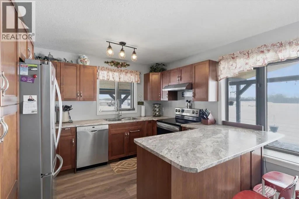 Escape to peaceful country living with this charming 3+1 bedroom, 2-bathroom bilevel set on 25 acres just 35 minutes from Grande Prairie, just north of Teepee Creek school.Inside, the home is bright and welcoming, with large windows. The cozy wood stove creates a warm, inviting atmosphere in the living room, while the main bathroom features a stunning clawfoot tub.Enjoy peace of mind with recent upgrades, including a newer hot water tank, furnace, well pump, and water filtration system.Step outside and take in everything this property has to offer:A wrap-around covered deck.A private yard with beautiful viewsA large garden area for growing your own food2 Full service RV hookups for guests A utility shed and a barn The standout feature is the massive heated shop, complete with its own full bathroom. Perfect for a home based business, workshop, or serious hobby space.Whether you're dreaming of a hobby farm or simply looking for a quiet rural retreat, this property is move-in ready and full of opportunity. Added bonus is the land is cross fenced for cattle or horses with 2 all season waters. Plus a cattle handling system which includes a bub and cattle squeeze. Come experience the space, privacy, and potential for yourself! (id:27476)
