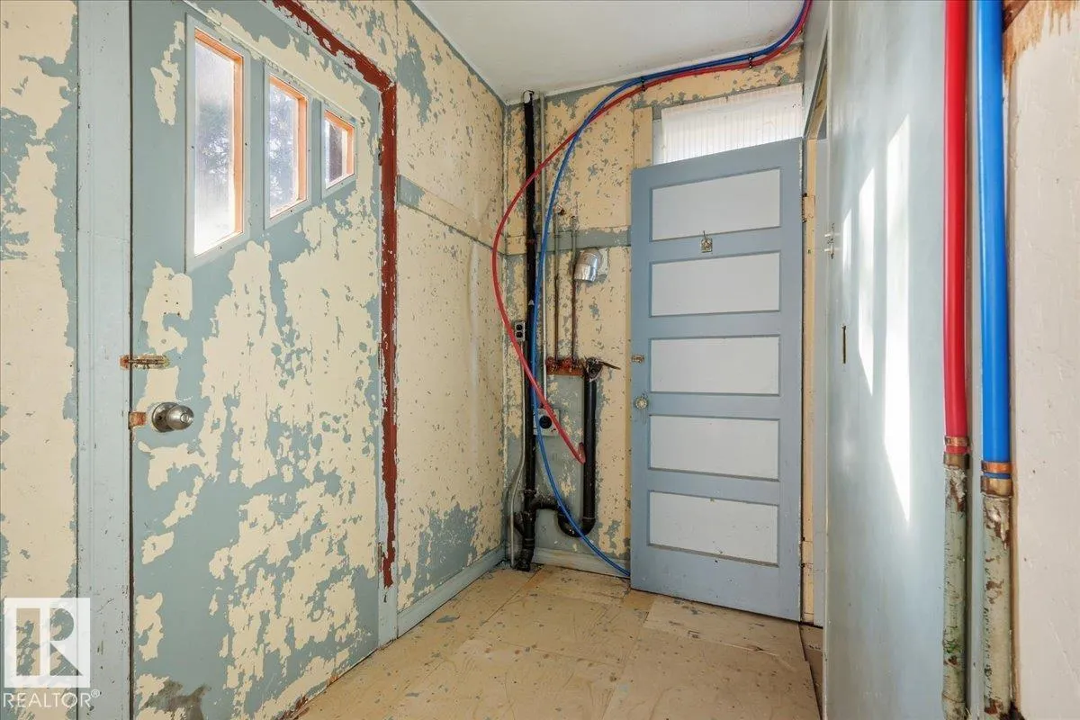 This exterior of the home is finished with a metal roof and vinyl siding. The interior is unfinished but ready to take in any direction you choose. Chain link fence area off the back of the home. The Lot has a paved street in front and Back alley access. (id:27476)