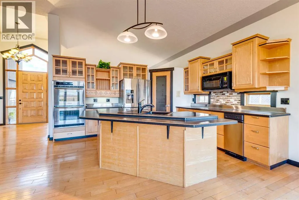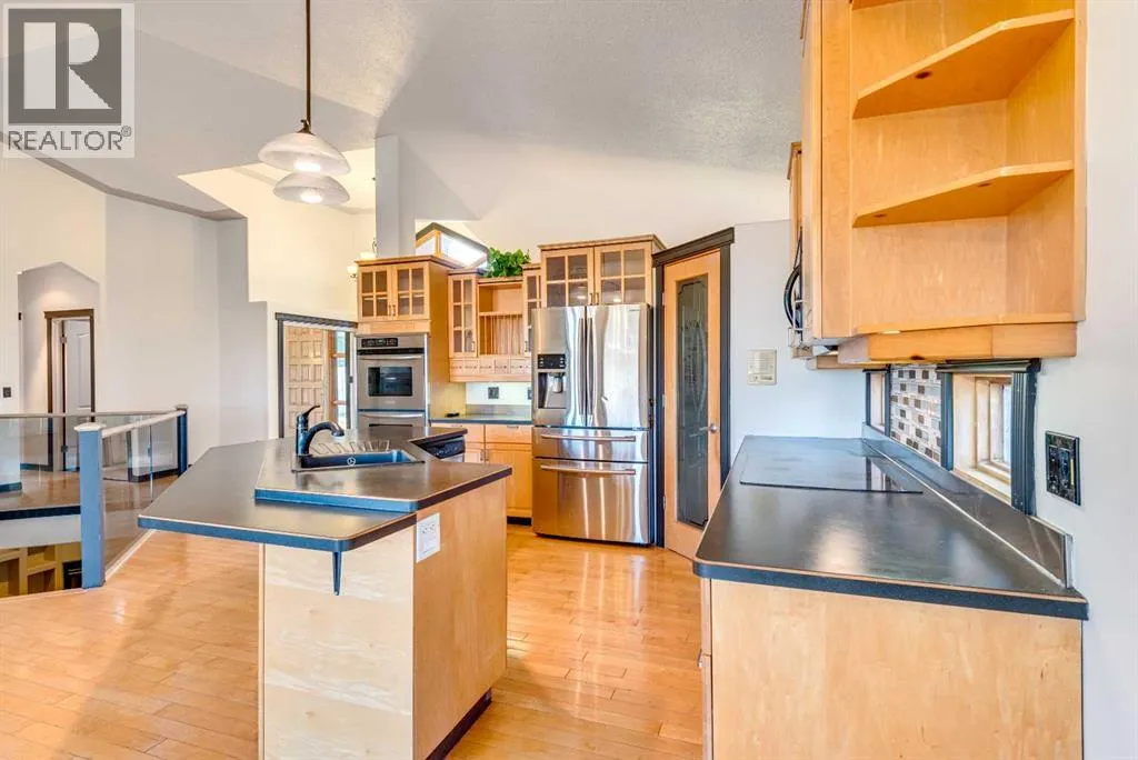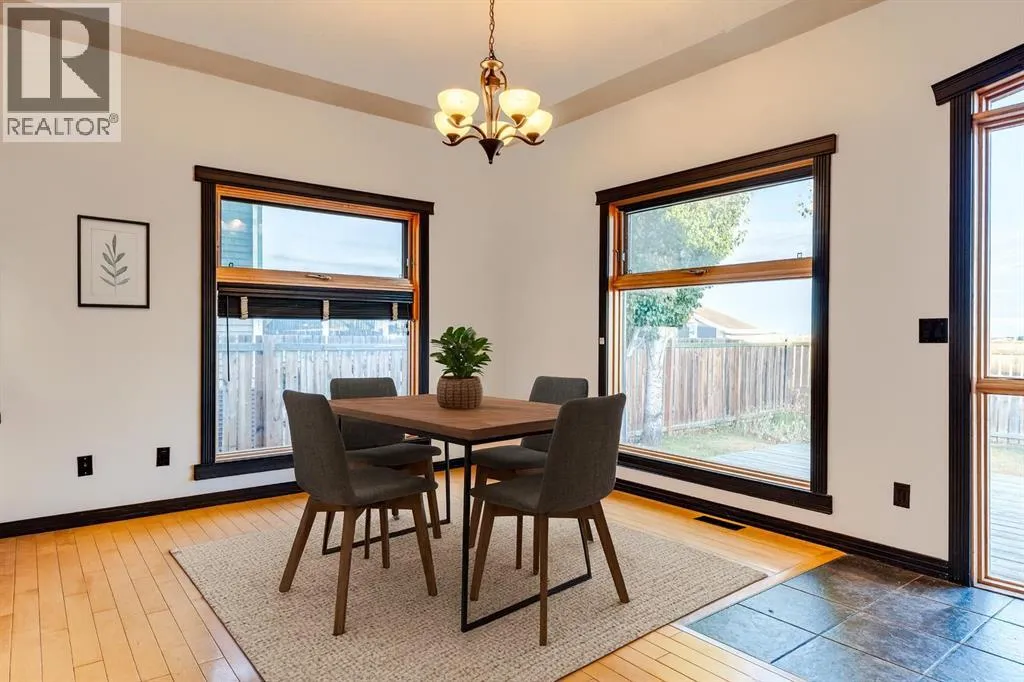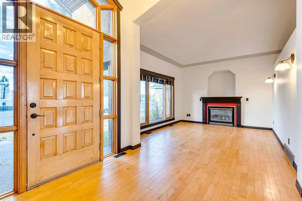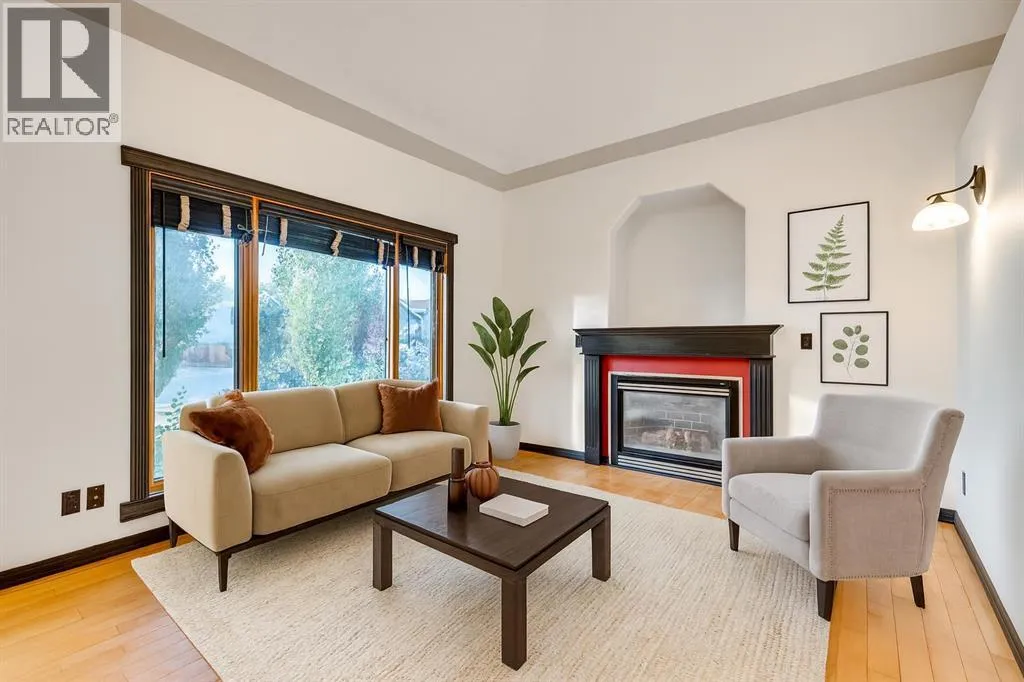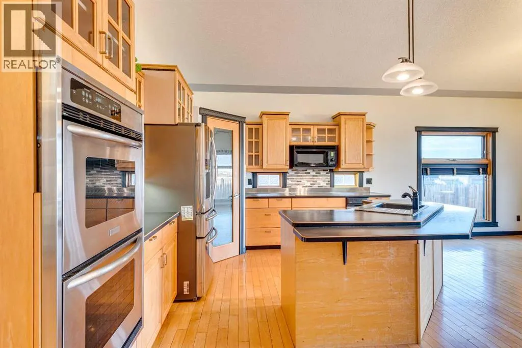 Looking for the perfect combination of classic style, modern comfort, and convenient bungalow livingâall designed with your family in mind? Your search ends here!From the moment you step through the oversized, majestic front door, youâll feel the open, spacious design of this exceptional home. The large, bright kitchen offers open views of the backyard and open fields behind featuring dual ovens, an island with sink, and a handy breakfast bar with open concept dining and family room - ideal for family meals, entertaining or everyday living. Guests will love relaxing in the formal living room with its own fireplace, while the fully developed lower level with high ceilings provides an expansive rec/family room with fireplace and games area, and plenty of space for family fun. This home features 4 bedrooms (the primary retreat features a fireplace, ensuite, and walk-in closet), 3 bathrooms, hardwood floors, and 3 fireplaces (including one double-sided). The triple heated garageâwith a convenient drive-through bayâadds practicality, while the exposed aggregate driveway and sidewalks complement the curb appeal. The large, fully fenced backyard offers space to relax, play, and entertain. This home truly has it allâstyle, comfort, and thoughtful design in every detail. (id:27476)