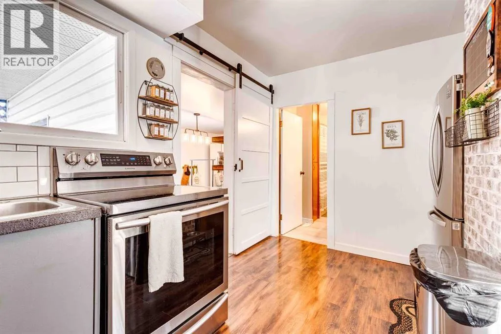 Welcome home to this updated 2 bedroom, 2 bathroom bungalow ideally located close to downtown, schools, and amenities in the welcoming community of Three Hills. The main floor offers two comfortable bedrooms and a 4-piece bathroom, along with tasteful updates and stylish barn door features that add character and warmth. The spacious back entrance doubles as a practical laundry/mudroomâperfect for busy households and everyday organization. The partially finished basement provides excellent flexibility with a den, 3-piece bathroom, and plenty of additional storage spaceâideal for a home office, hobby area, or rec room. Outside, enjoy a fully fenced backyard with mature trees offering privacy and shade. The single detached garage is powered, and thereâs convenient RV parking off the back alley complete with a 30-amp outletâhard to find and perfect for travelers or extra vehicles. Whether youâre a first-time buyer, looking to downsize for retirement, or searching for a comfortable home for your young family, this property checks the boxes. Situated in the friendly Town of Three Hills, youâll appreciate nearby schools, shopping, medical services, walking trails, parks, and a strong sense of communityâall within easy reach. (id:27476)