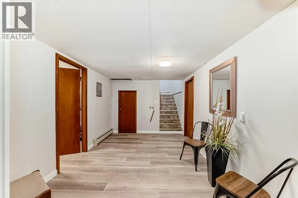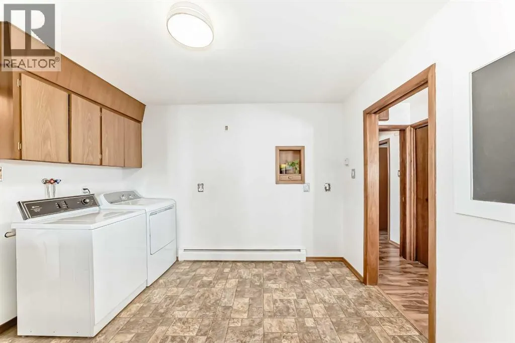 Welcome to this beautifully updated 4-bedroom 2-bathroom 2377 total sqft BUNGALOW situated on a desirable corner lot in the town of Three Hills Alberta. Offering a thoughtful blend of modern upgrades and comfortable family living, this property provides an excellent opportunity for buyers seeking a move-in-ready home in a highly convenient location. The main level features bright, open living spaces with updated finishings throughout, creating a warm and inviting atmosphere. Updated new bathrooms, new paint through-out, new flooring to the basement along with 3 large new egress vinyl windows added in 2025. The lower level is set up for a bar or KITCHENETTE area, and a home office close by. New electrical panel and thermostats are in place, and the home is all updated and ready to go. The well-designed floorplan offers ample room for both everyday living and entertaining. With 4 bedrooms, one being oversized in the basement, this home is ideally suited for families, guests, or those requiring additional space for a home office. The rear entrance is also conveniently set up for a future PRIVATE ENTRANCE for a lower-level future rental opportunity. Outside, the home offers exceptional functionality with a detached HEATED GARAGE, NEW VINYL WHITE 6 FOOT FENCING, and perfect for year-round parking, storage, dogs, or hobby use. The corner lot provides additional yard space and parking, beautiful mature trees, enhanced privacy, and excellent curb appeal! Standout features of this property are its proximity to local amenitiesâlocated directly next to the K- 12 Three Hills School, playground, and expansive green space with track and field set up, and a local community garden, offering unparalleled convenience for families and outdoor enthusiasts! This property offers outstanding value and functionality and is a must-see for buyers seeking comfort, practicality, and an exceptional location. (id:27476)