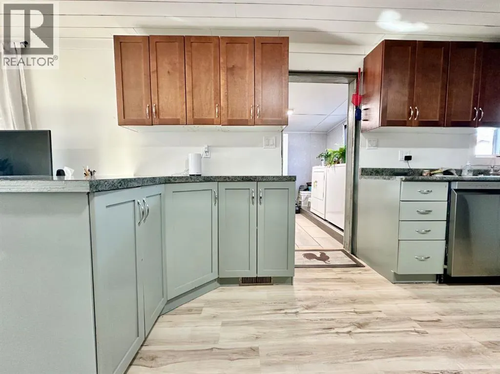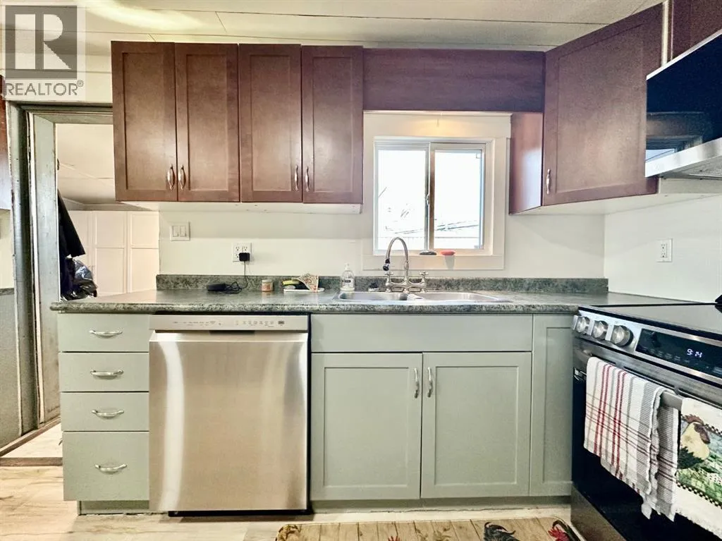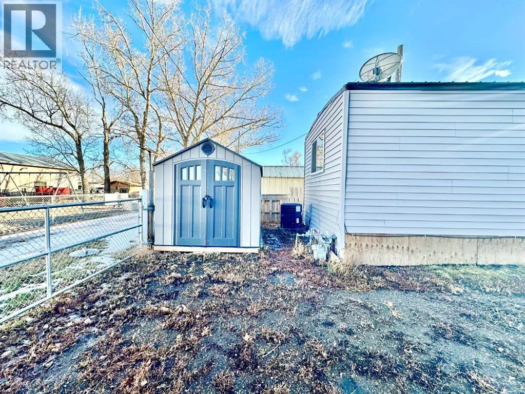 SIMPLE. BEAUTIFUL. AFFORDABLE. Youâll find all these desirable characteristics in this beautifully maintained and thoughtfully updated mobile home on owned land, nestled in the tranquil Hamlet of Tilley, just a short 15-minute drive from Brooks. This charming 2 bedroom, 1 bathroom home offers a perfect blend of comfort, style, and easy living.A welcoming covered deck greets you upon arrival, leading into a spacious entry/mudroom complete with washer and dryer and ample cabinetry for storage. The open-concept layout allows natural light to flow effortlessly through the living room and kitchen, creating a warm and inviting atmosphere. The kitchen features modern cabinetry with lower cabinets painted a soft green, adding a subtle touch of character and charm, along with a newly installed dishwasher.Over the past couple of years, this home has seen extensive renovations and continued upgrades, including a metal roof with recent maintenance, enhanced insulation and vapor barrier, additional insulation added beneath the home, section of new vinyl siding, a rebuilt front overhang, new heat tape, vinyl windows, and a new front door along with select interior doors. Mechanical updates include a new furnace, central air conditioning, hot water tank, new electrical panel, and updated wiring in select areas. Stainless steel appliances include fridge, stove, microwave hood fan, and dishwasher.The interior is finished with vinyl plank flooring, updated ceilings in areas, new baseboards, trim, modern light fixtures, and fresh paint throughout. Outside, the fully fenced yard features two sheds, including a 14â x 16â metal clad shed with natural gas plumbed in, as well as a new gate for added functionality and access. There is ample off-street parking at the front of the home.This well cared for property offers excellent value and the opportunity to enjoy quiet small town living with many major upgrades already completed. Book your showing soon before itâs gone. (id:27476)