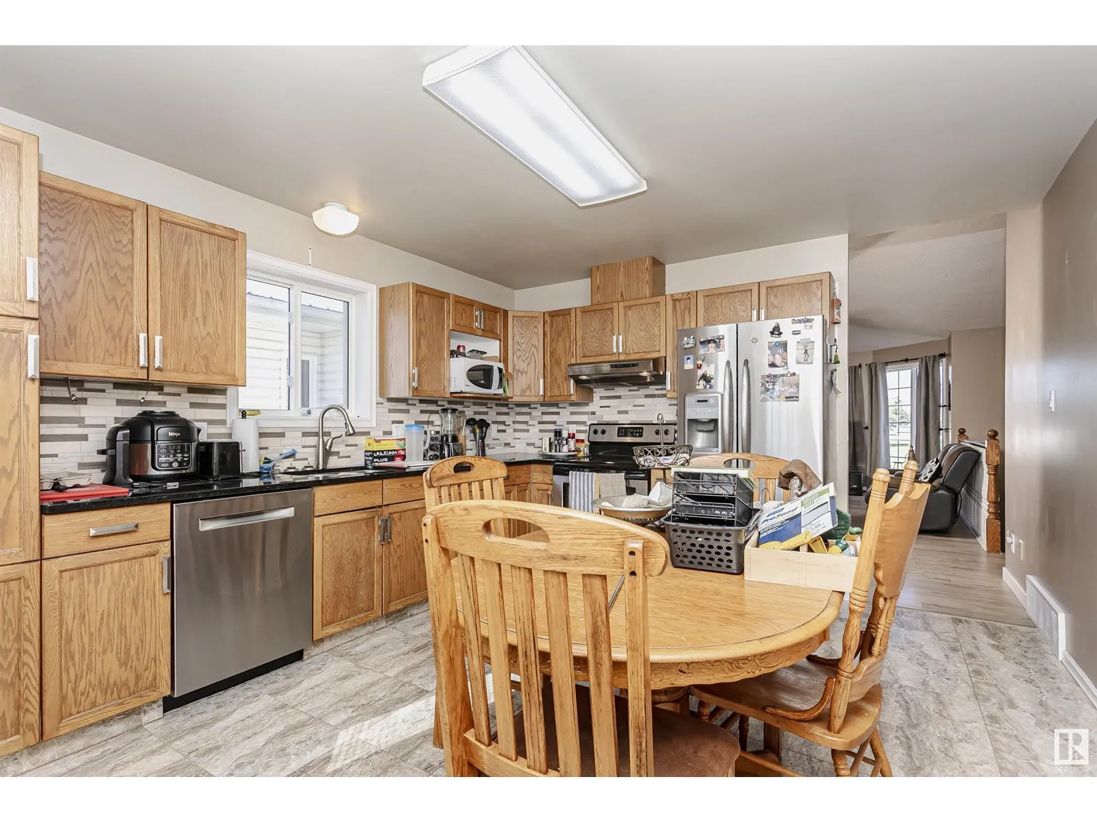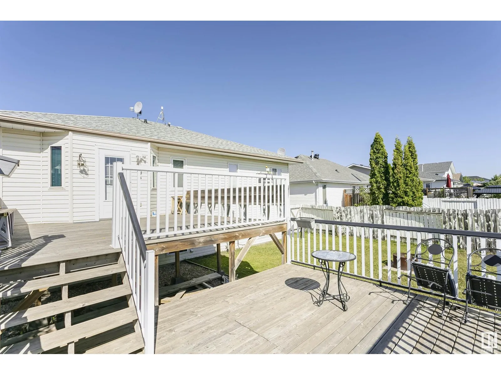 In Tofield you will find this beautiful bi-level home located close to the Hospital, 2 schools and a park right across the street. Amazing Location! The homes main floor has a kitchen/dining room, large living room, full bath and 3 bedrooms. The primary bedroom is spacious, complete with 4 piece ensuite bath with a large jetted soaker tub. The 2nd bedroom is comfortable size and the 3rd bedroom is very spacious. The basement offers 9' ceilings, a 2nd kitchen, bedroom, large rec room, laundry room and huge storage. This area is more than 1/3 of the basement that can be developed into more bedrooms, entertaining space what ever your family desires. Outside is a massive 2 tiered deck that has been pre-wired for a Hot Tub. The big yard has lots of room to play or to relax by the fire pit. Completing this great home is a Heated Double Detached garage. Tofield is a charming community which has all the amenities you need including a Golf Course. Edmonton and Sherwood Park are a short drive for commuters. (id:27476)