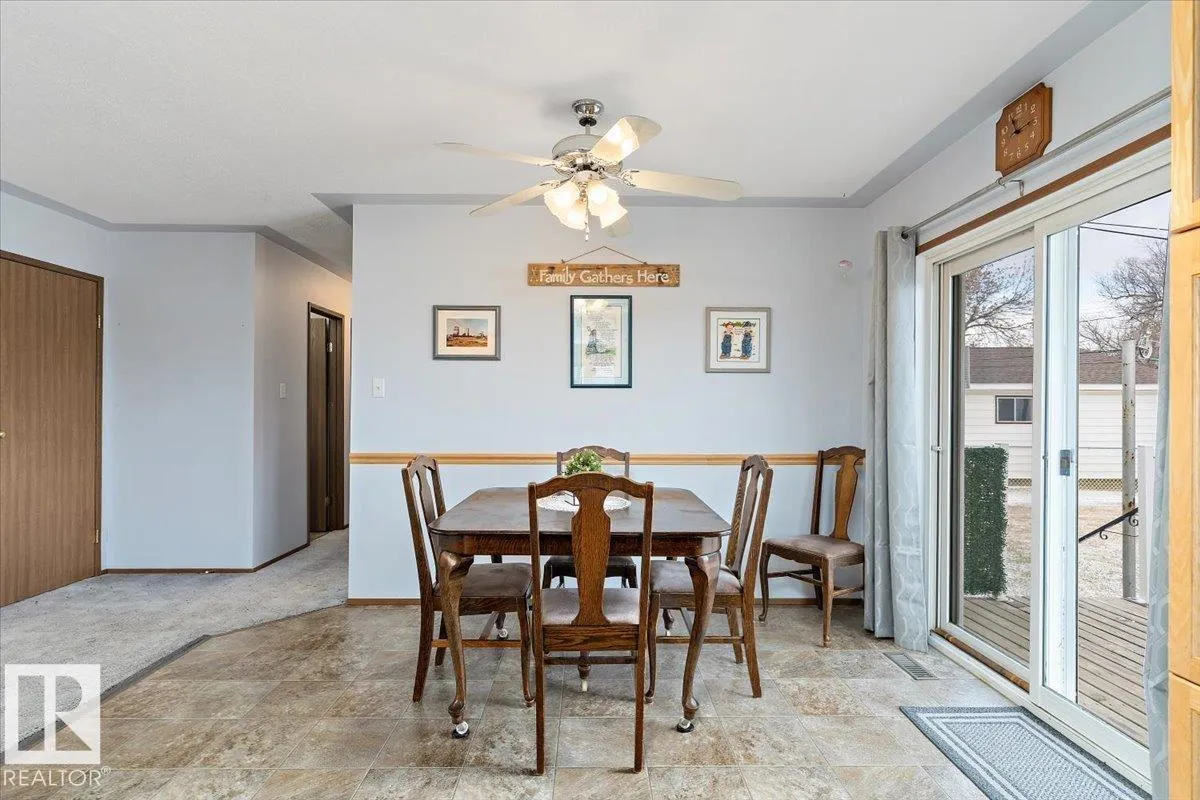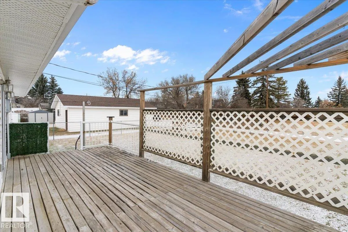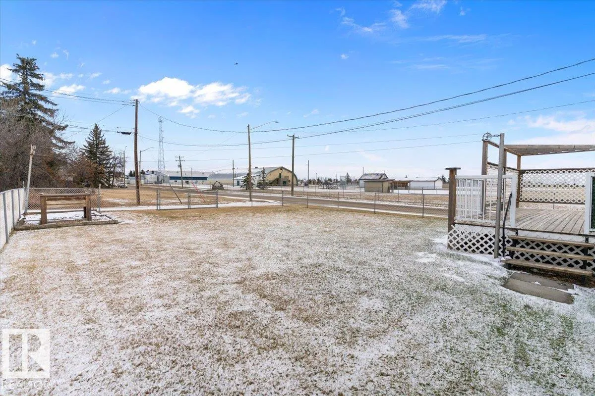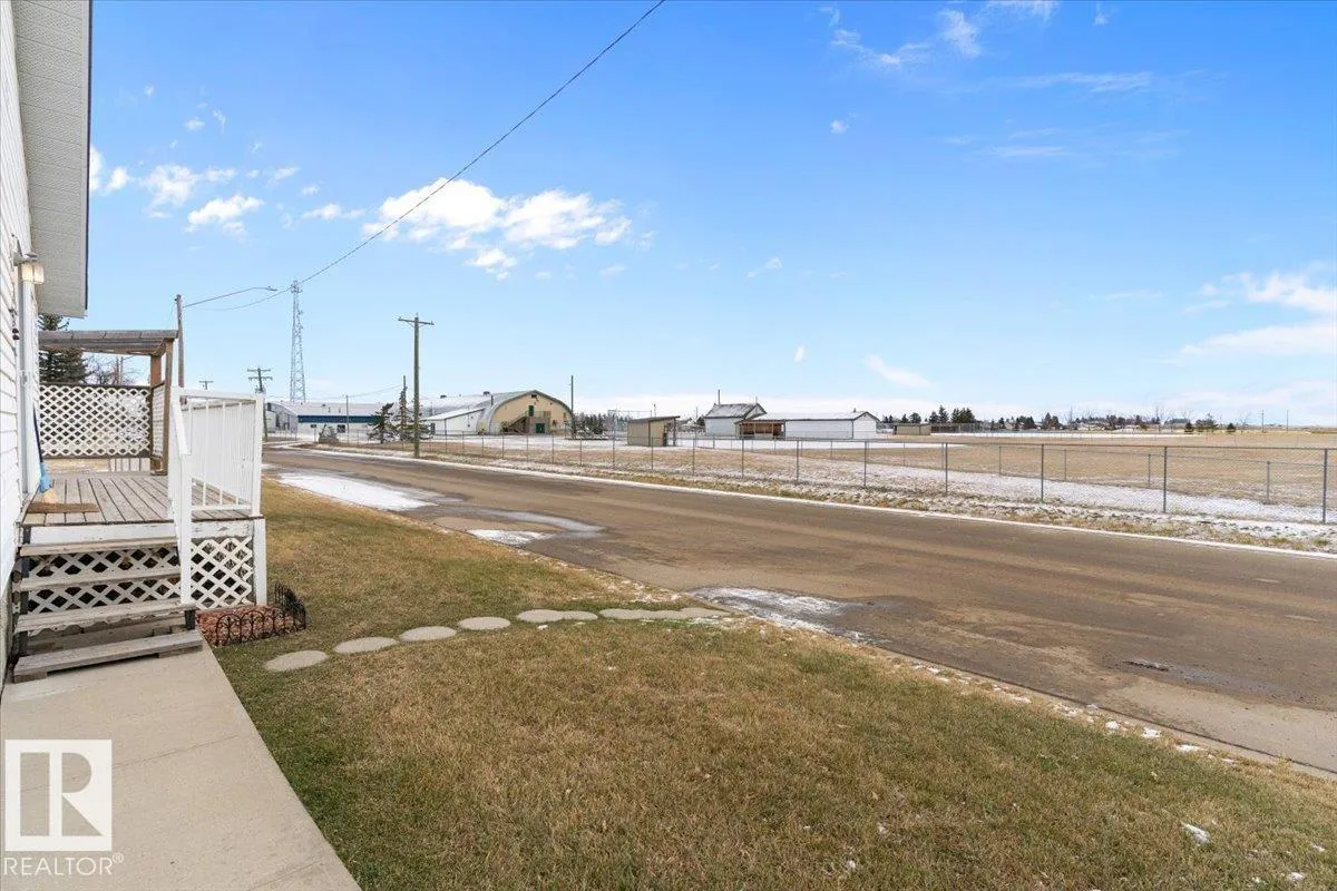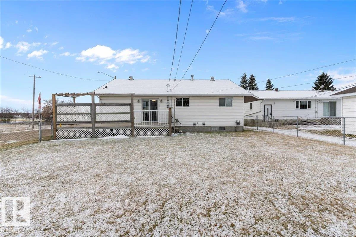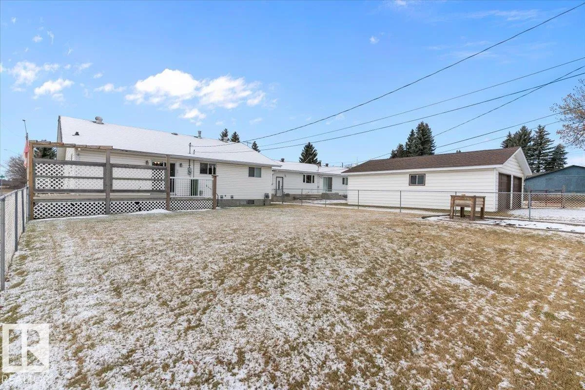 Well cared for & maintained 4 bedroom, 3 bathroom bungalow with double detached garage in the charming community of Tofield. Sunny living room greets you upon entering this lovely home. Kitchen has lots of cabinets and has adjoining dining area with access to back deck. Primary bedroom with 3pc ensuite, 2nd & 3rd bedroom (3rd bedroom has been converted to laundry room), and 4pc bathroom completes the main floor. Basement is finished with family room with adjoining rec area, bedroom, 3pc bathroom, utility/laundry room, and cold room. Backyard is fully fenced with big lawn area and back alley access. Huge wrap around deck with pergola is perfect for entertaining guests. Excellent location- unobstructed view of the fairgrounds and walking distance to rec facilities & downtown amenities. Great family home- a must see !! (id:27476)