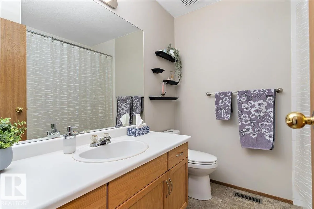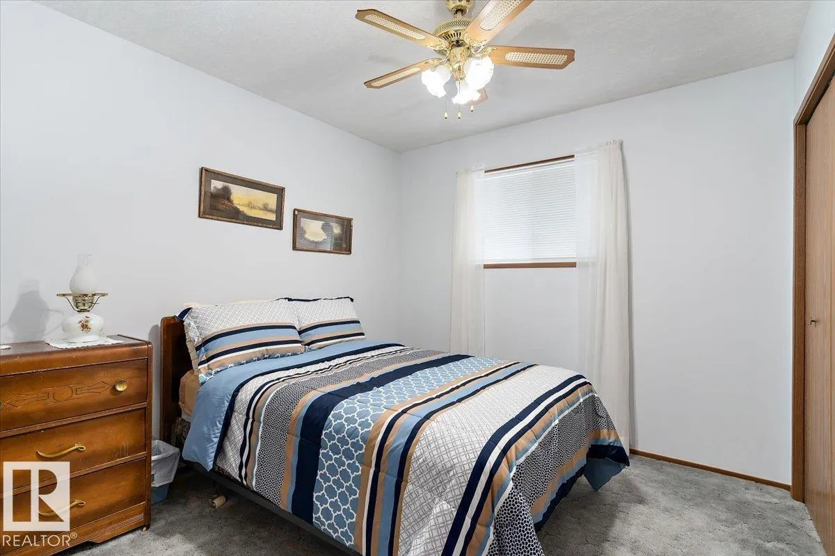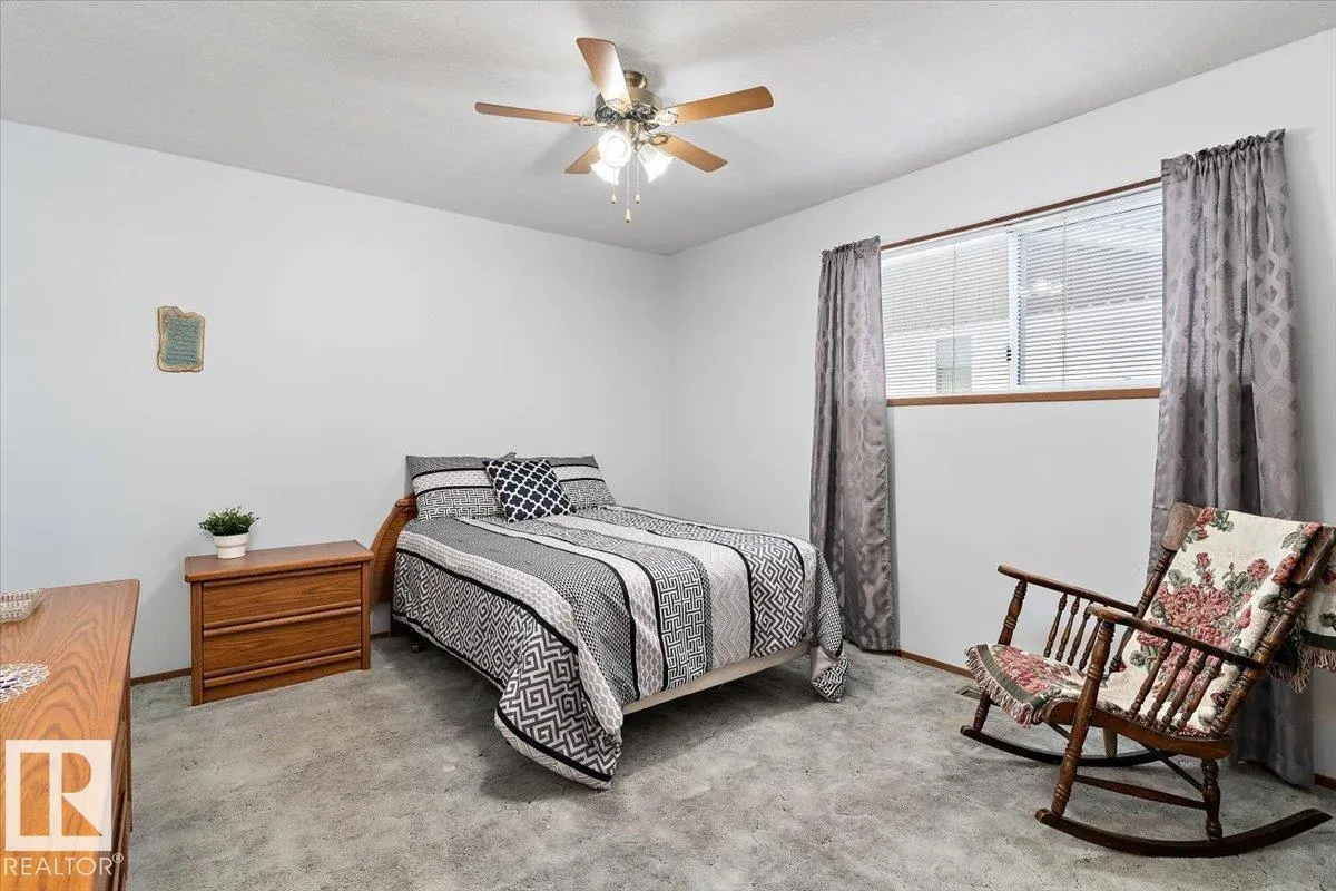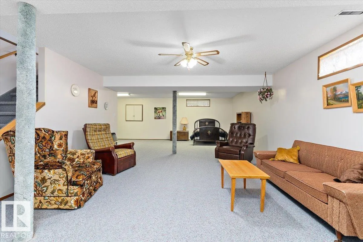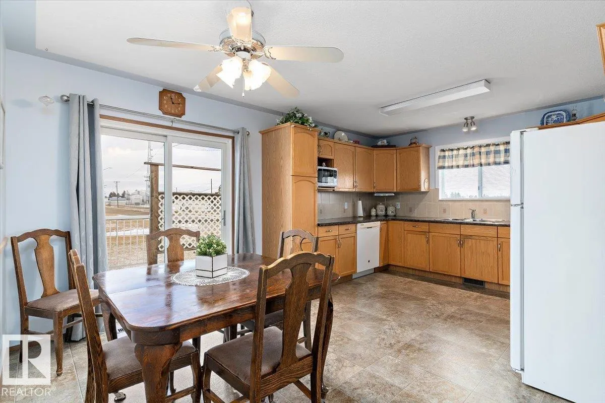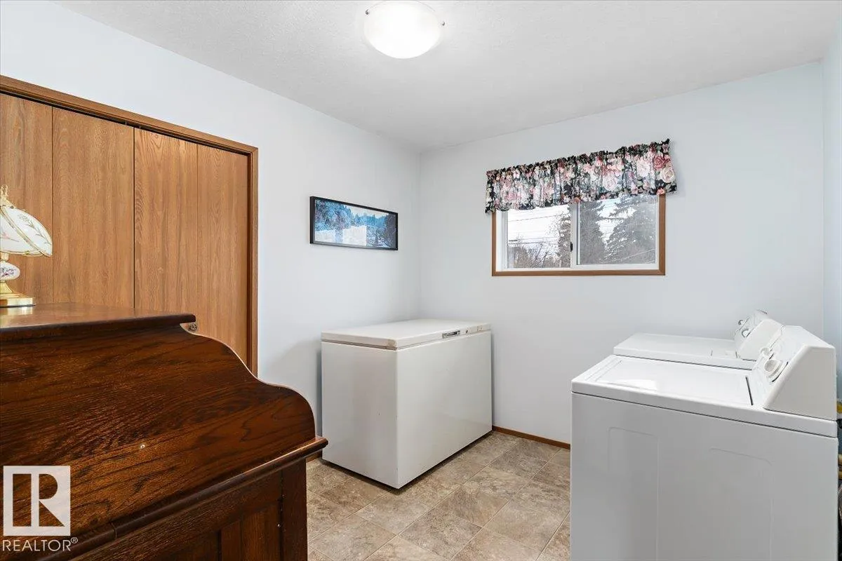 Well cared for & maintained 4 bedroom, 3 bathroom bungalow with double detached garage in the charming community of Tofield. Sunny living room greets you upon entering this lovely home. Kitchen has lots of cabinets and has adjoining dining area with access to back deck. Primary bedroom with 3pc ensuite, 2nd & 3rd bedroom (3rd bedroom has been converted to laundry room), and 4pc bathroom completes the main floor. Basement is finished with family room with adjoining rec area, bedroom, 3pc bathroom, utility/laundry room, and cold room. Backyard is fully fenced with big lawn area and back alley access. Huge wrap around deck with pergola is perfect for entertaining guests. Excellent location- unobstructed view of the fairgrounds and walking distance to rec facilities & downtown amenities. Great family home- a must see !! (id:27476)